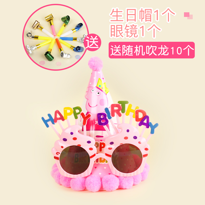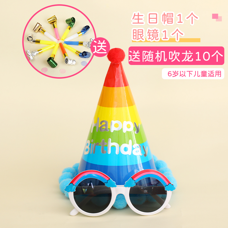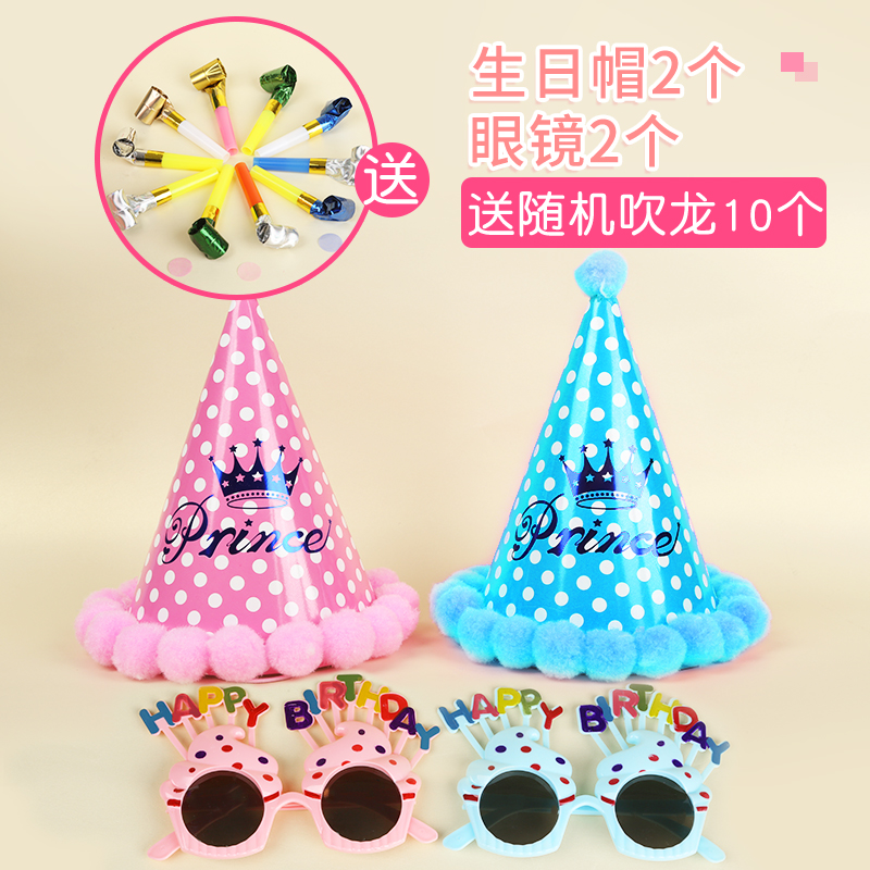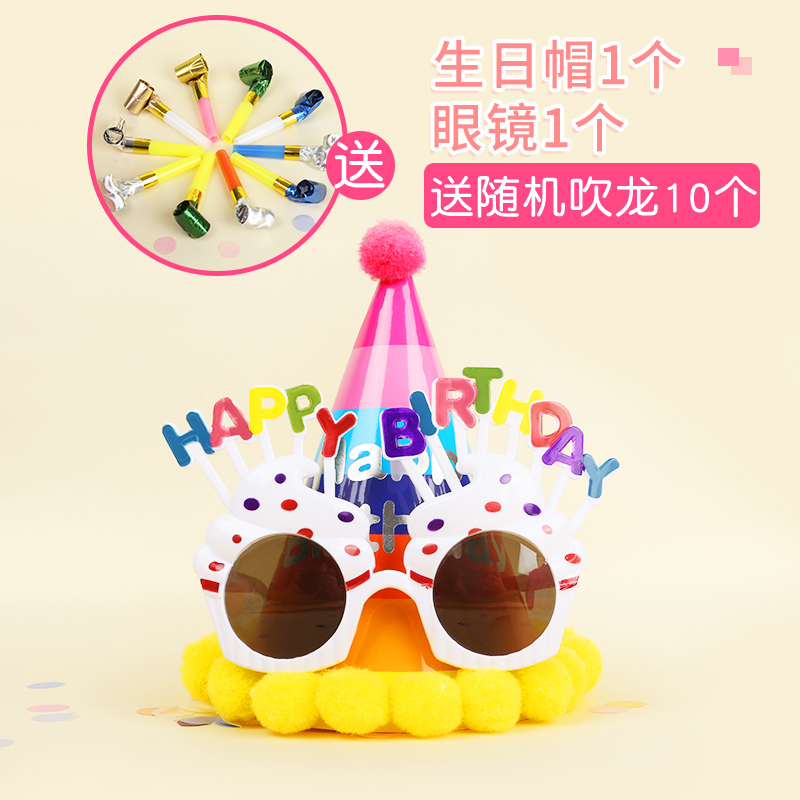 生日帽子儿童女孩搞怪眼镜周岁宝宝派对蛋糕装饰场景布置用品男童