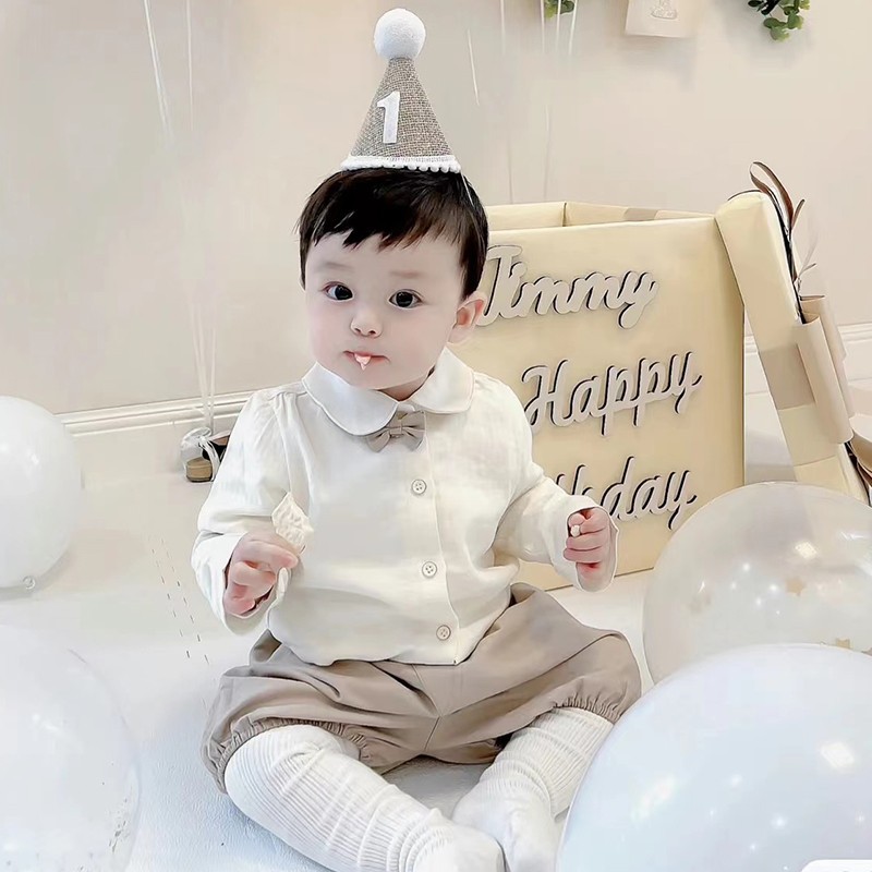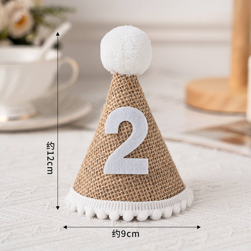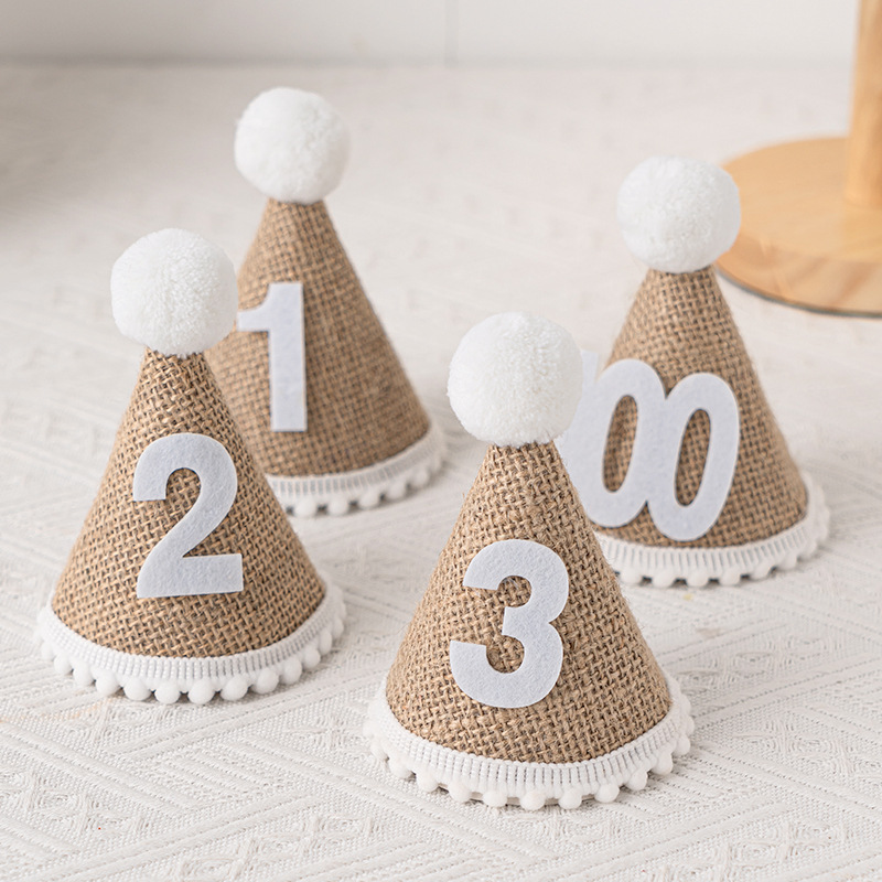 TXHRins麻布生日帽儿童宝宝周岁百天生日派对装扮用品麻布帽拍照