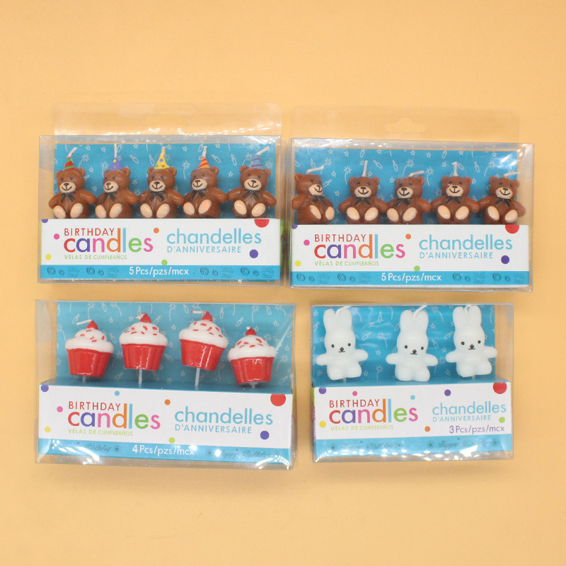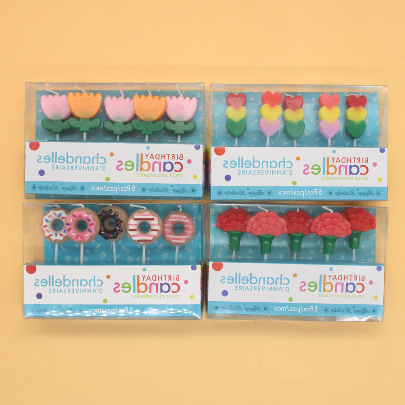 批发卡通生日蜡烛流行花朵派对小熊恐龙甜甜圈笑脸儿童蛋糕蜡烛