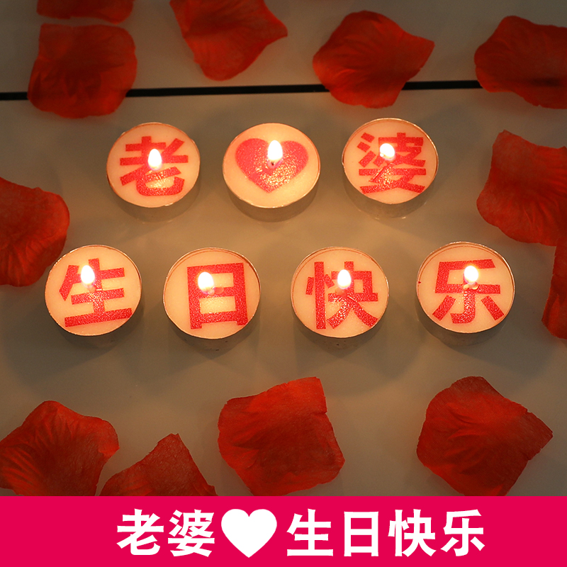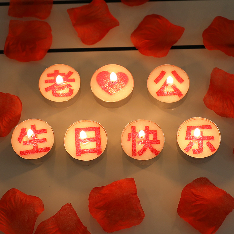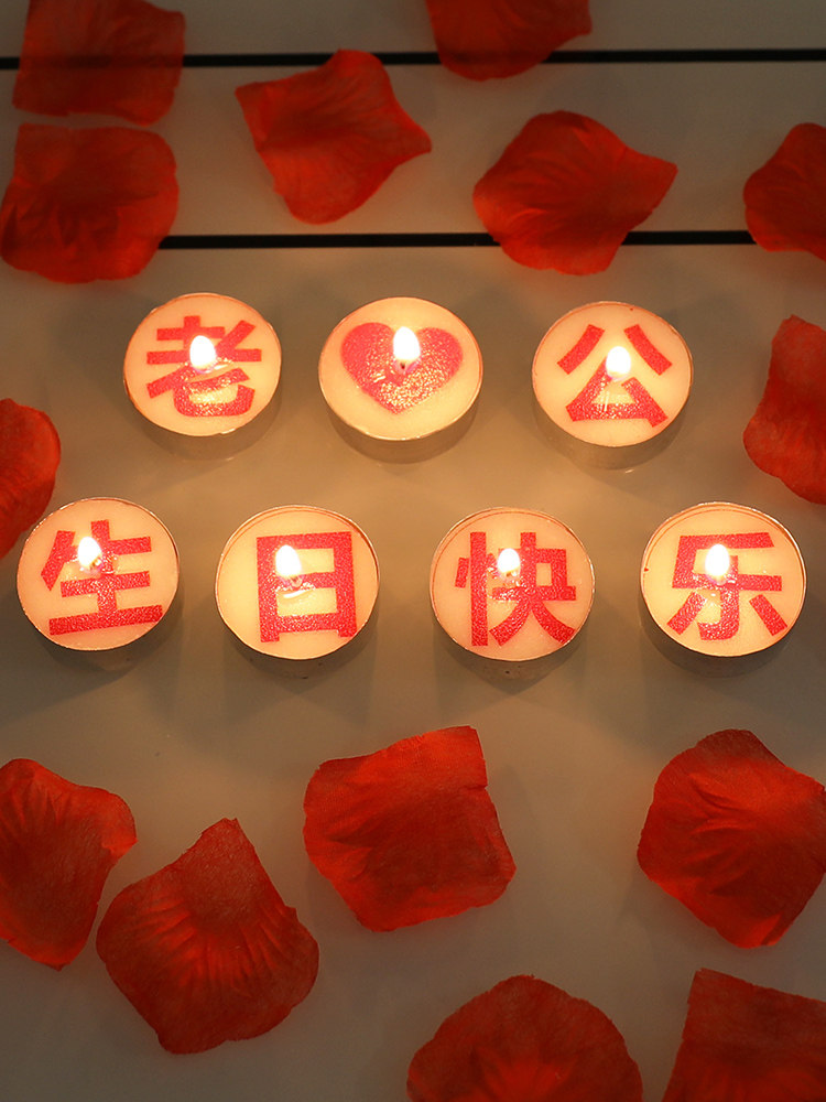 印字蜡烛浪漫生日惊喜布置烛光晚餐场景一周年纪念日表白装饰