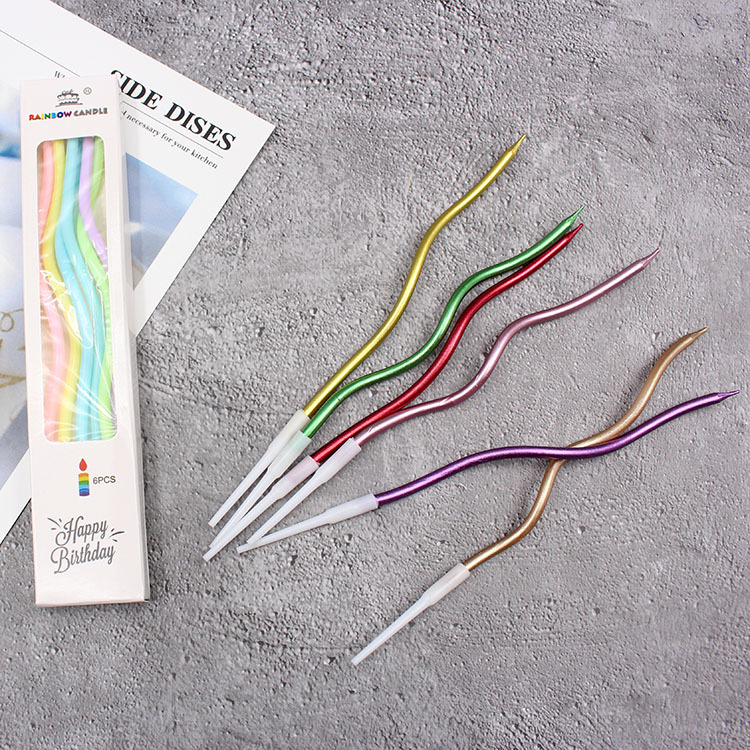 曲线生日蛋糕蜡烛浪漫派对装饰蜡烛创意弯曲螺旋镀金彩色6支盒装