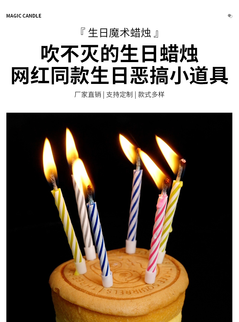 厂家批发小蜡烛奇特生日魔术蜡烛螺纹便携吹不灭恶搞石蜡蛋糕蜡烛