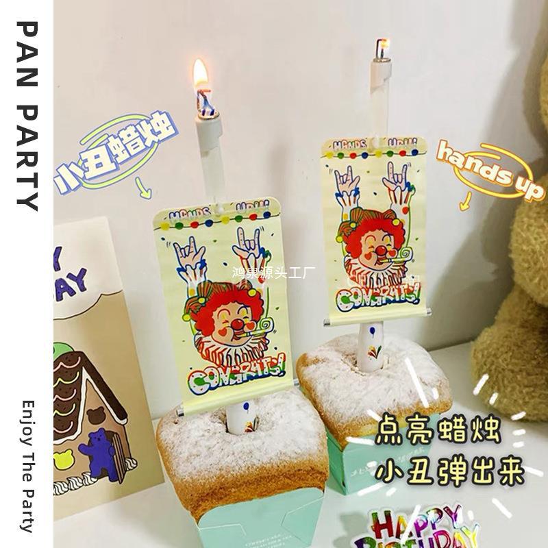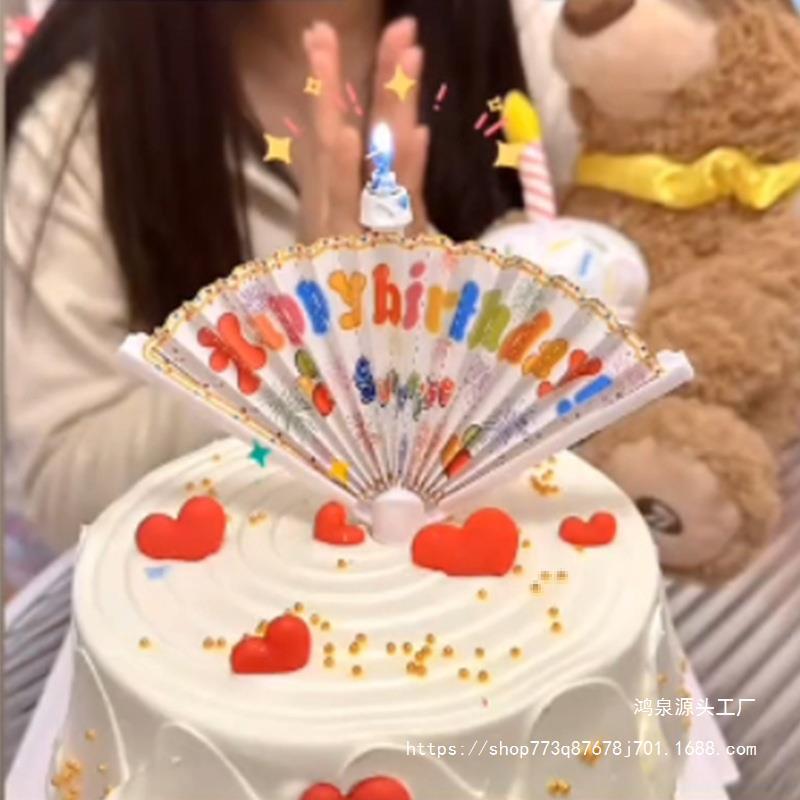 扇子生日蜡烛蛋糕派对创意音乐惊喜小丑烘焙装饰氛围感生日装扮