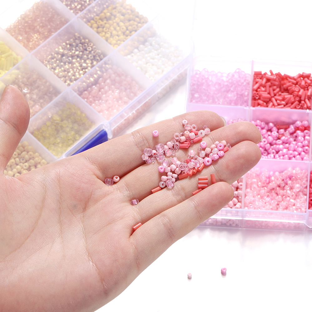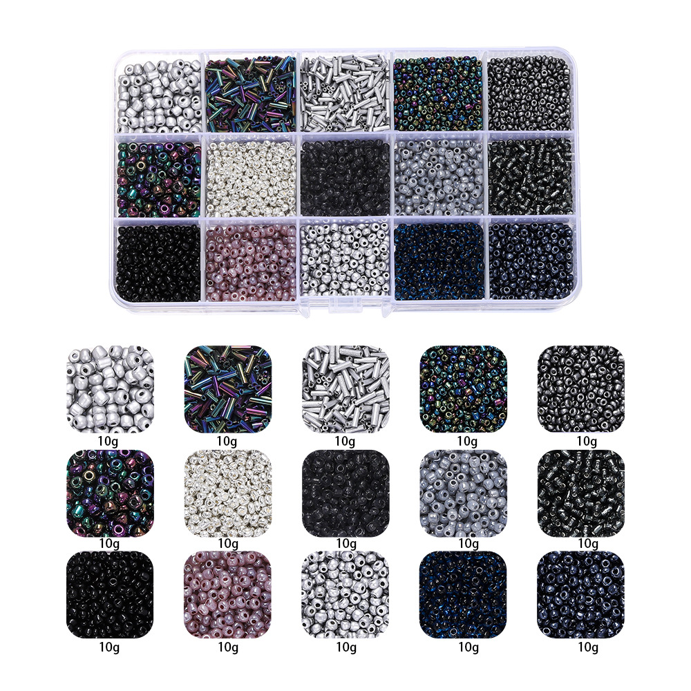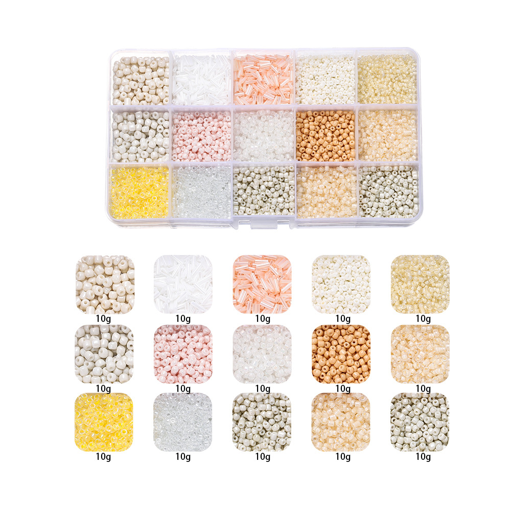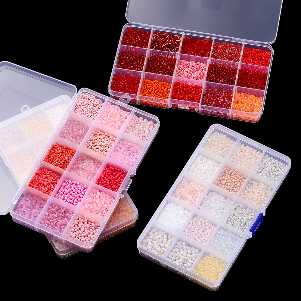 2-7mm15格盒装玻璃米珠彩色串珠套组diy手链项链饰品配件串珠材料