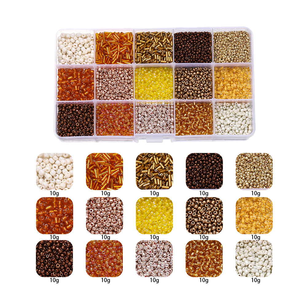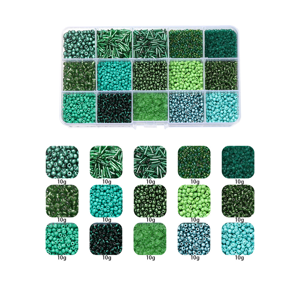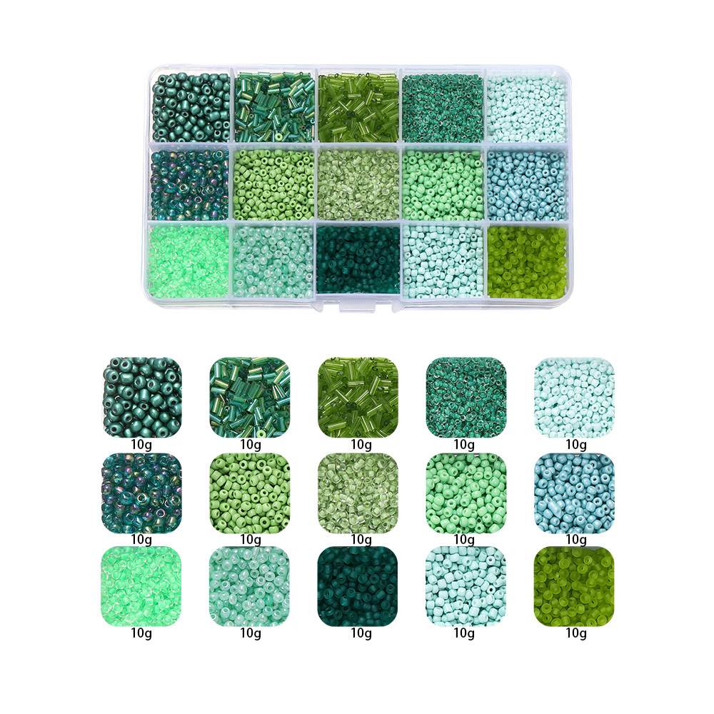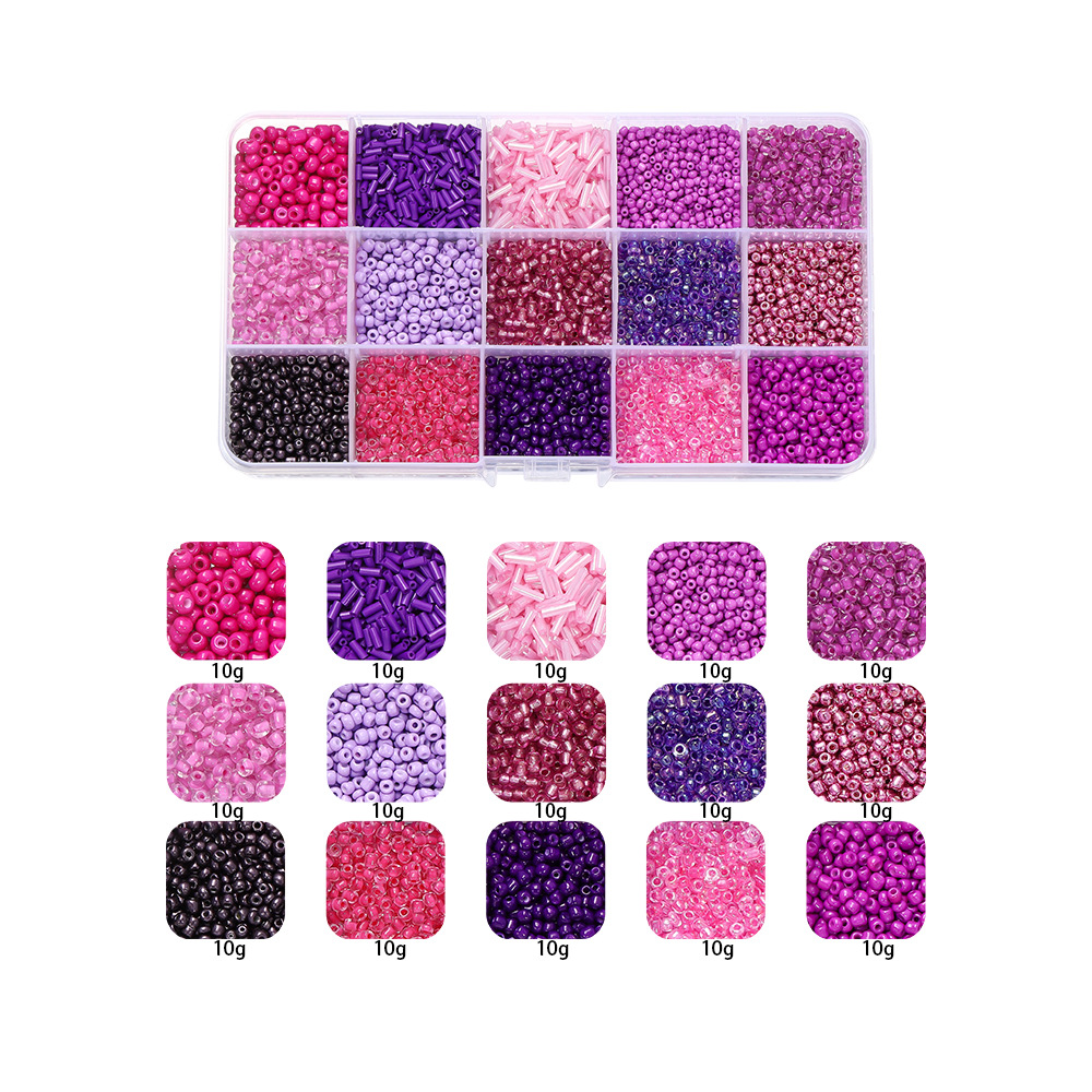 2-7mm15格盒装玻璃米珠彩色串珠套组diy手链项链饰品配件串珠材料