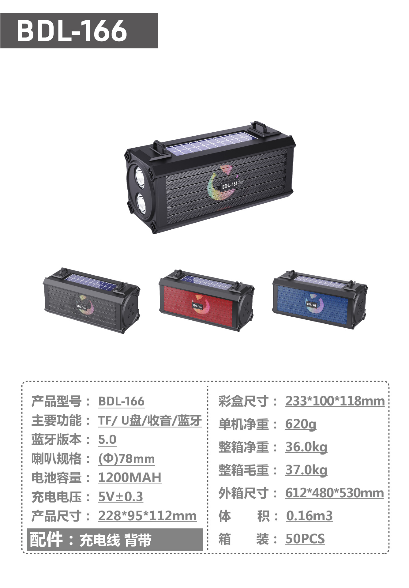 户外无线蓝牙音响专业便携式太阳能收音机插卡手电筒音箱BDL-166