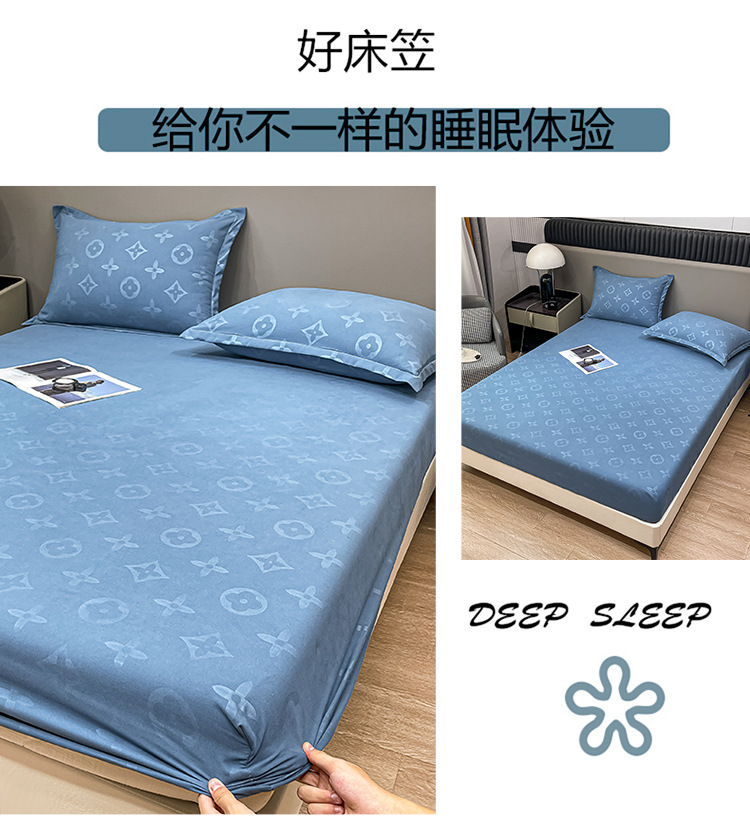 跨境外贸亲肤棉磨毛床笠三件套轻奢家用全包席梦思床罩防滑保护套