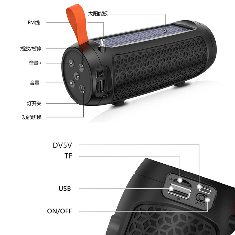 户外手提便携式U盘插卡收音专业移动迷你多功能太阳能音箱DV-215
