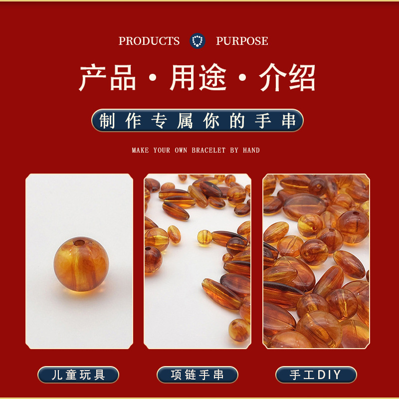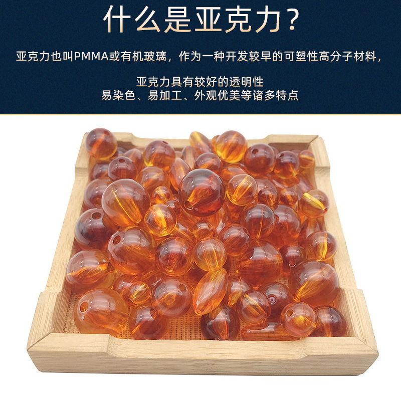 仿琥珀圆珠 亚克力珠子琥珀色塑料珠子异形珠diy箱包五金饰品配件