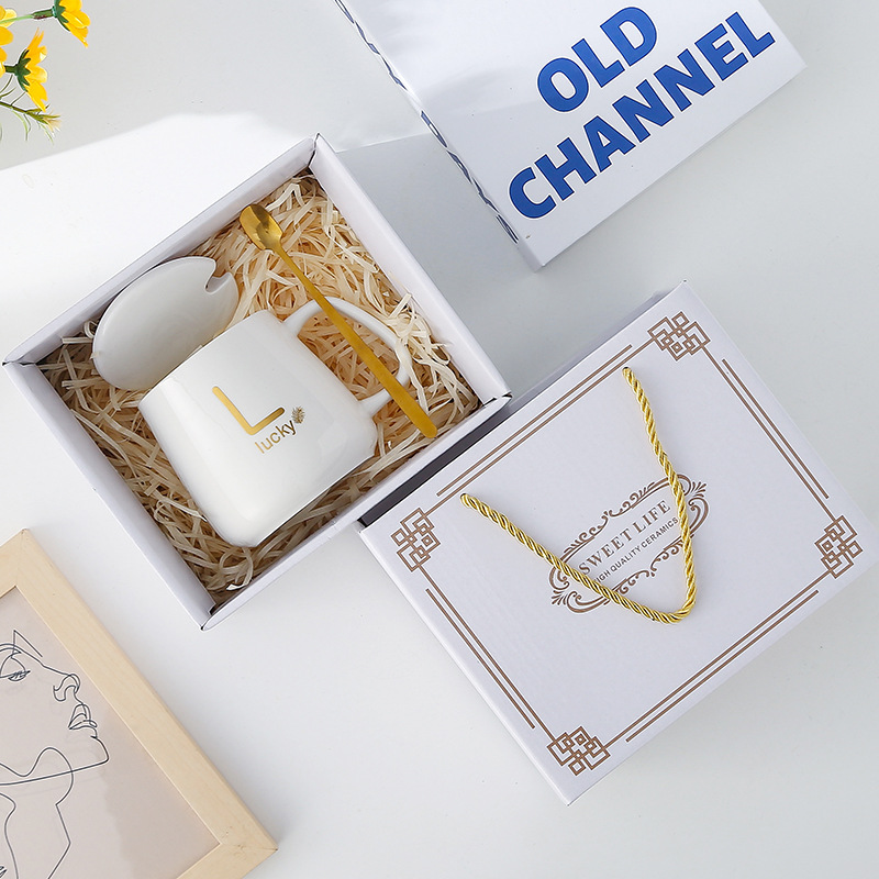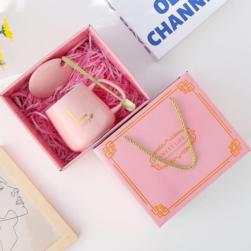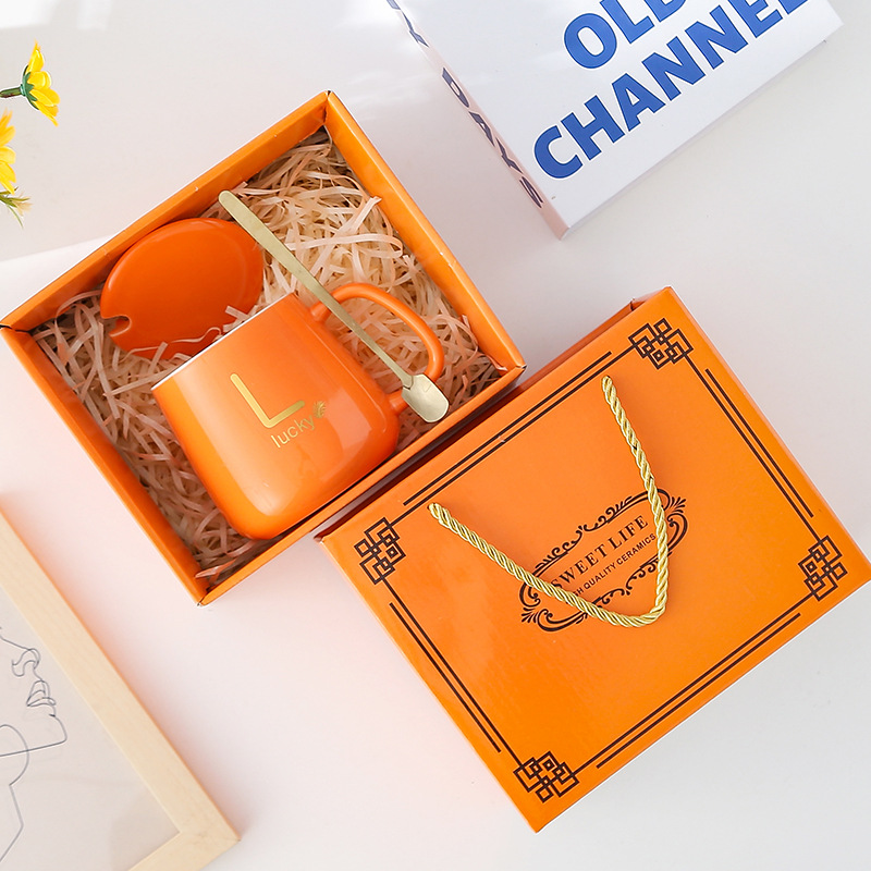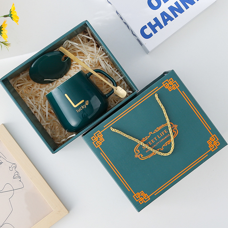 创意杯子伴手礼套装陶瓷杯带盖带勺开业活动礼品马克杯礼盒高颜值