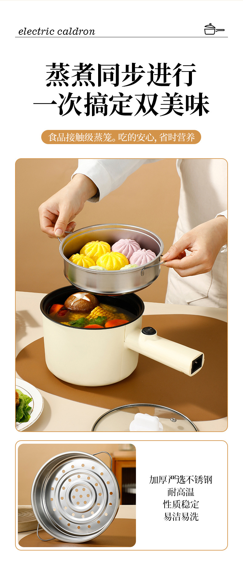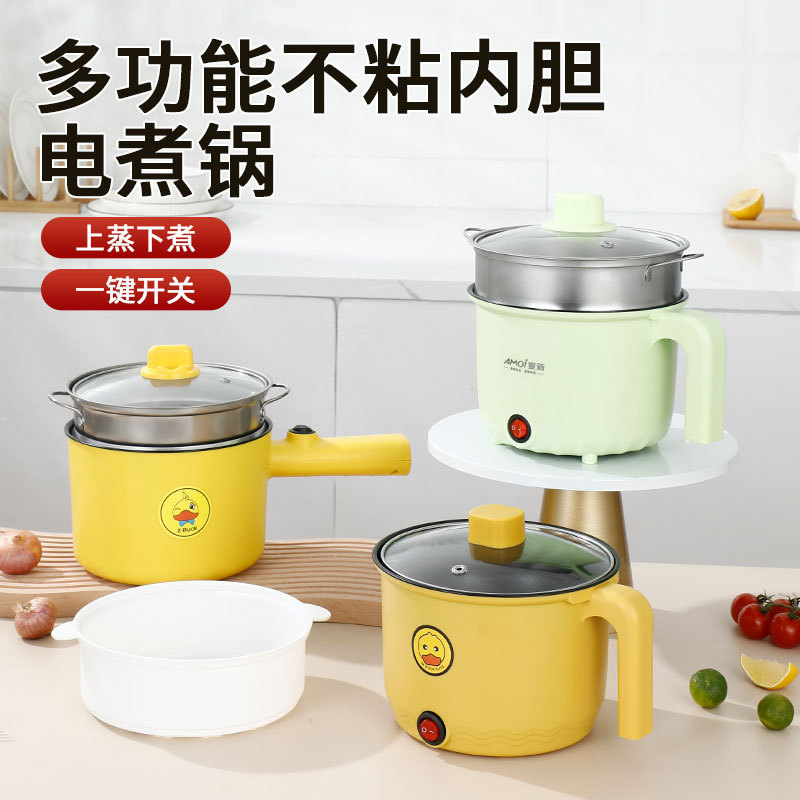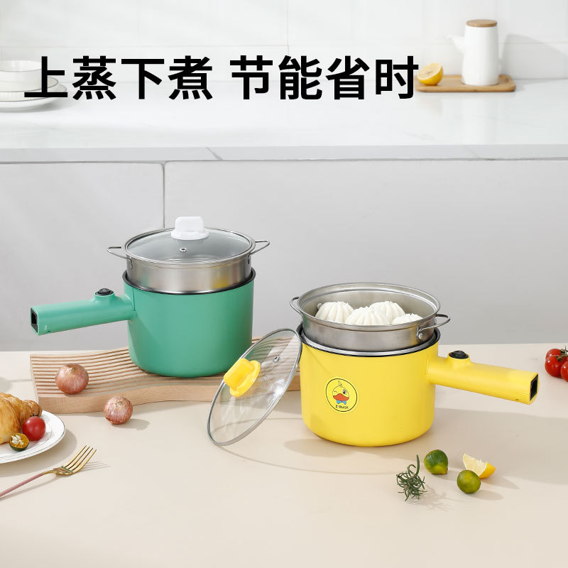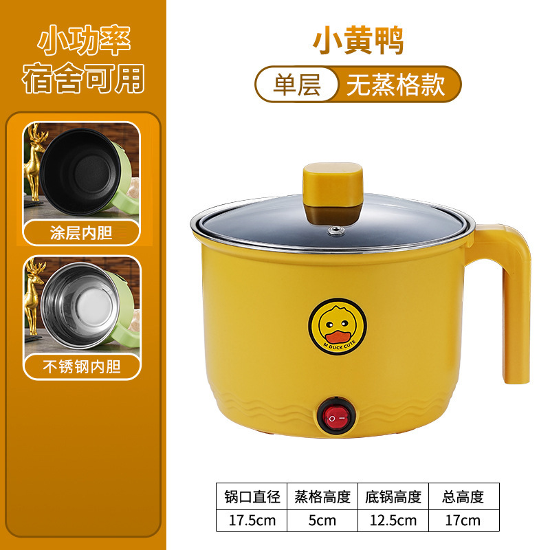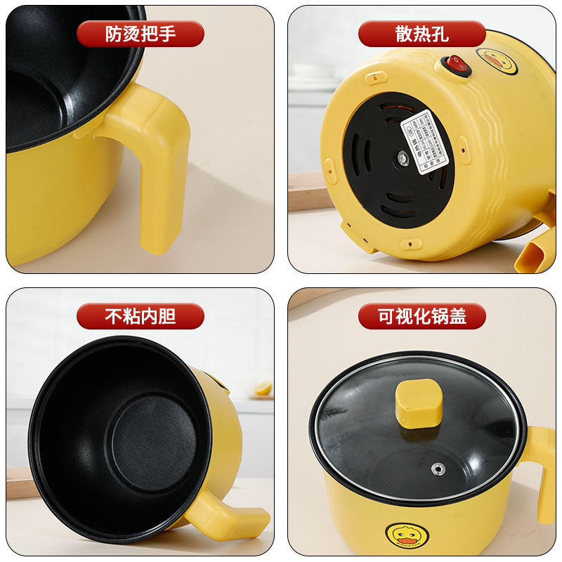 不锈钢电煮锅礼品小功率学生宿舍泡面锅蒸锅小黄鸭长柄不粘电火锅
