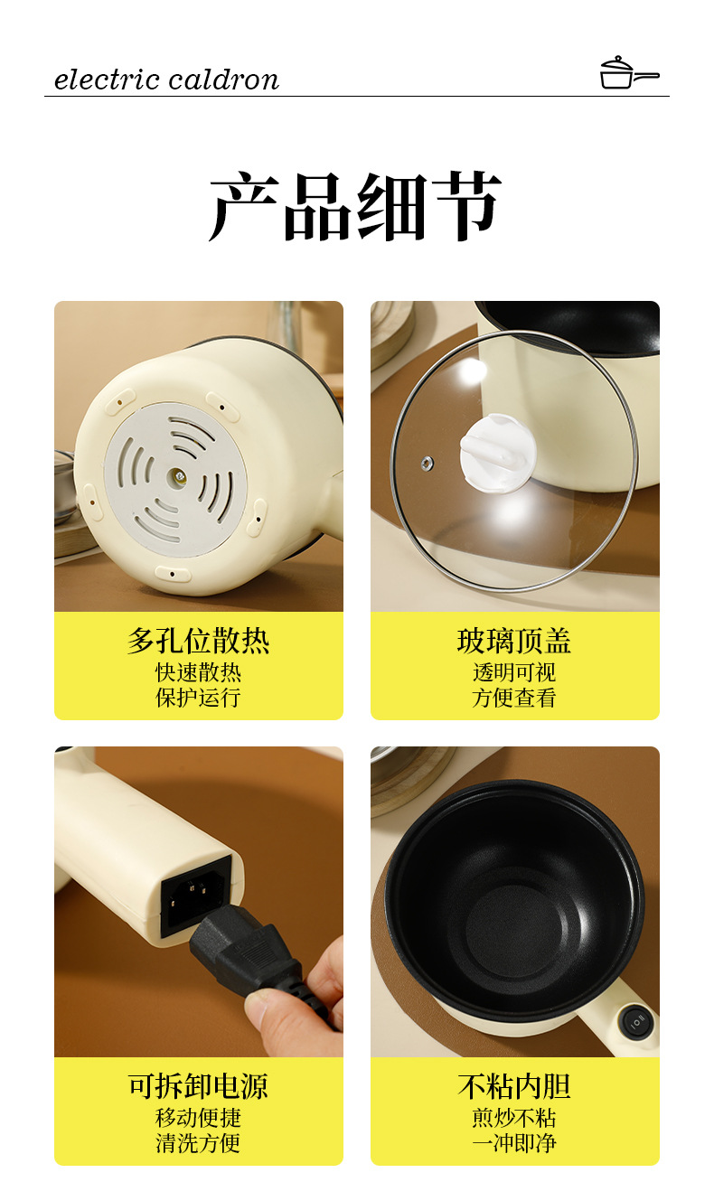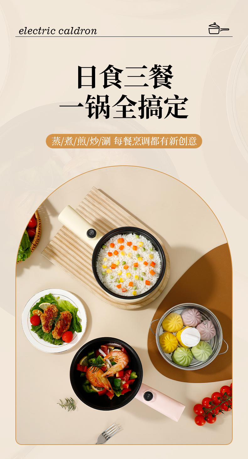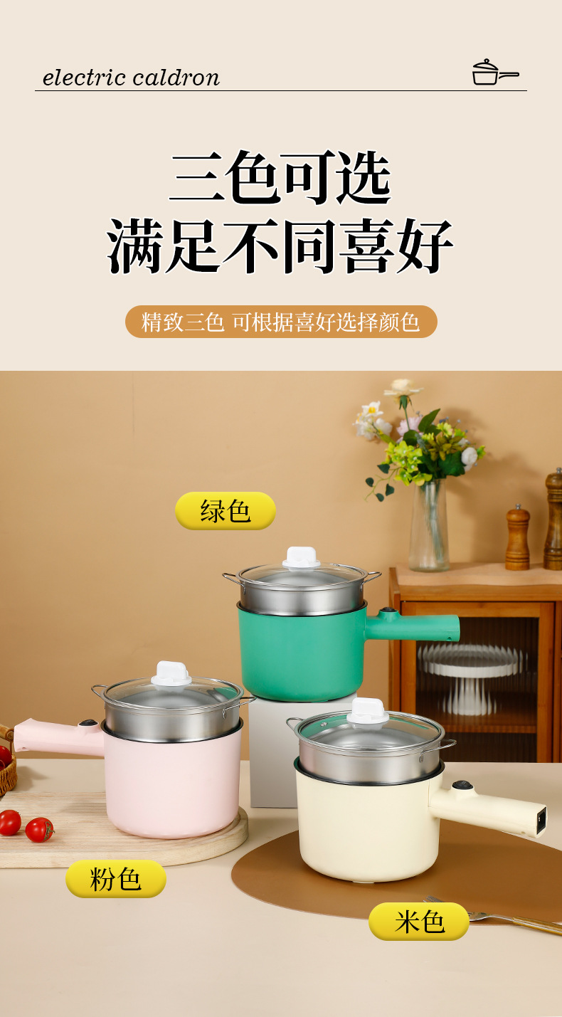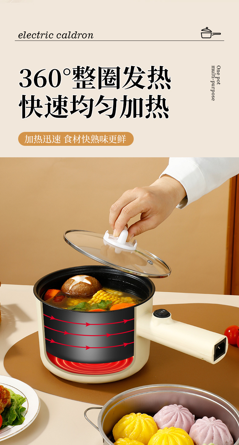 不锈钢电煮锅礼品小功率学生宿舍泡面锅蒸锅小黄鸭长柄不粘电火锅