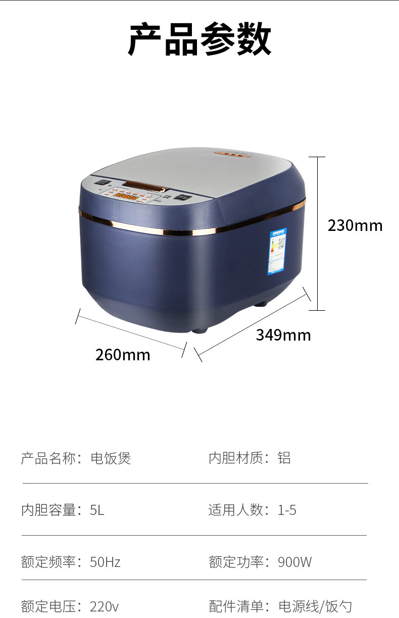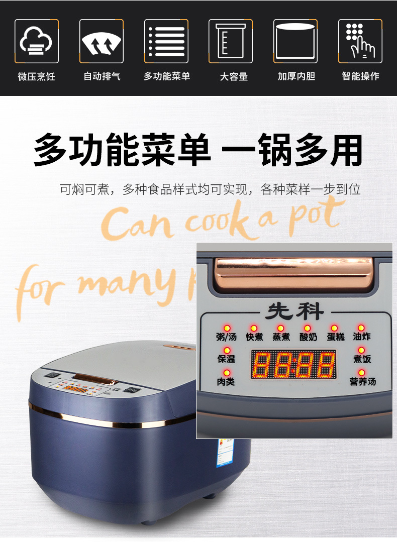 先科智能电饭煲5L家用大容量电饭煲多功能不粘内胆电饭锅礼品批发