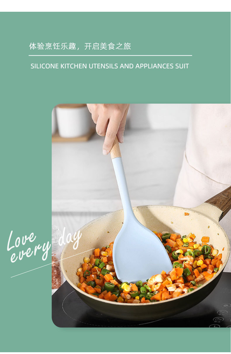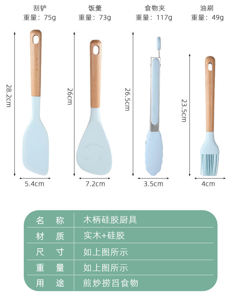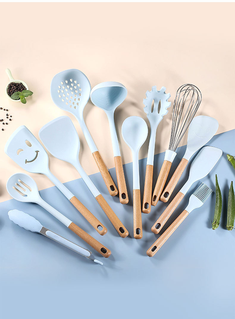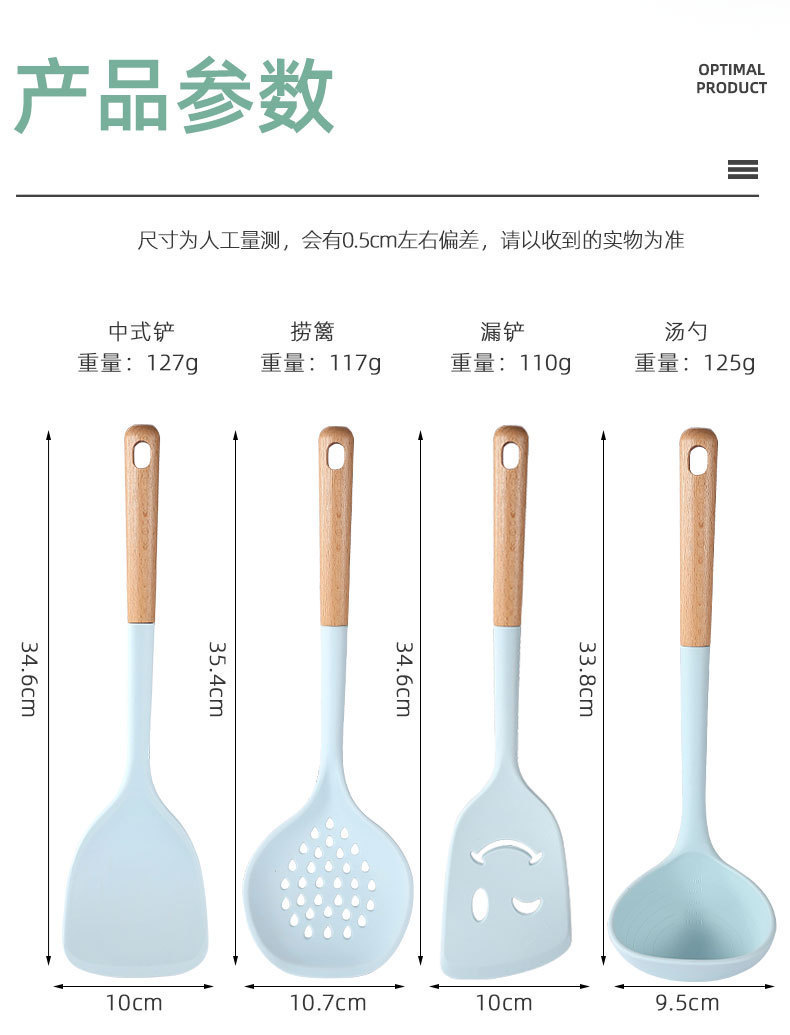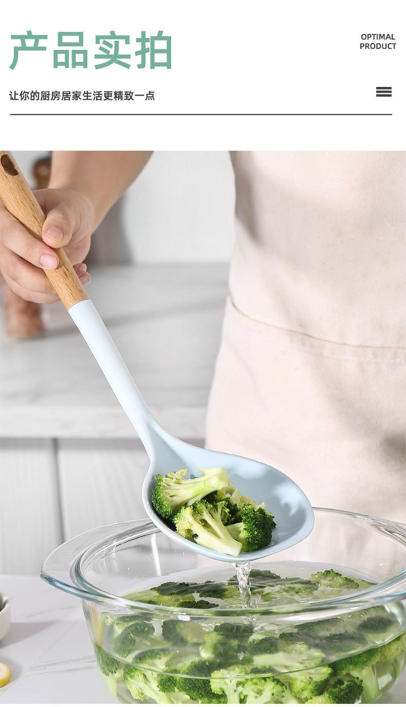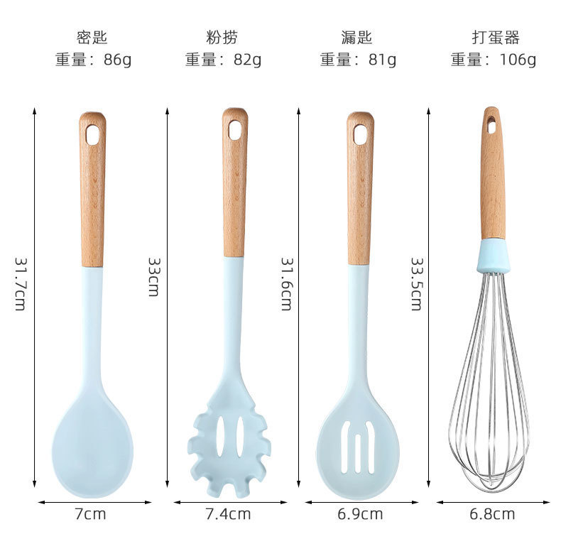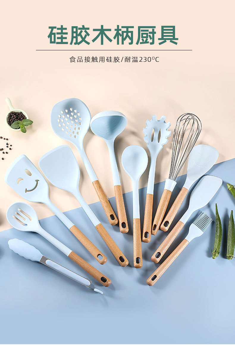 【悦禧厨】硅胶厨具12件套装榉手柄硅胶中式铲汤勺食物夹铲勺套装