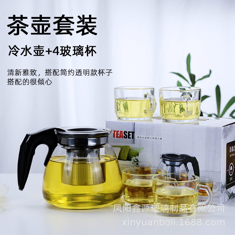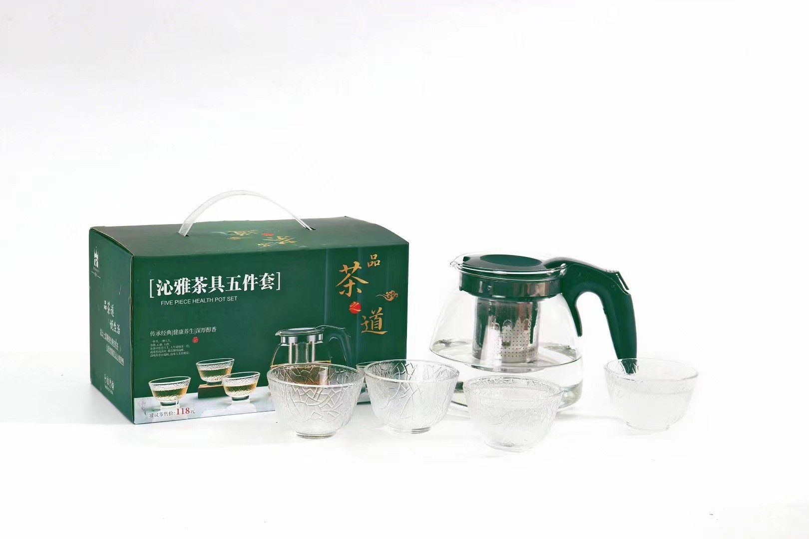 店庆活动礼品玻璃泡茶壶五件套大容量家用功夫茶具套装进店随手礼