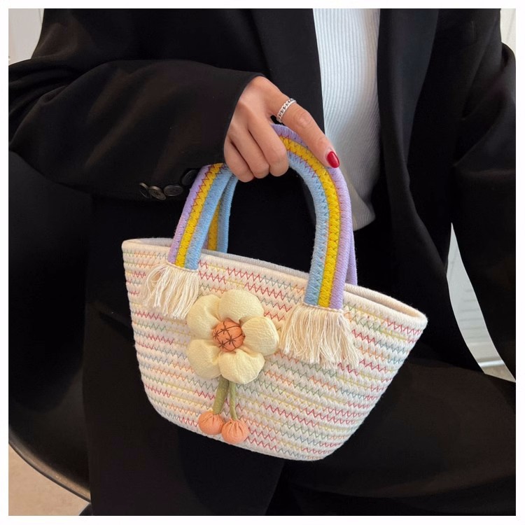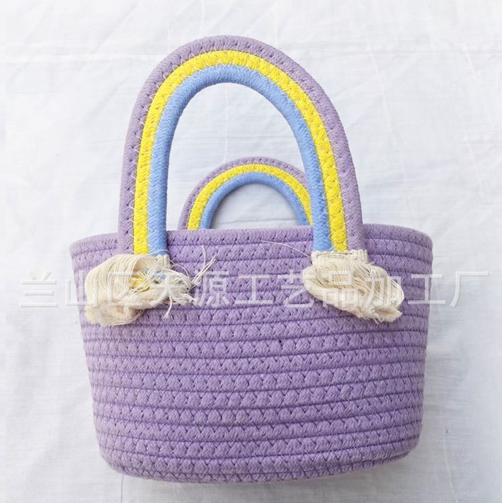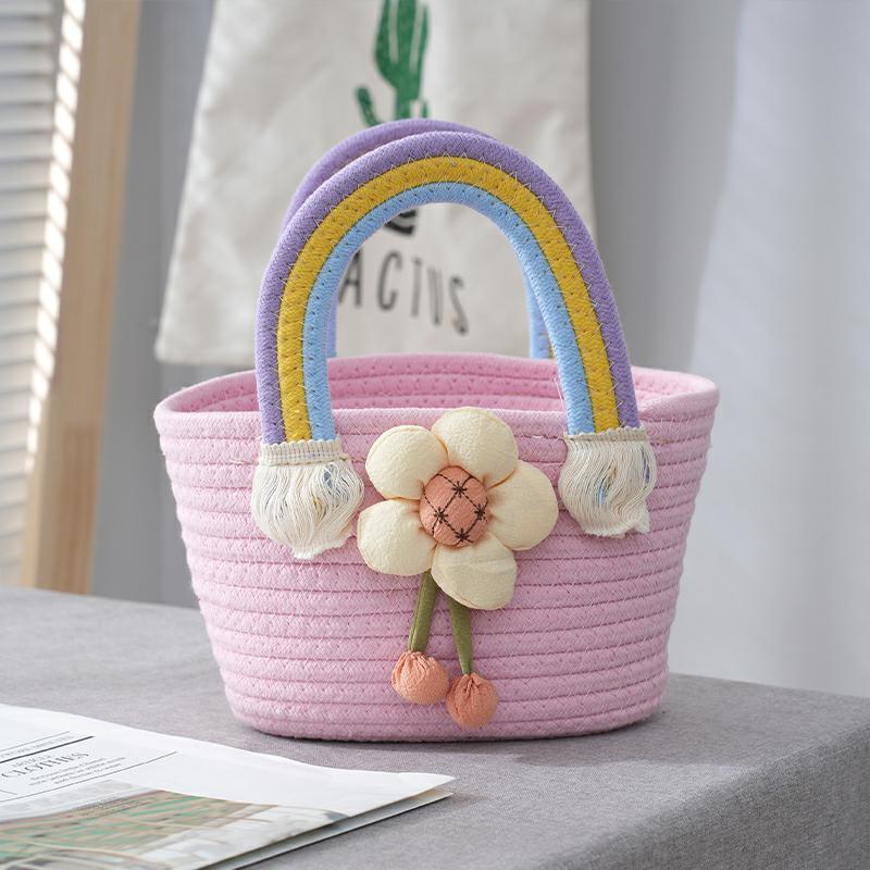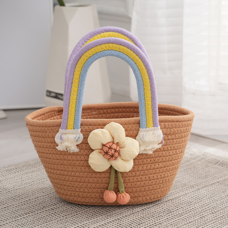 太阳花朵棉绳编织包包草编包宝宝生日宴手提云朵彩虹包伴手礼篮子