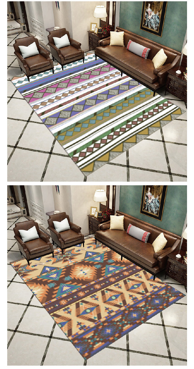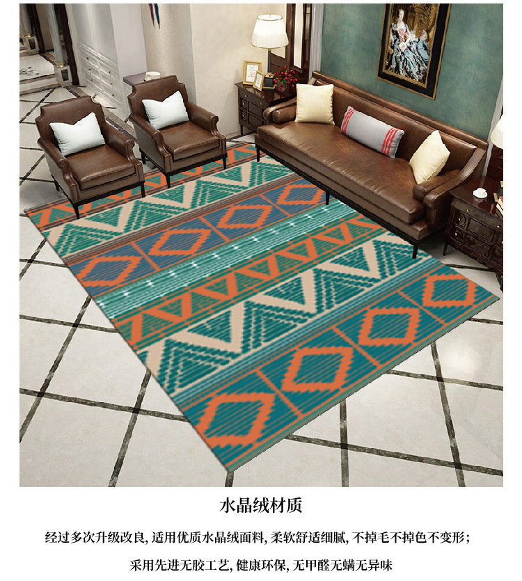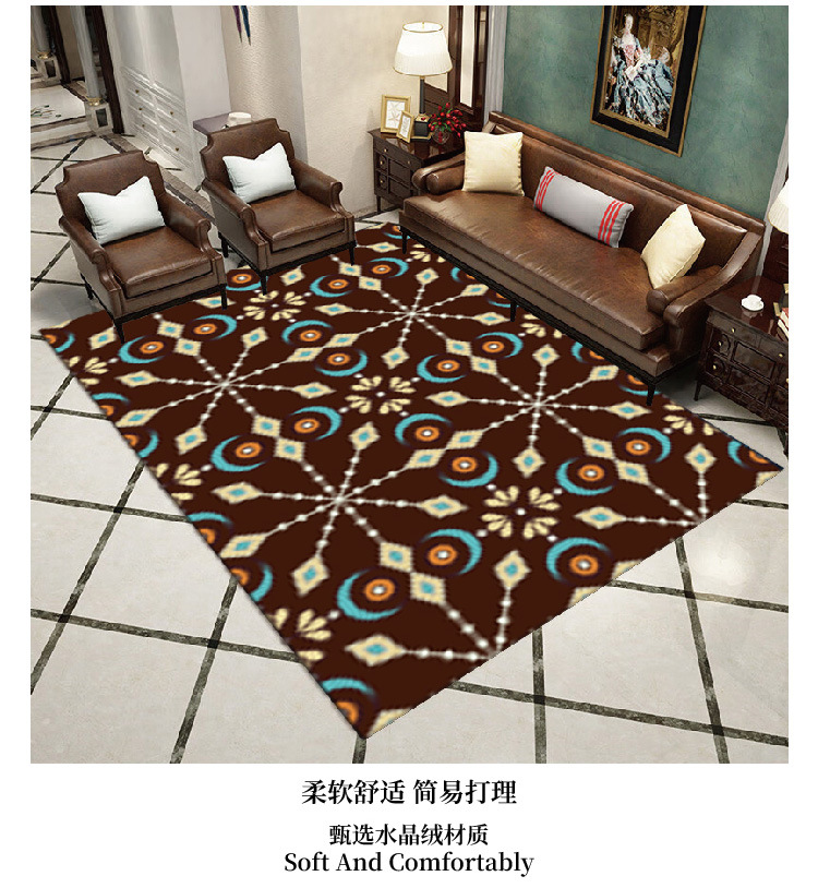 现代简约欧式防水地毯水晶绒高清印花吸水地毯客厅书房地垫