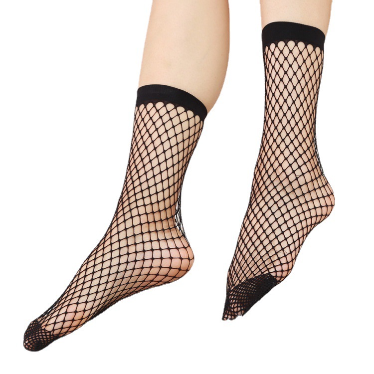 春秋中长筒渔网袜女简装透气夏季现货网眼纯色黑色堆堆袜独立包装