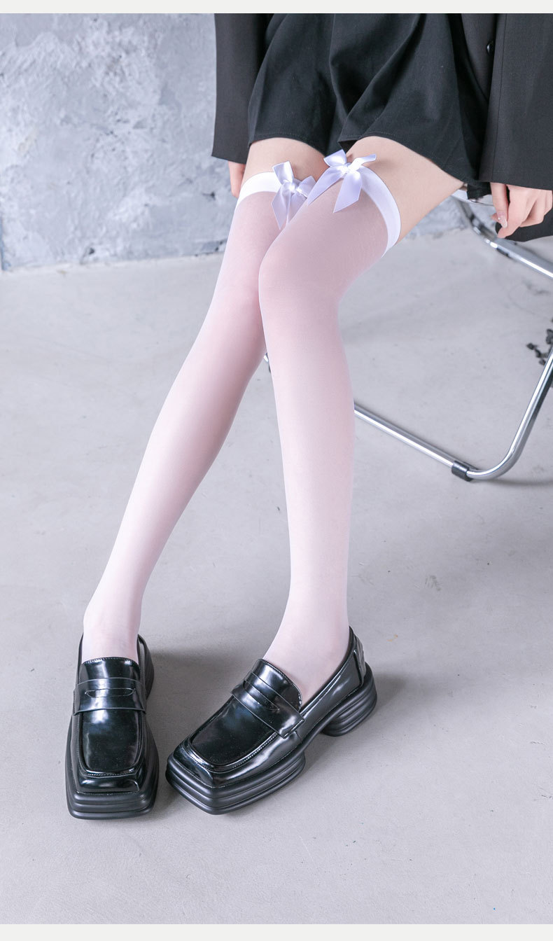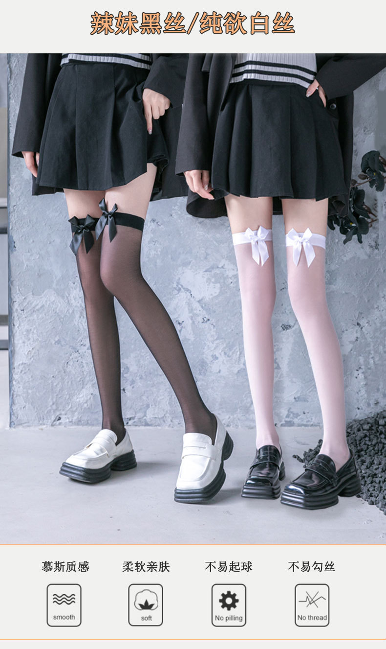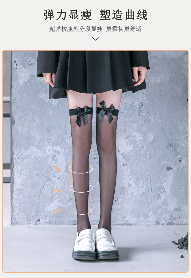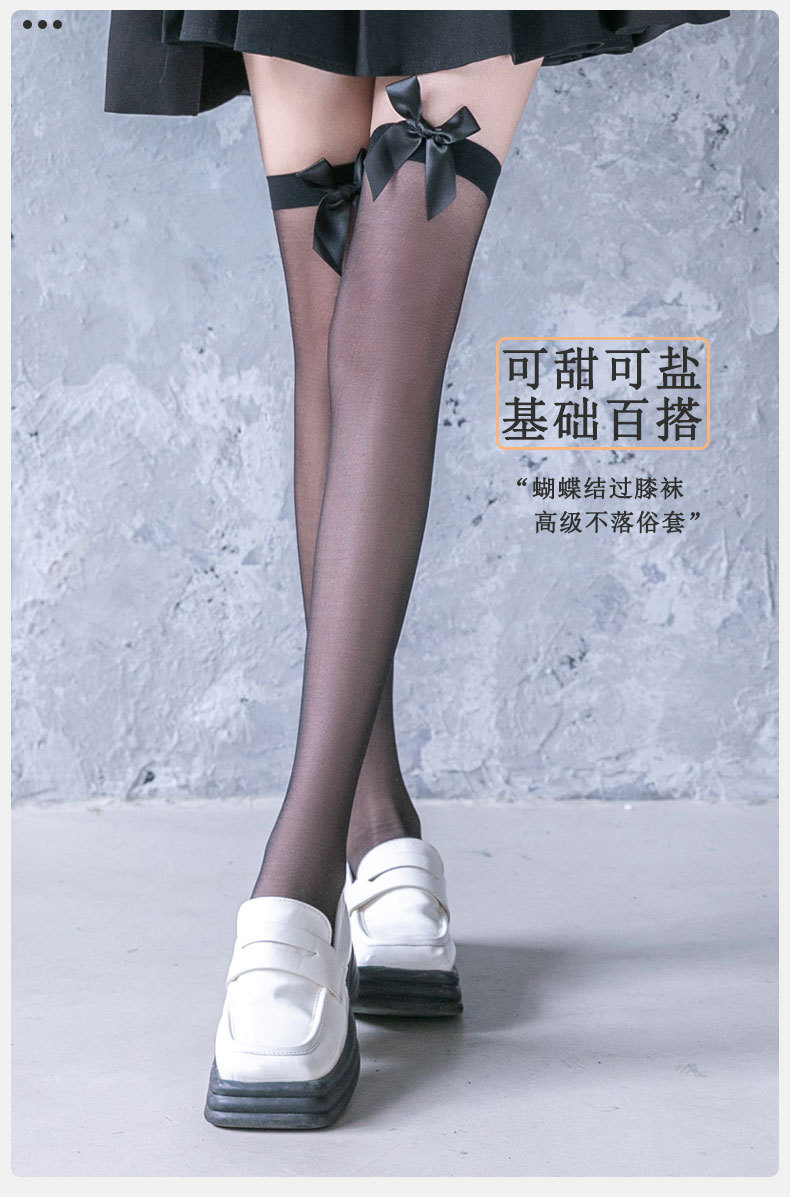 蕾丝蝴蝶结黑丝过膝袜女春秋薄款性感jk黑色丝袜夏季超薄长筒袜子