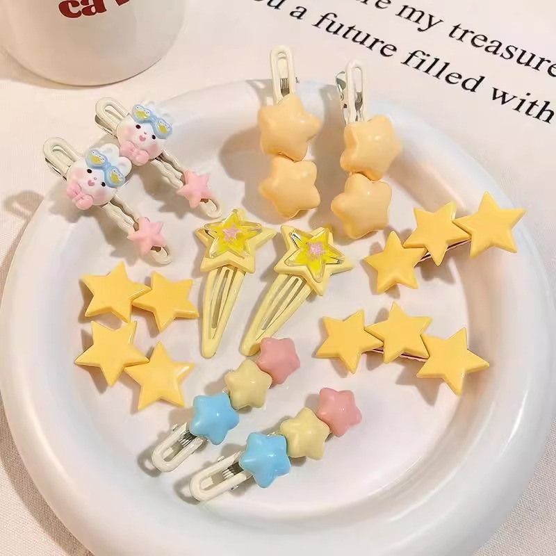 多巴胺系列发卡女2024新款刘海星星发夹子头饰简约y2k圆形发饰