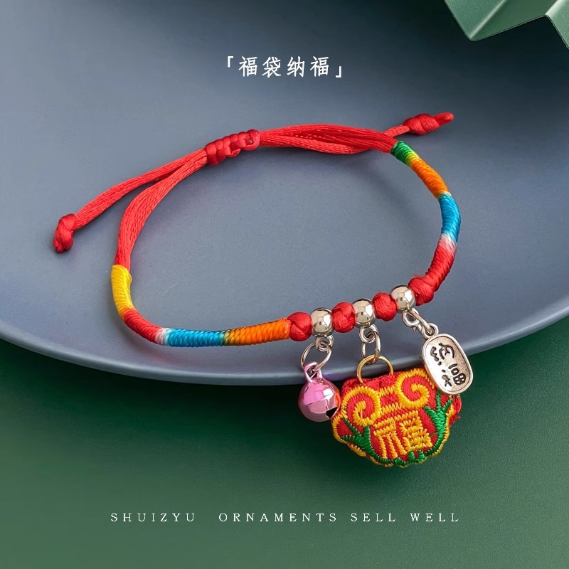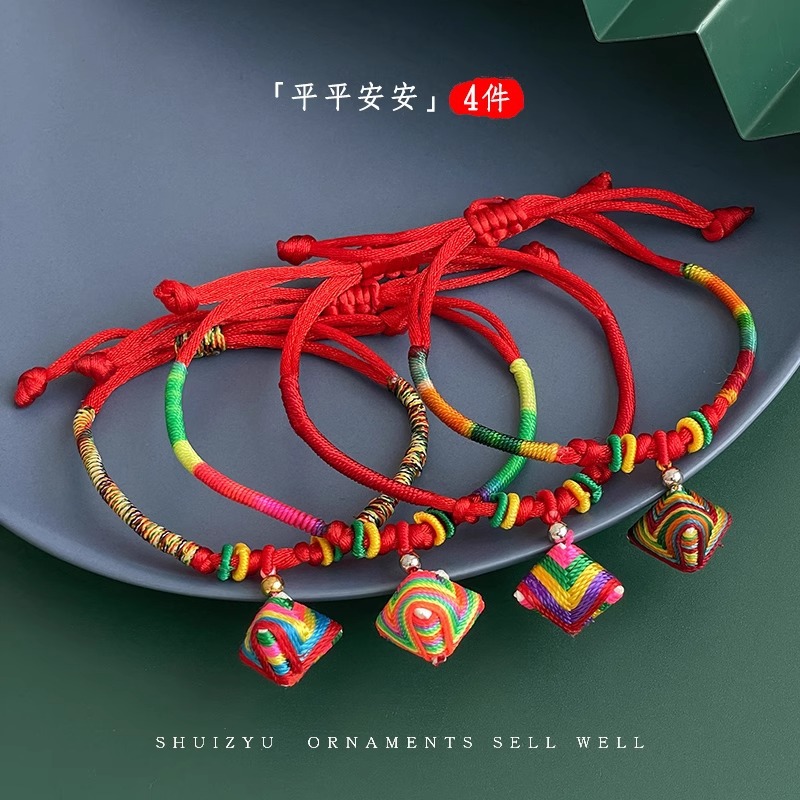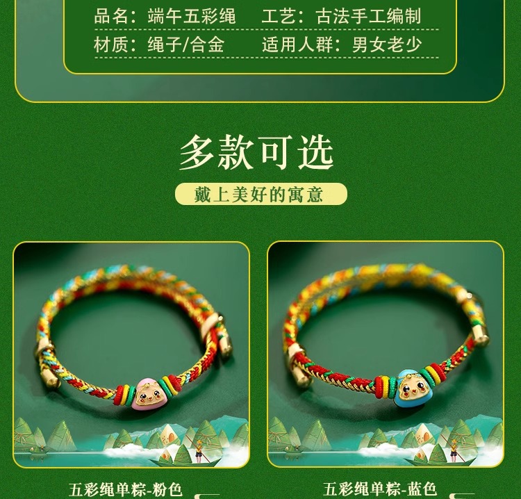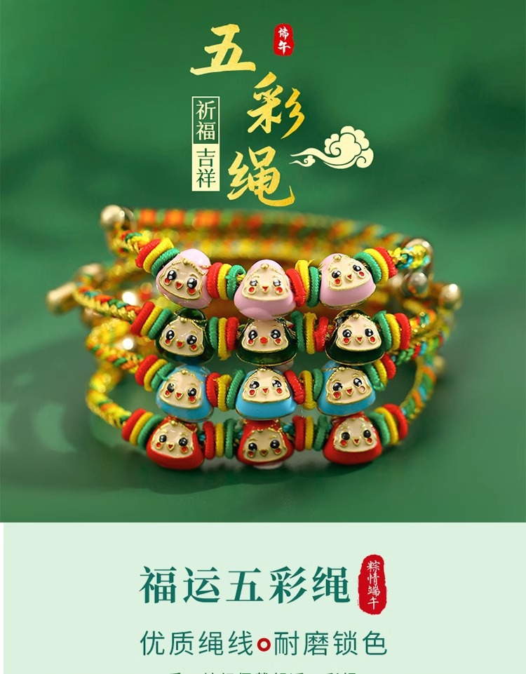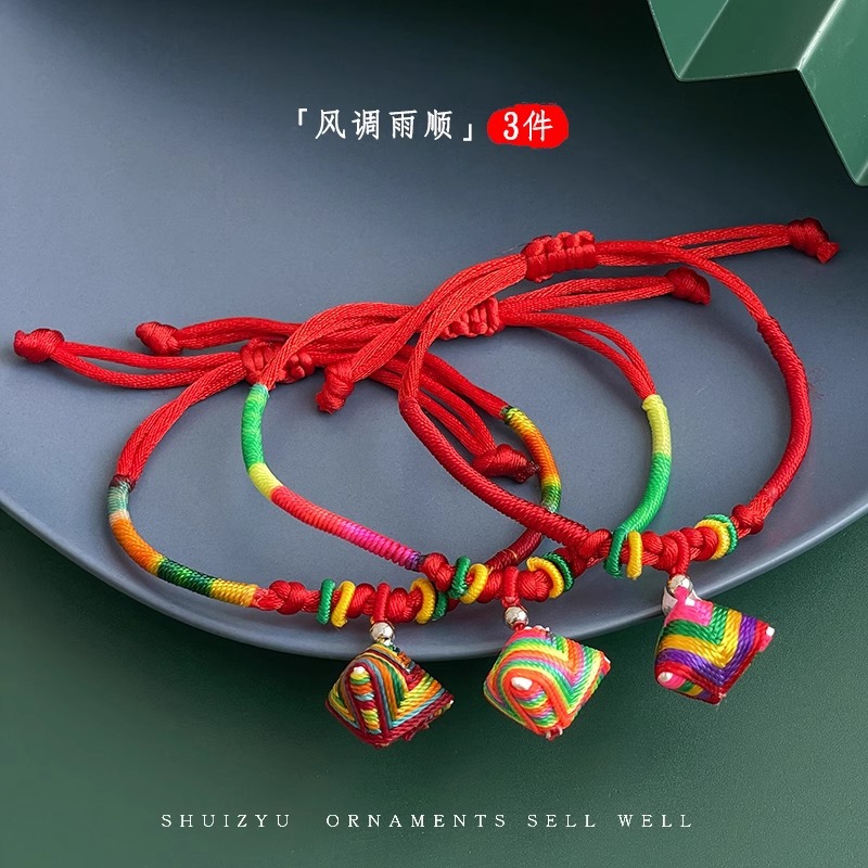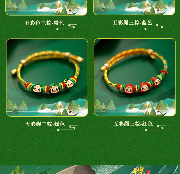 端午节五彩绳红绳手链儿童宝宝小粽子成人款编织婴儿手绳新款脚链