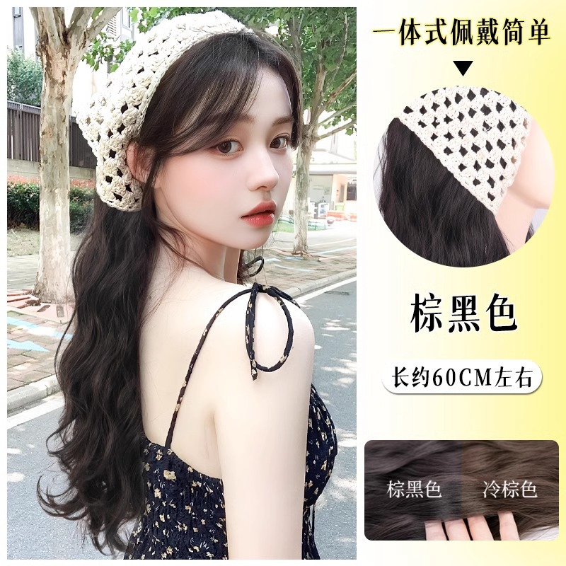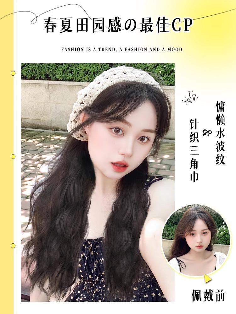 三角巾发箍假发女全头套式一体时尚仿全真人发长卷发高颅顶假发套
