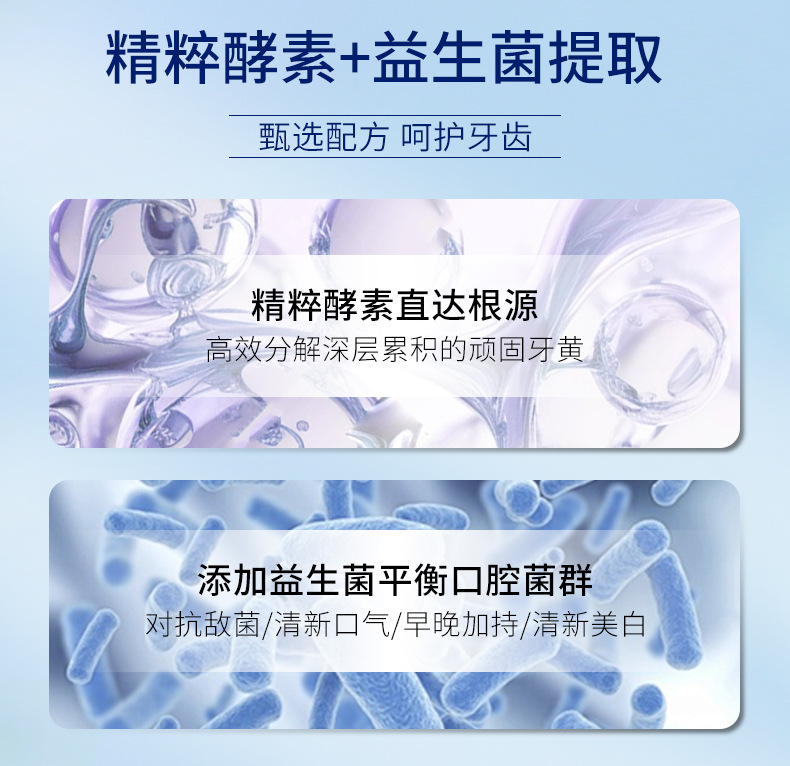 益生菌牙膏亮白去黄去口臭清新口气海洋薄荷味护牙龈泡沫绵密