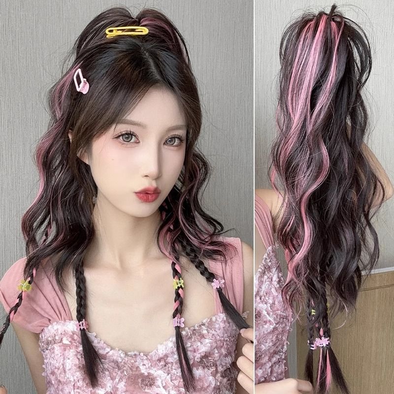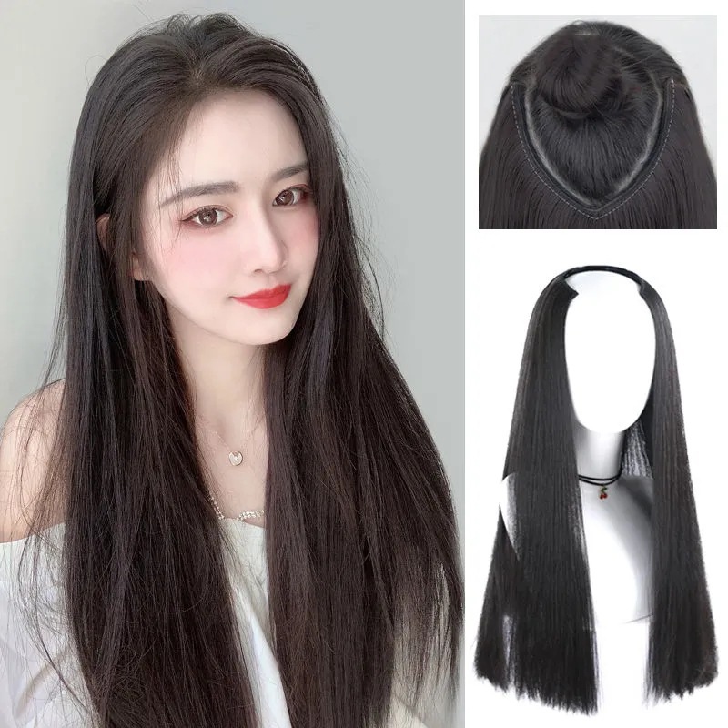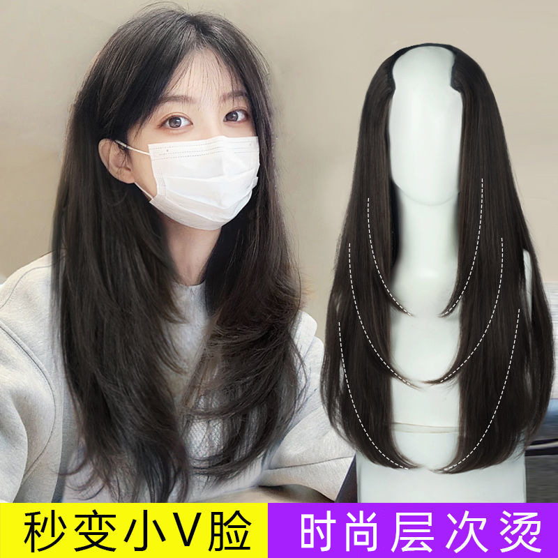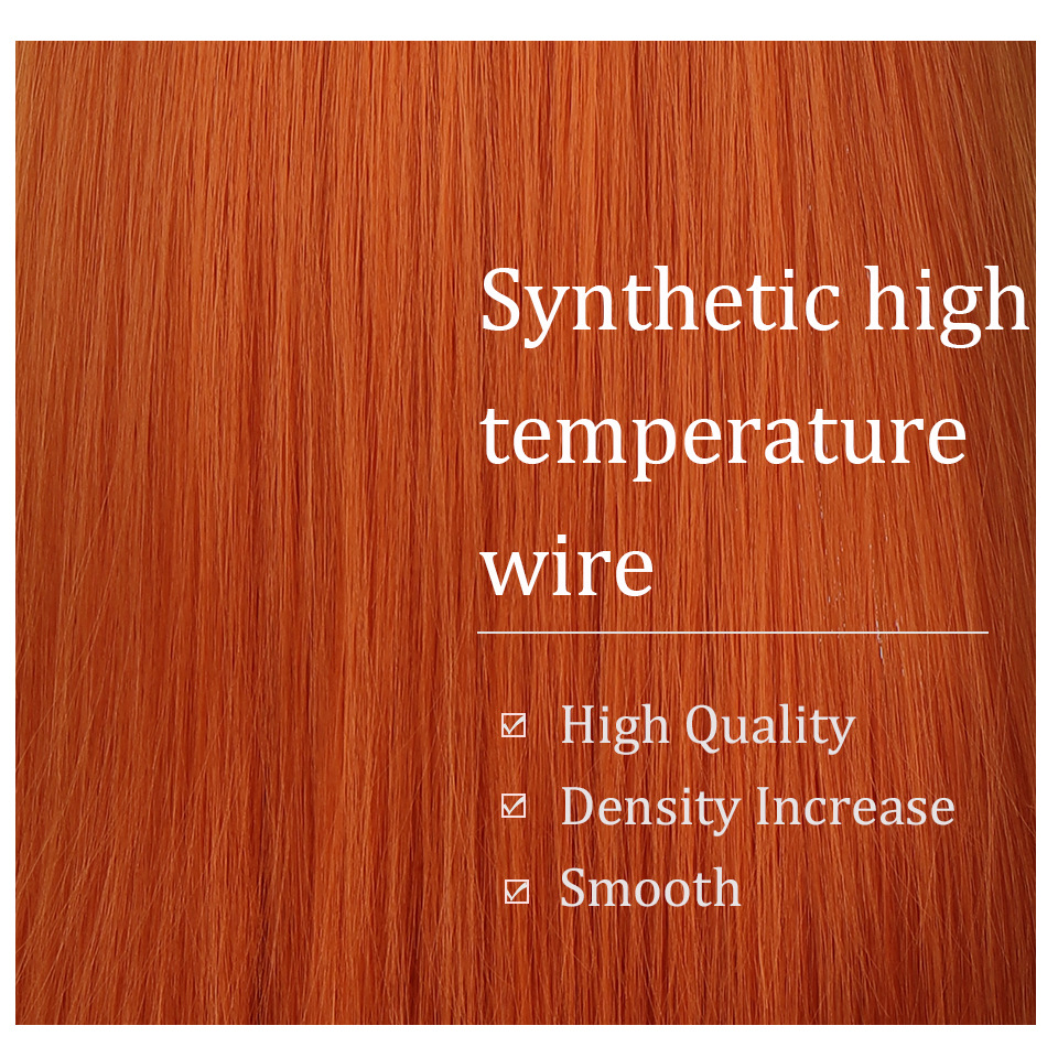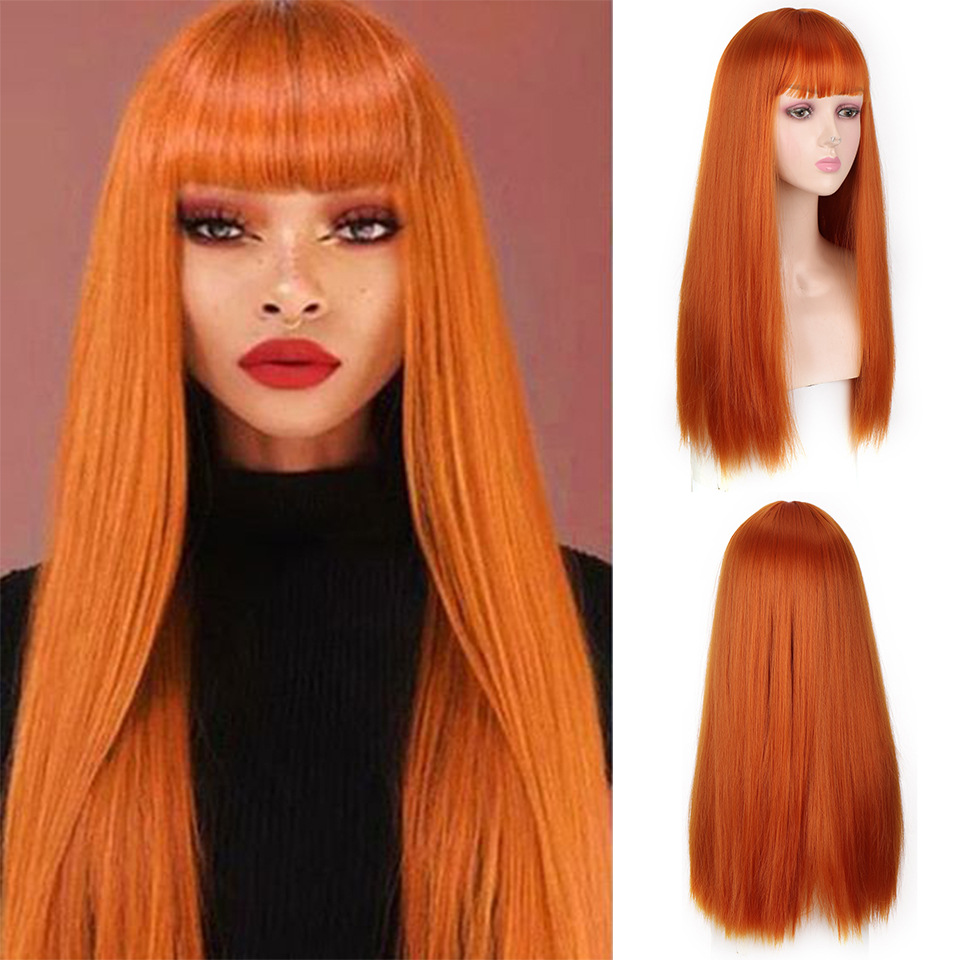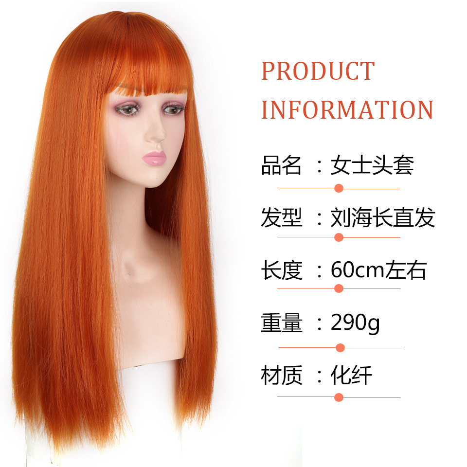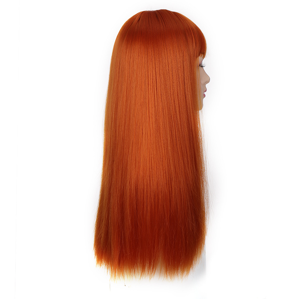 厂家现货 欧美女士假发橘色齐刘海长直发假发高温化纤全头套批发