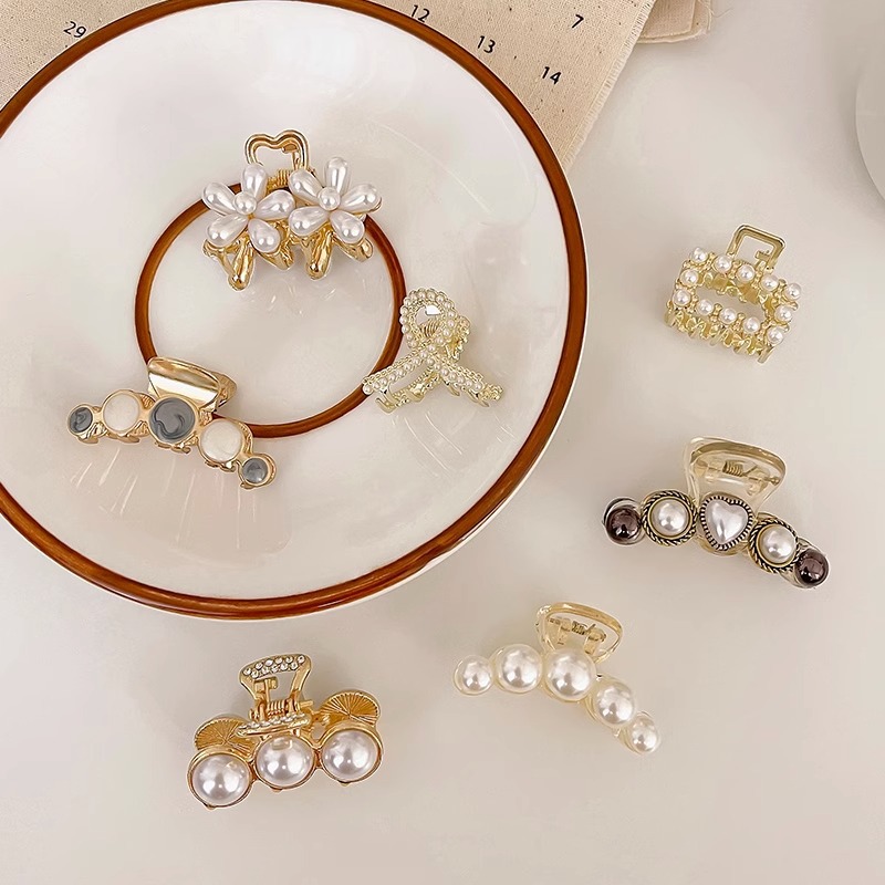发夹网红2023年新款鲨鱼夹后脑勺韩国珍珠夹子头饰半扎发夏抓夹女