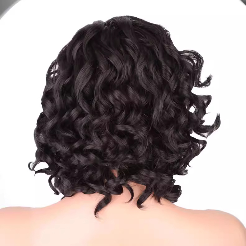 速卖通爆款假发女士黑色短卷发逼真机制玫瑰网假发套厂家现货批发