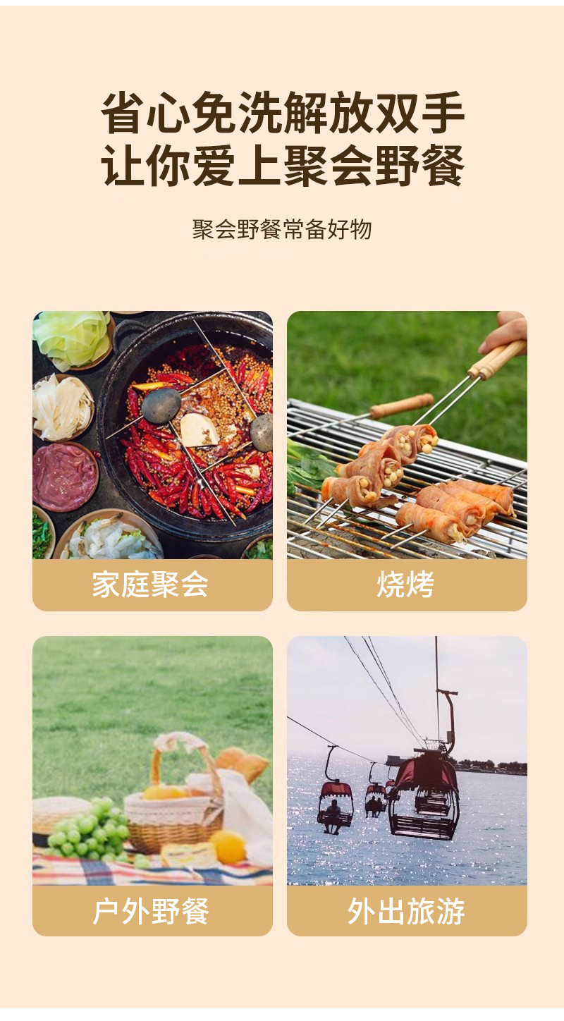 美宝琳一次性餐具碗筷杯组合套装野餐烧烤酒席聚餐露营户外旅祥沃