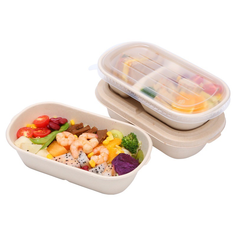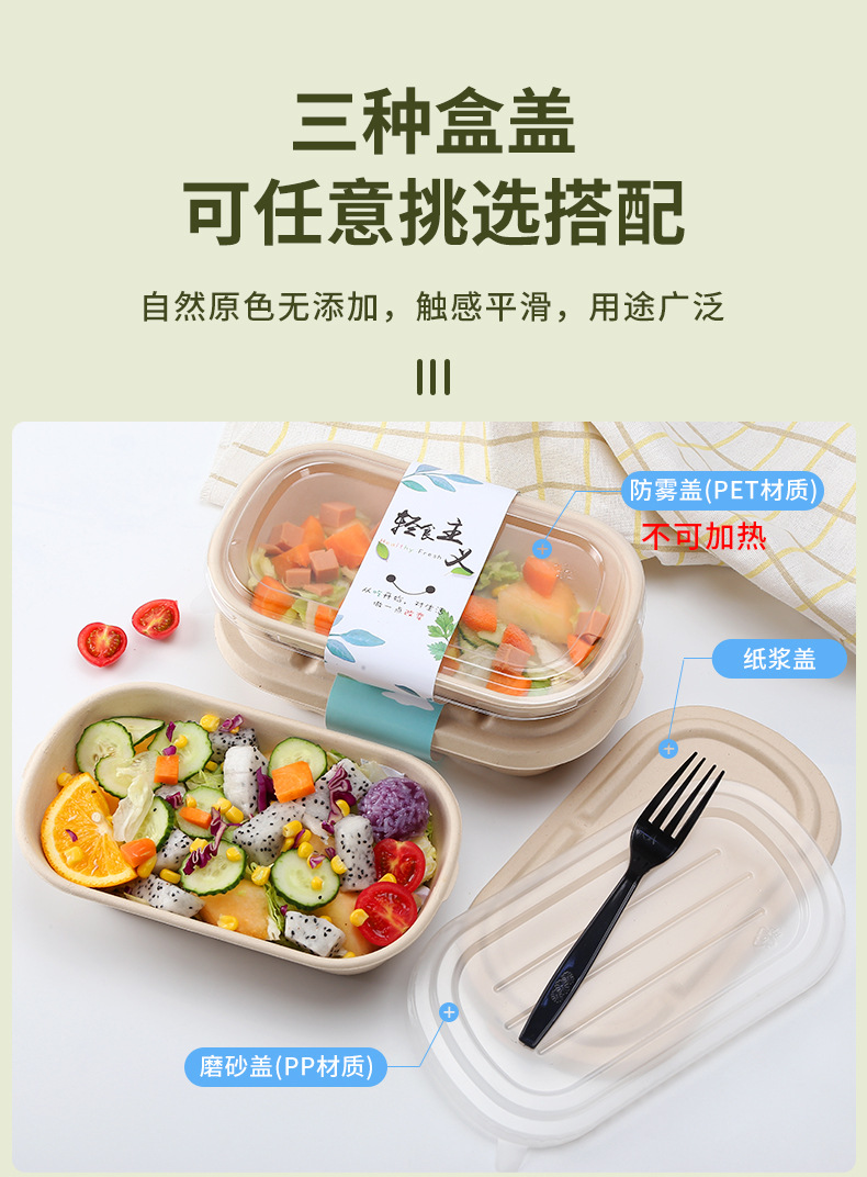 批发一次性纸浆餐盒可降解打包盒轻食沙拉盒长方形外卖水果寿司盒