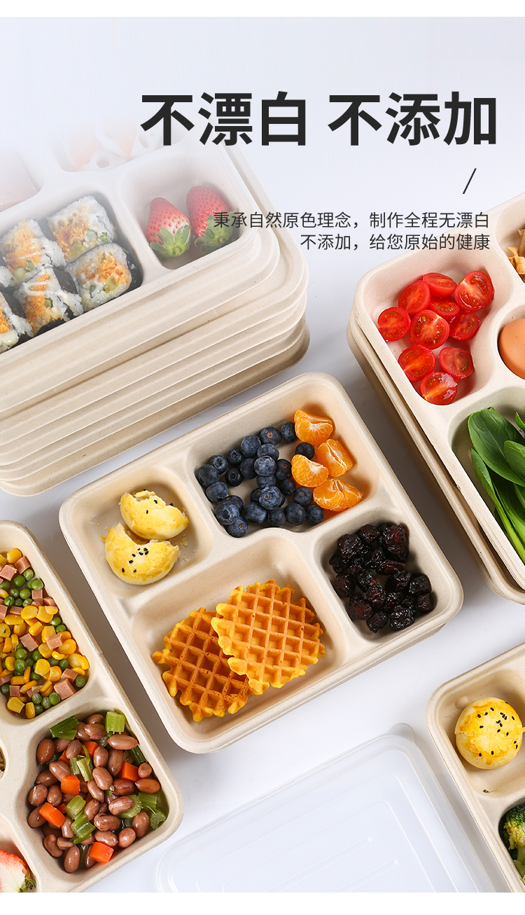 一次性四格饭盒快餐盒食品级外卖打包餐盒环保可降解纸浆餐盘托盘