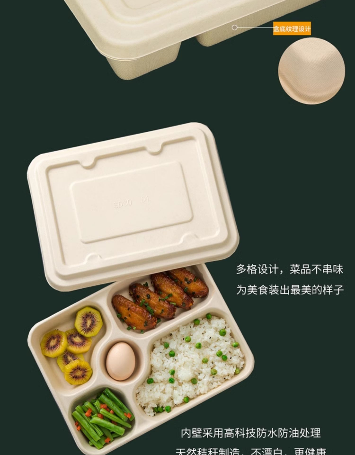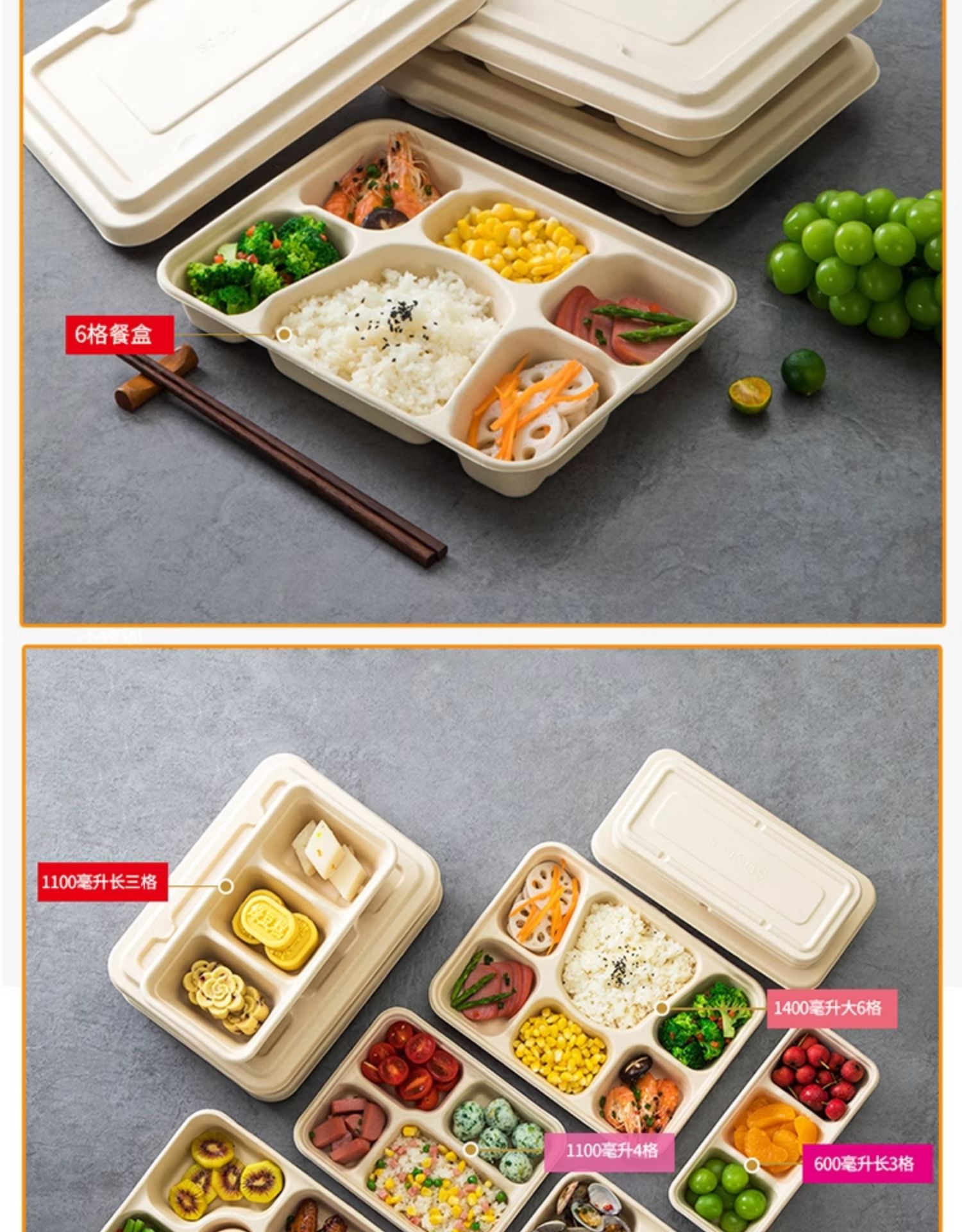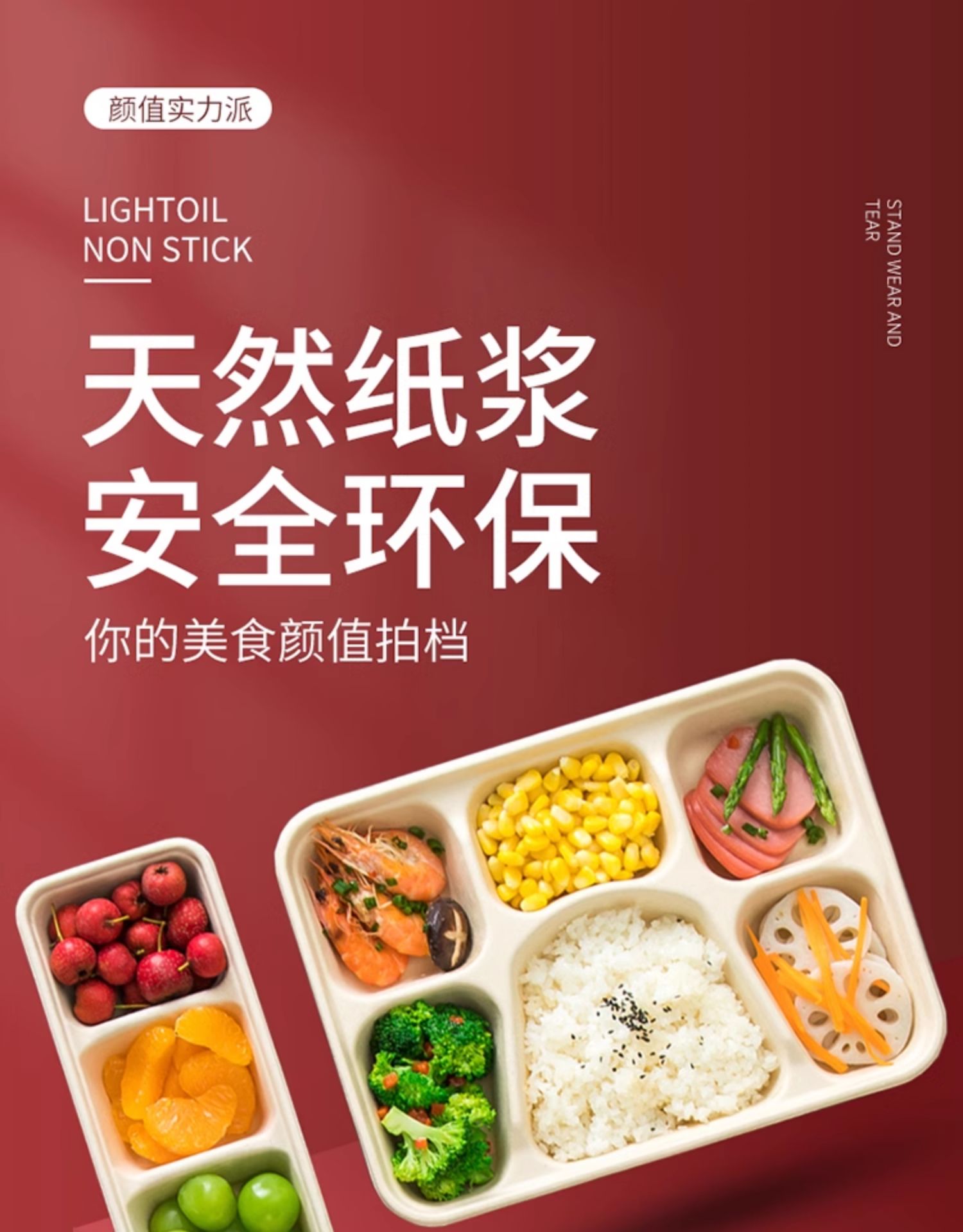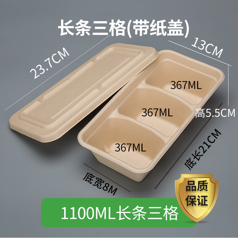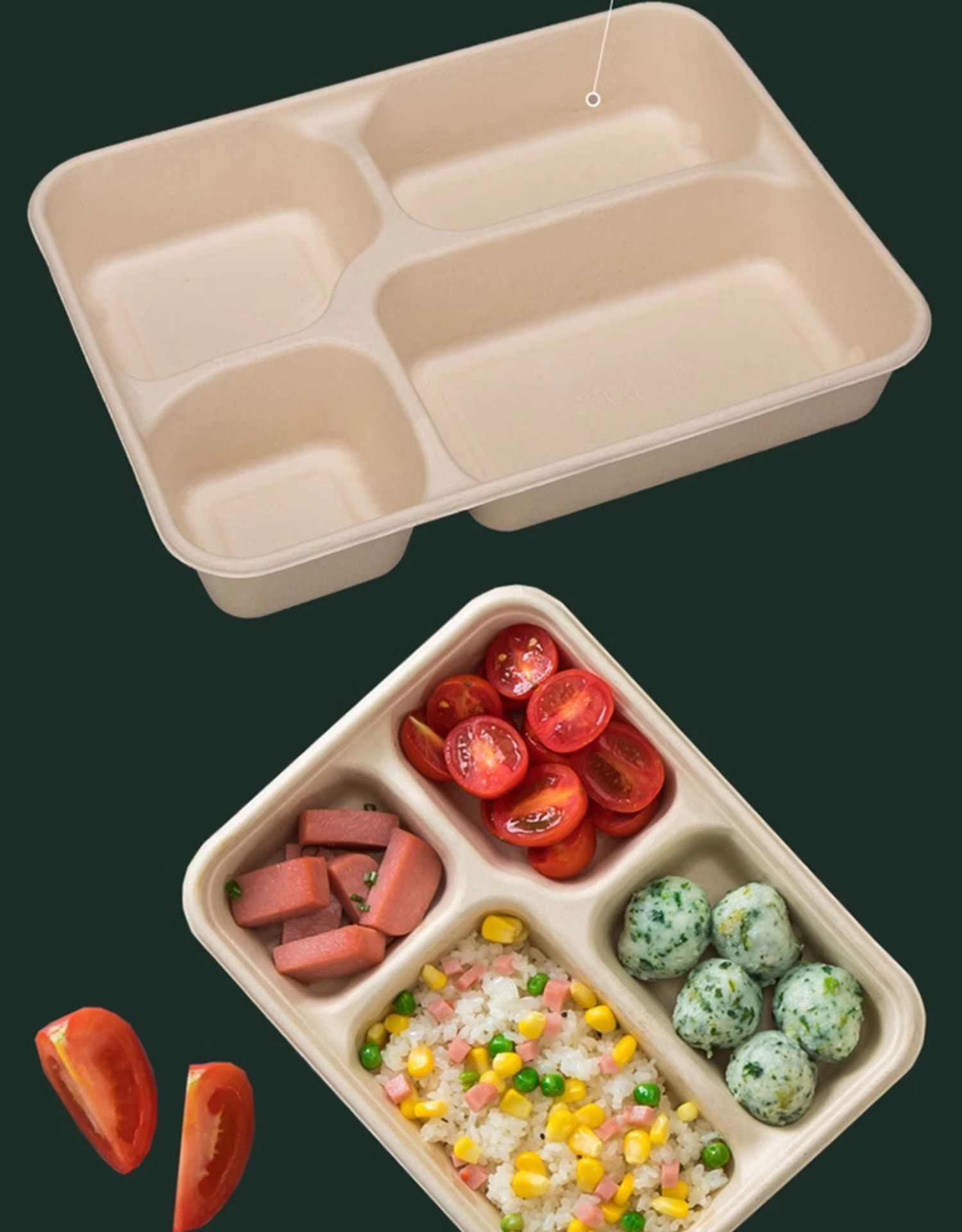 一次性四格饭盒纸浆餐盒环保可降解外卖打包盒三格4格5格分格食品