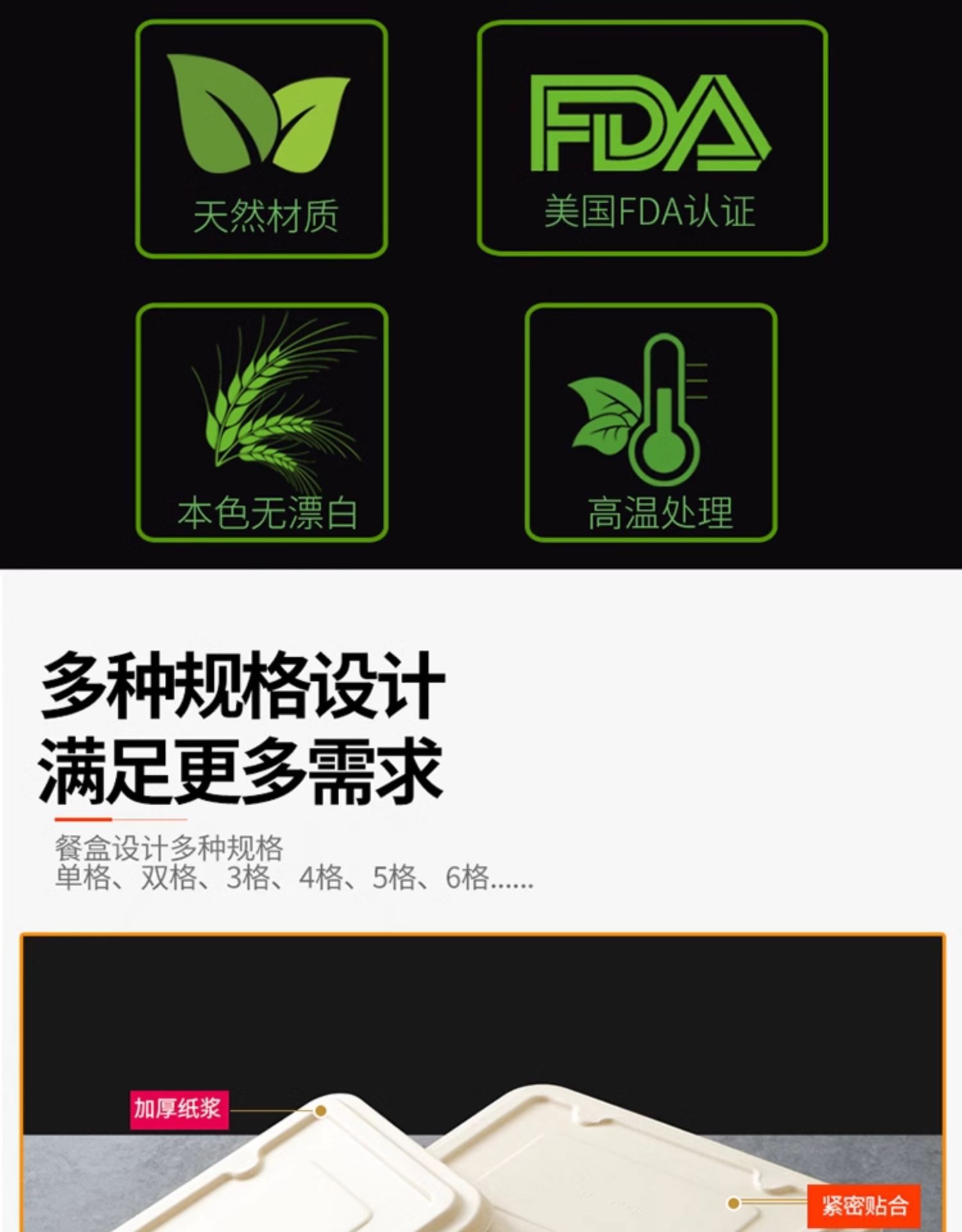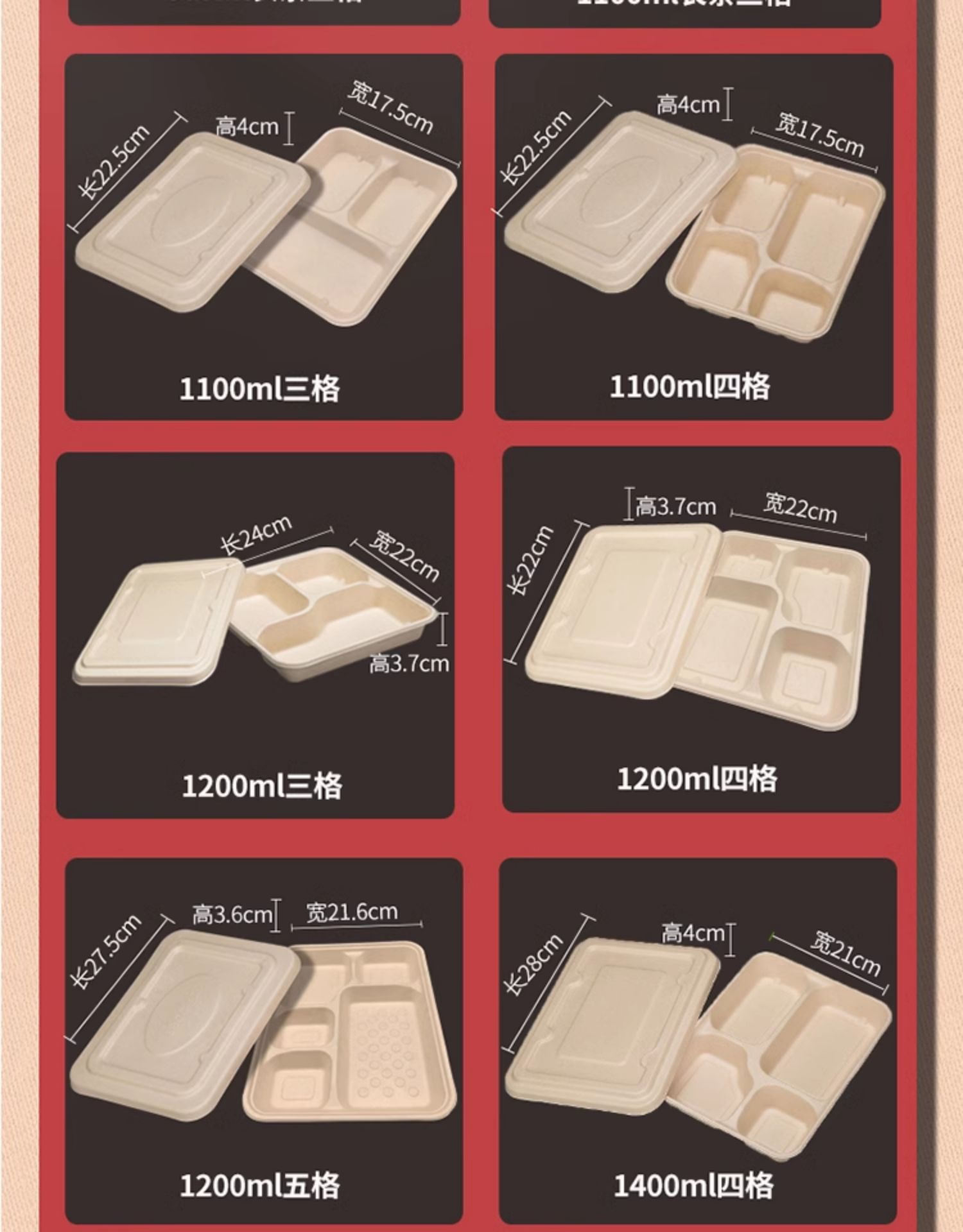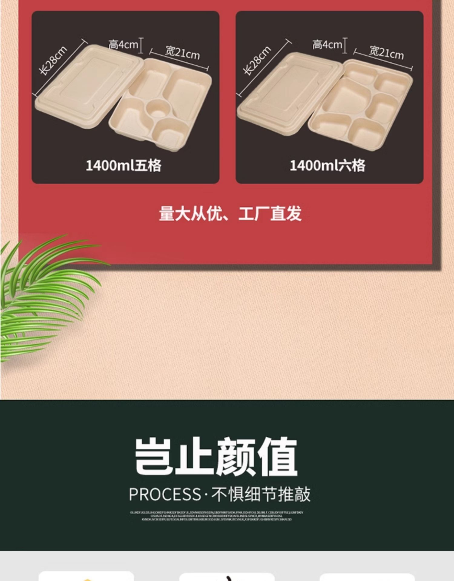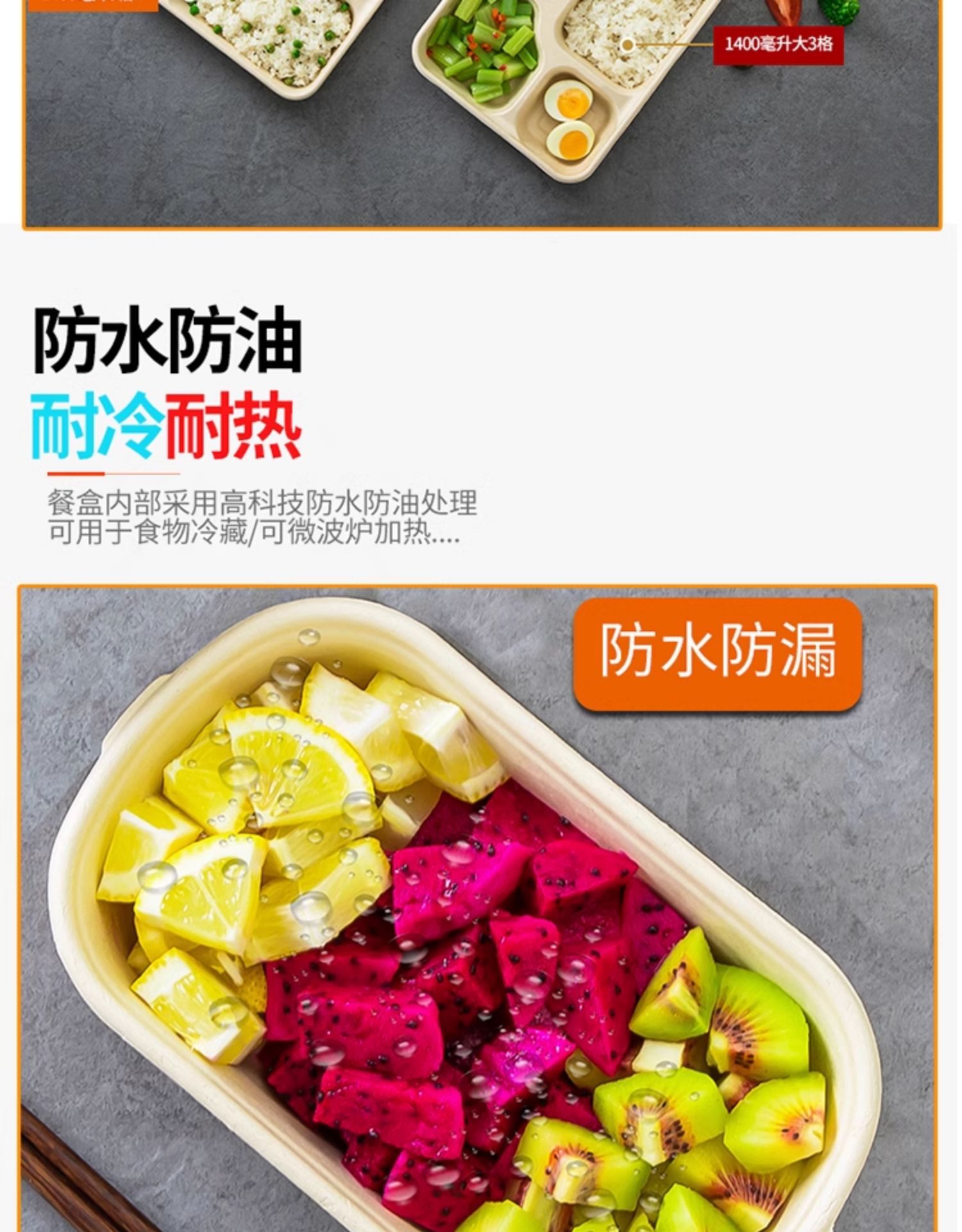 一次性四格饭盒纸浆餐盒环保可降解外卖打包盒三格4格5格分格食品