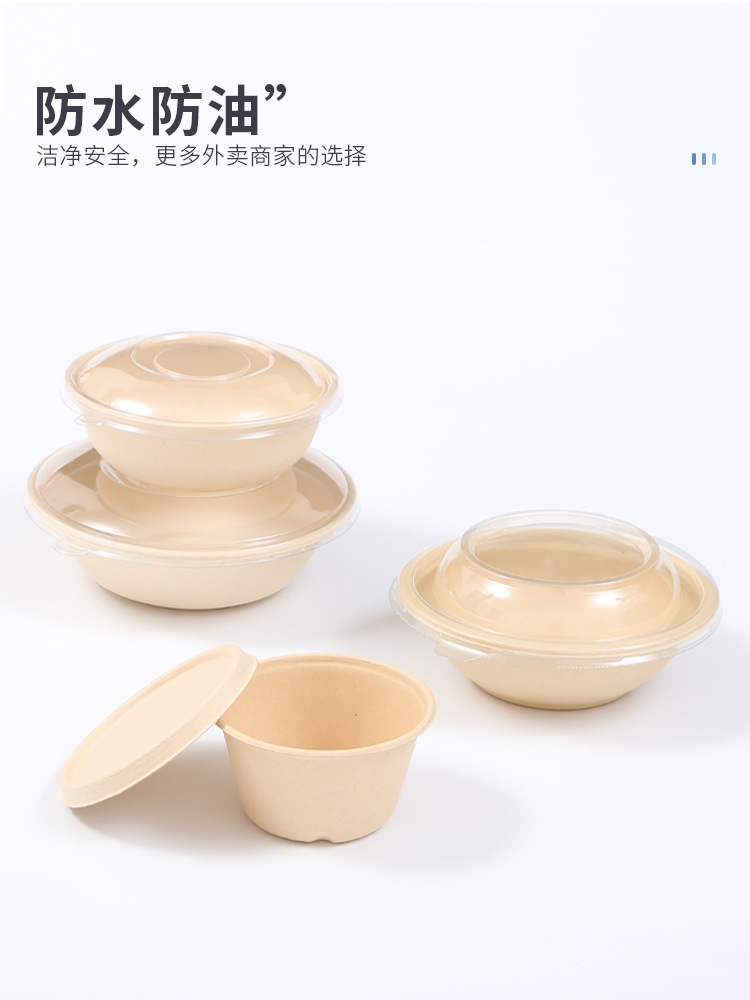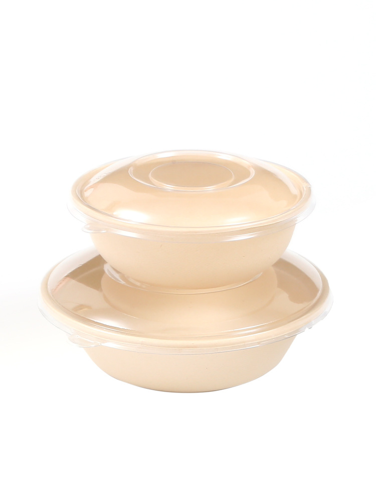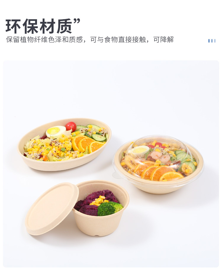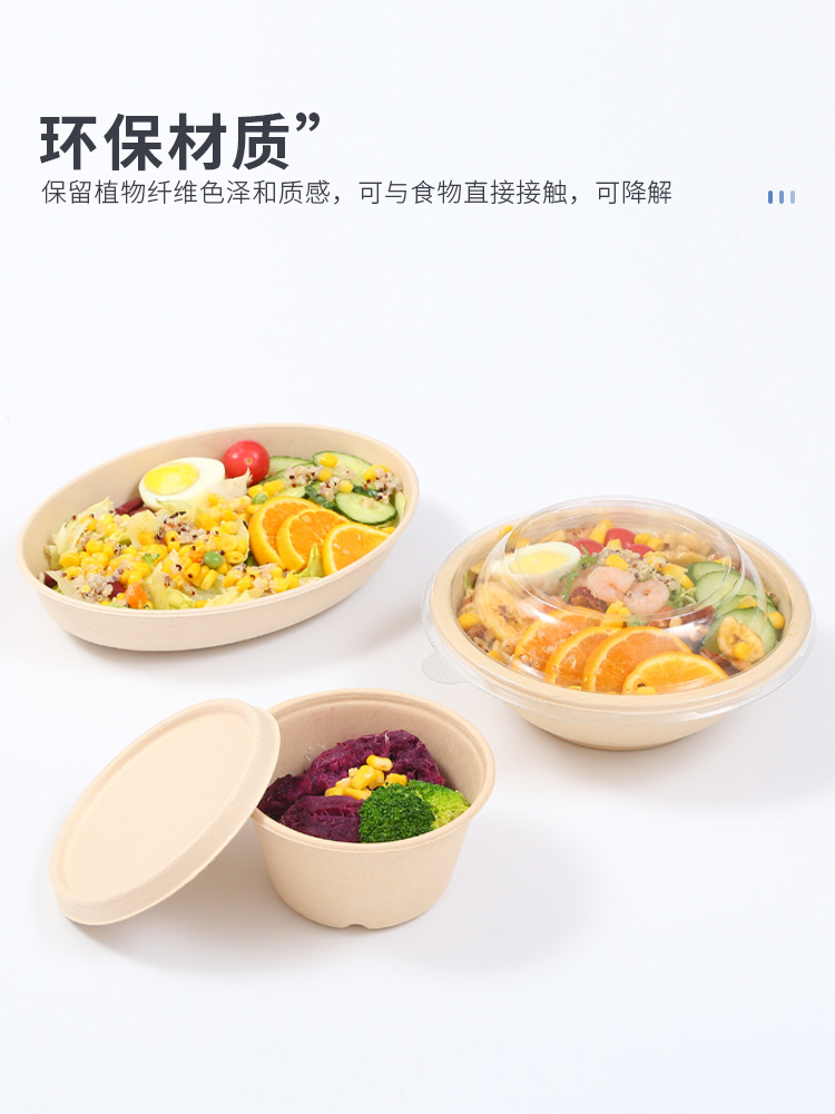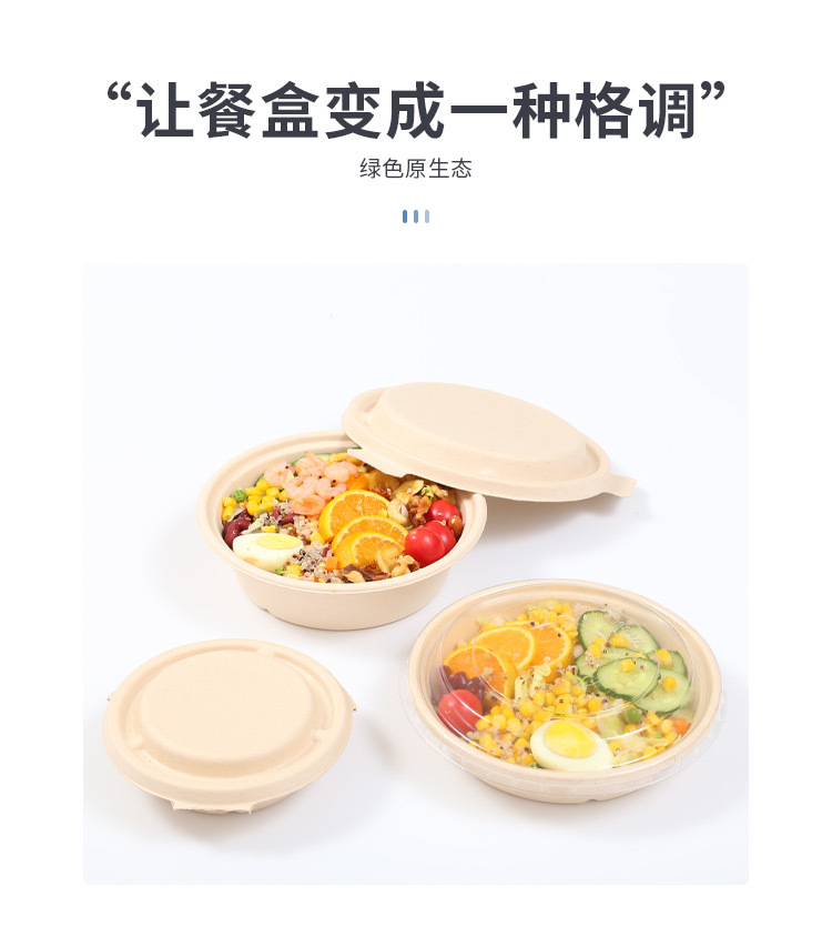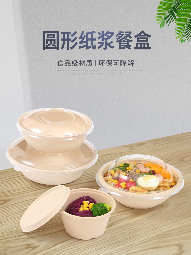 圆形纸浆餐盒一次性餐盒轻食餐健身餐可降解外卖沙拉盒打包碗