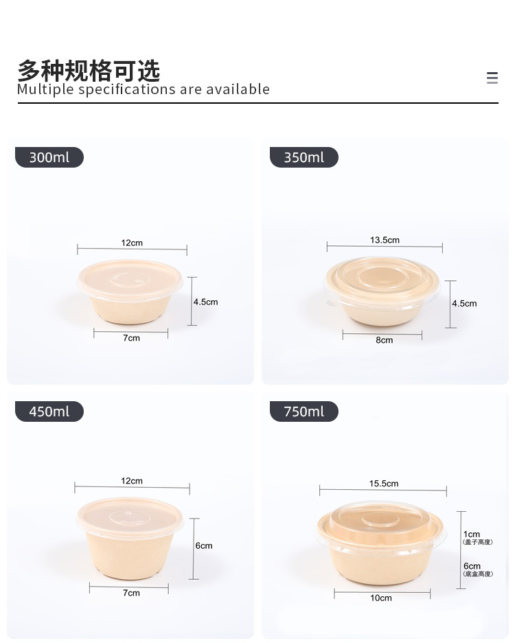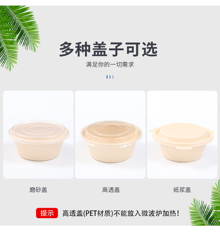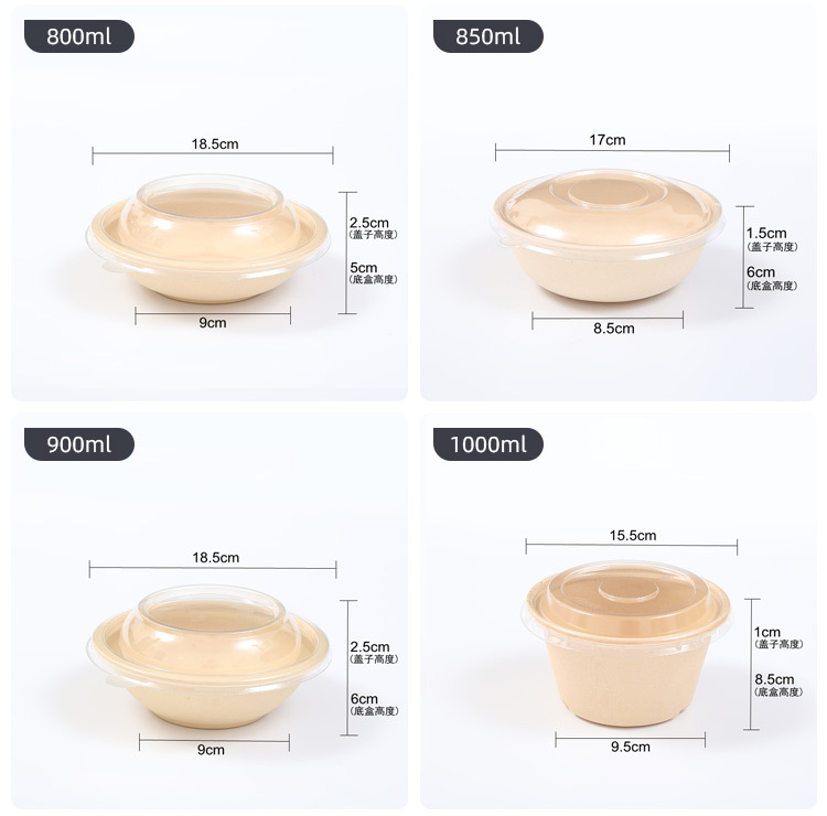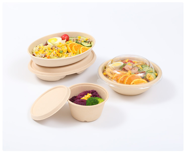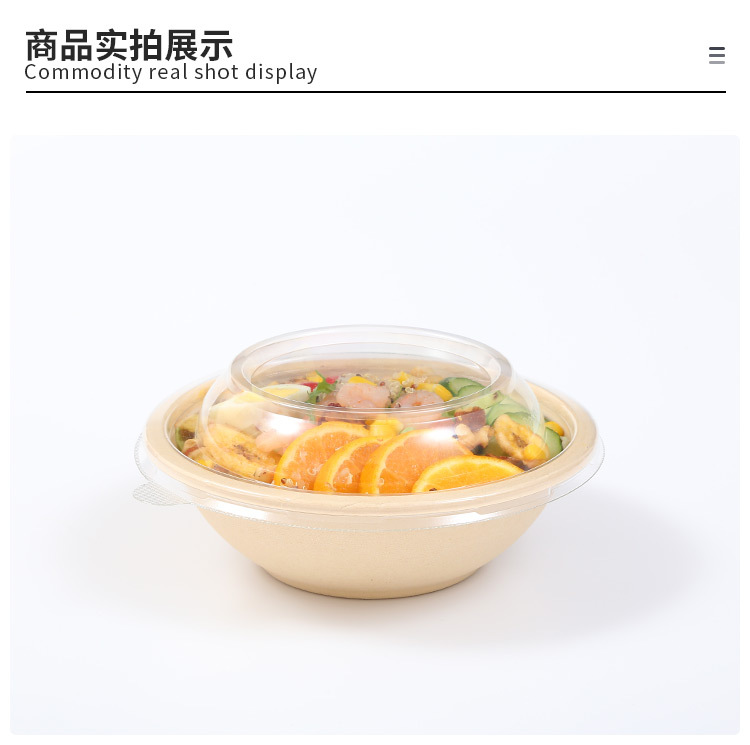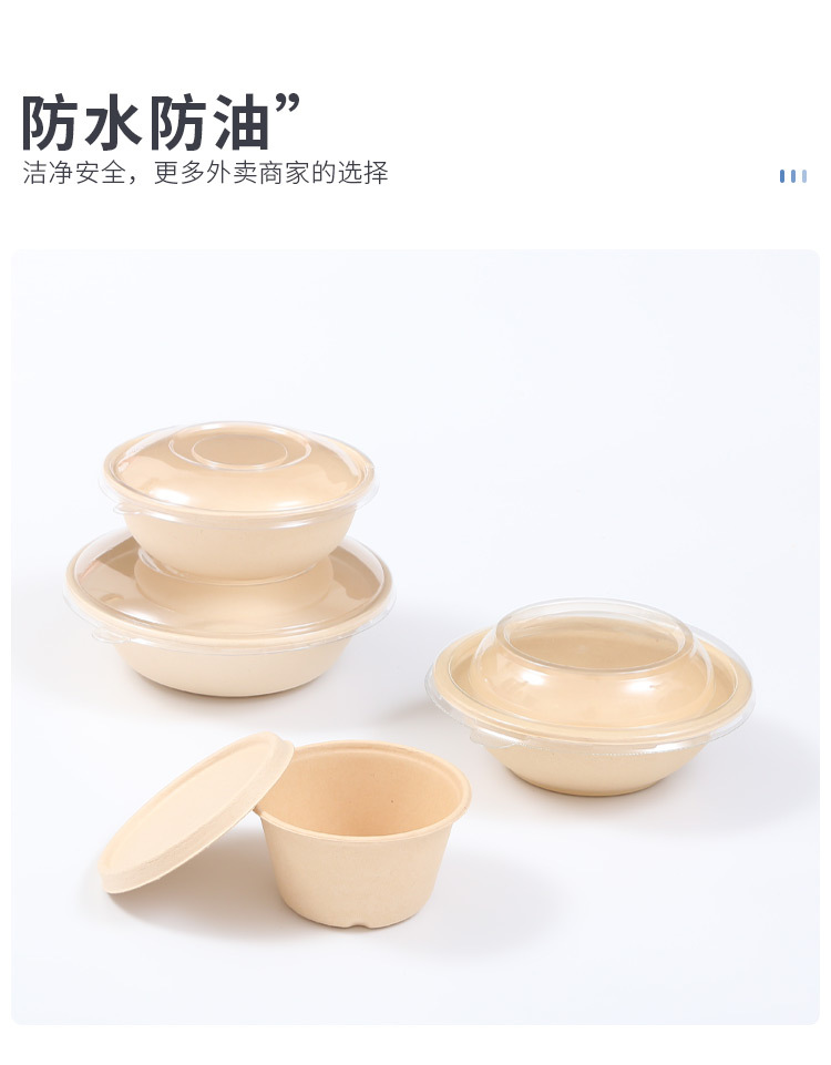 圆形纸浆餐盒一次性餐盒轻食餐健身餐可降解外卖沙拉盒打包碗