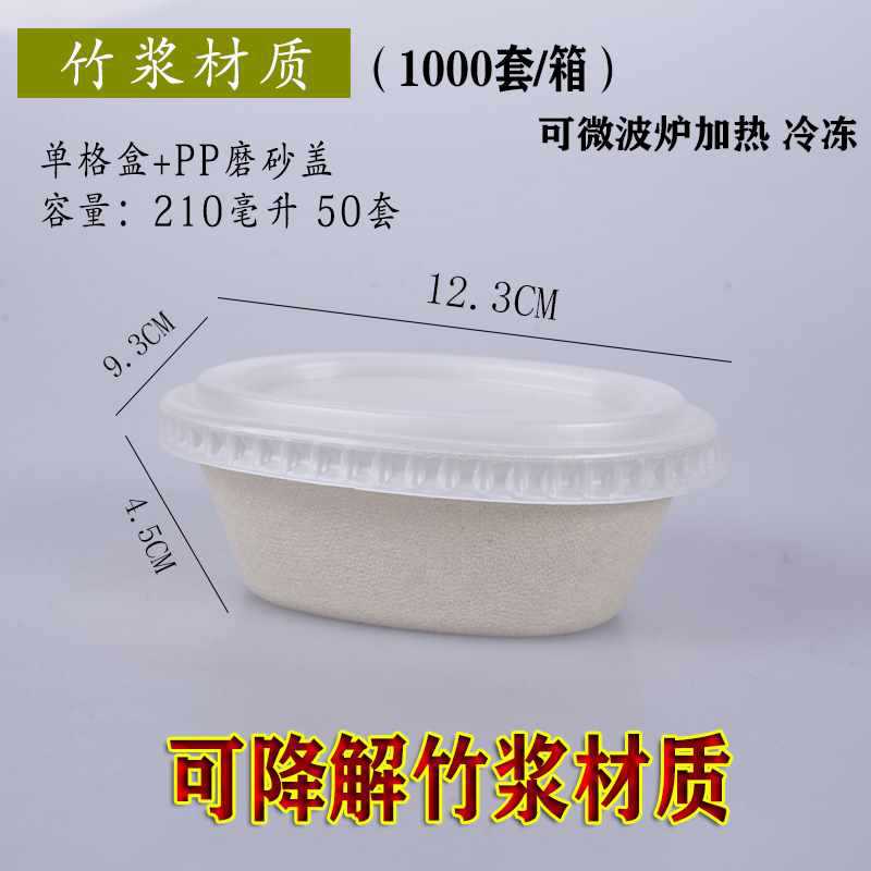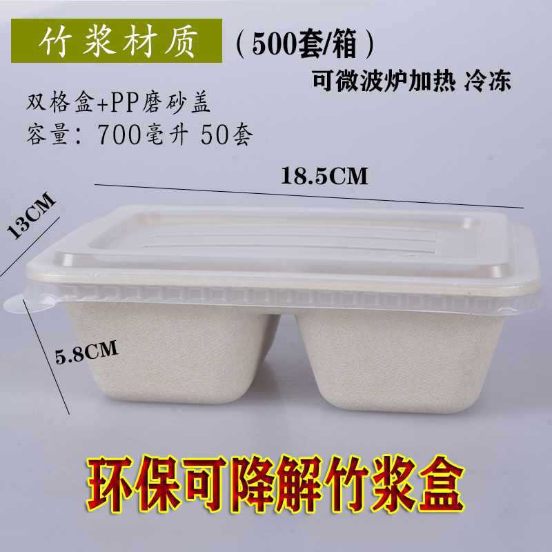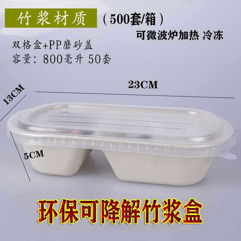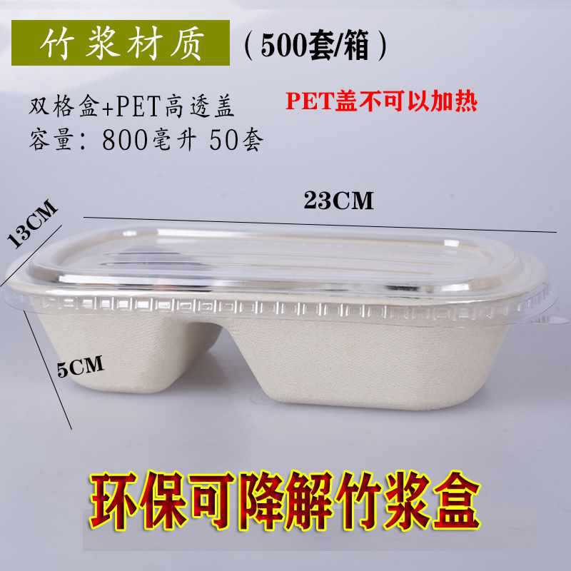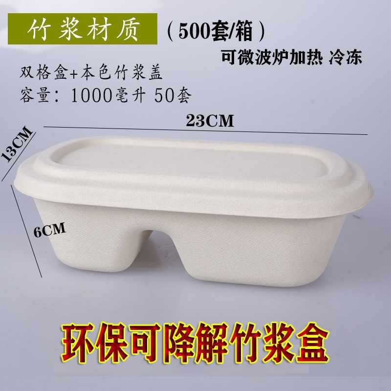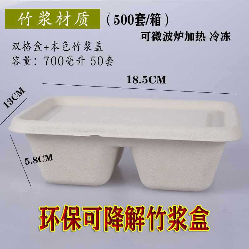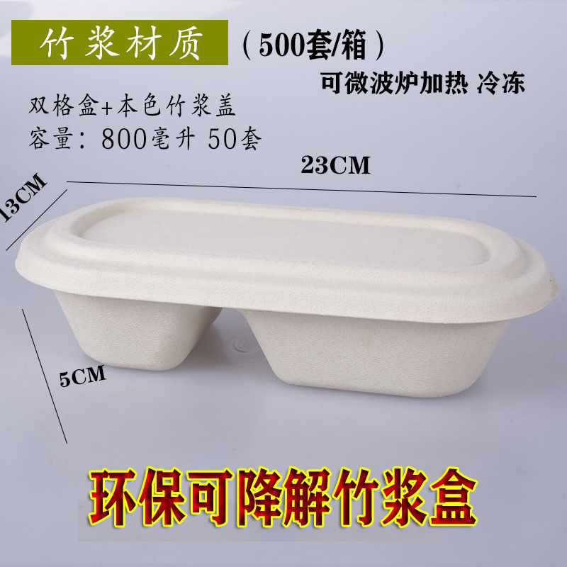 一次性竹浆餐盒打包盒可降解纸浆快餐外卖双格创意健身沙拉盒
