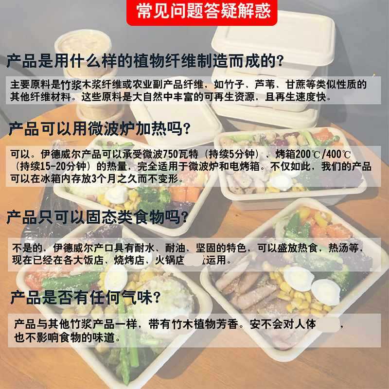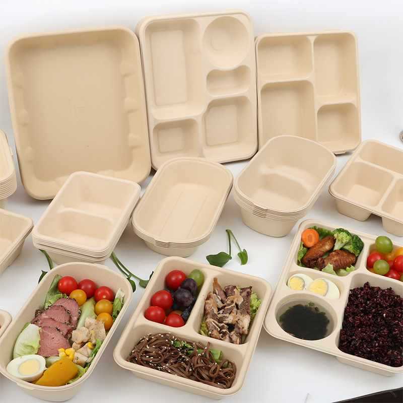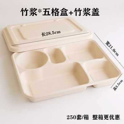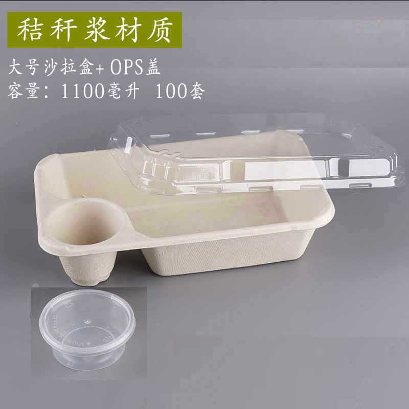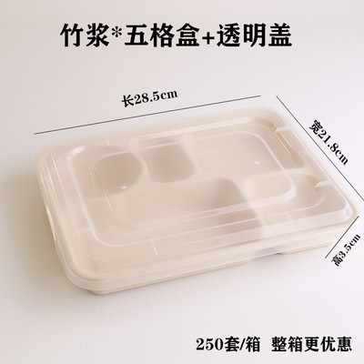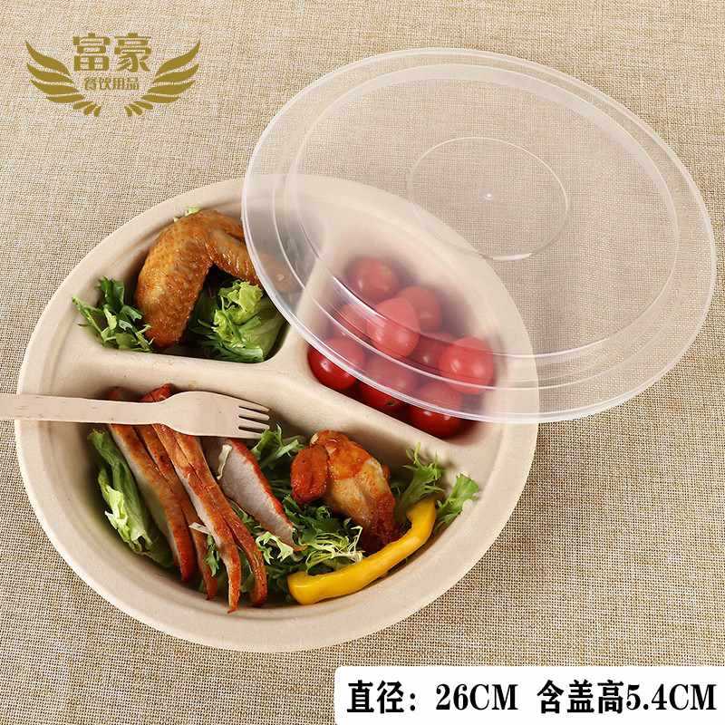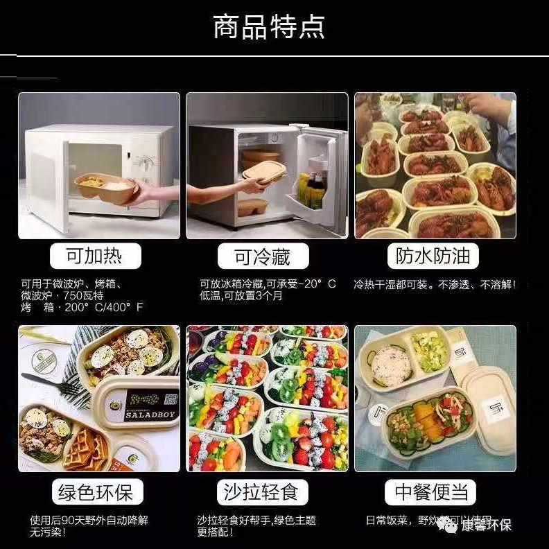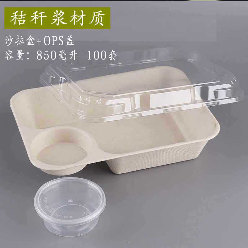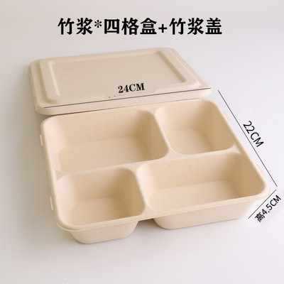 一次性竹浆餐盒打包盒可降解纸浆快餐外卖双格创意健身沙拉盒