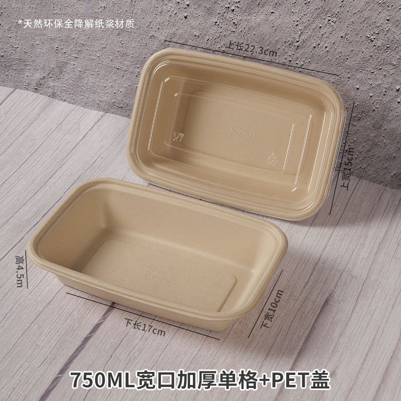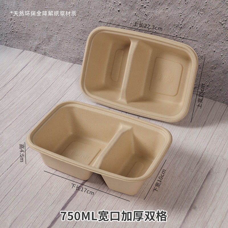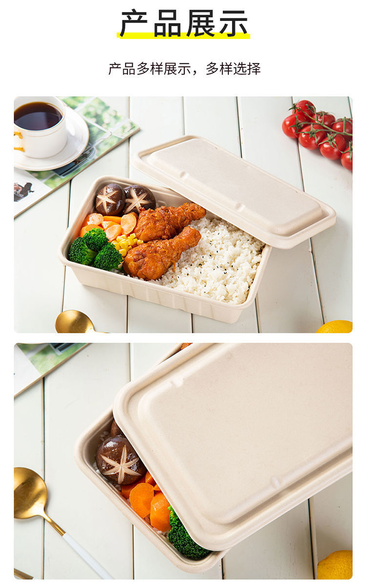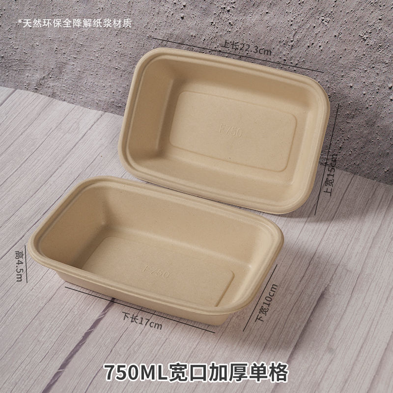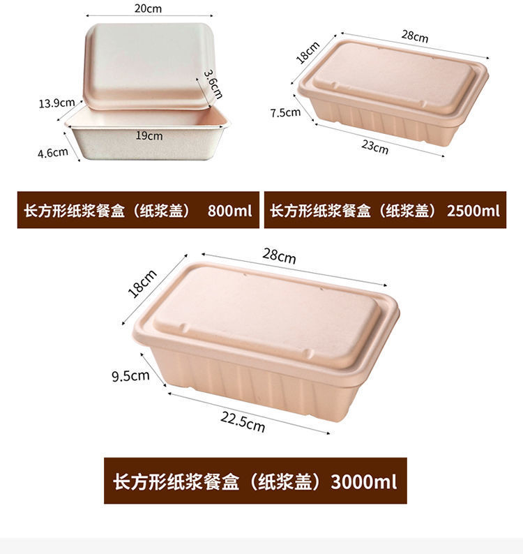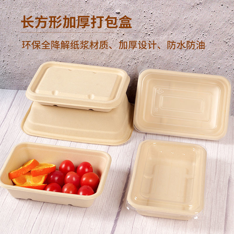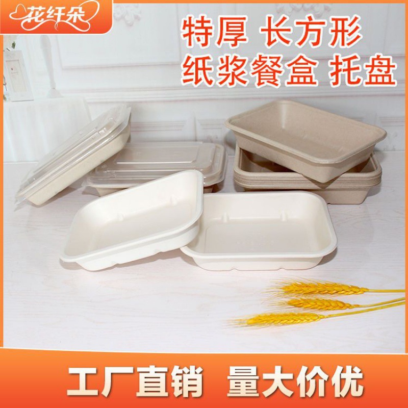 外卖餐盒 环保纸浆可降解材料长方形打包商用一次性西饭托盘代发