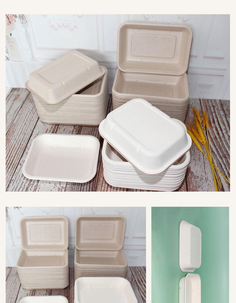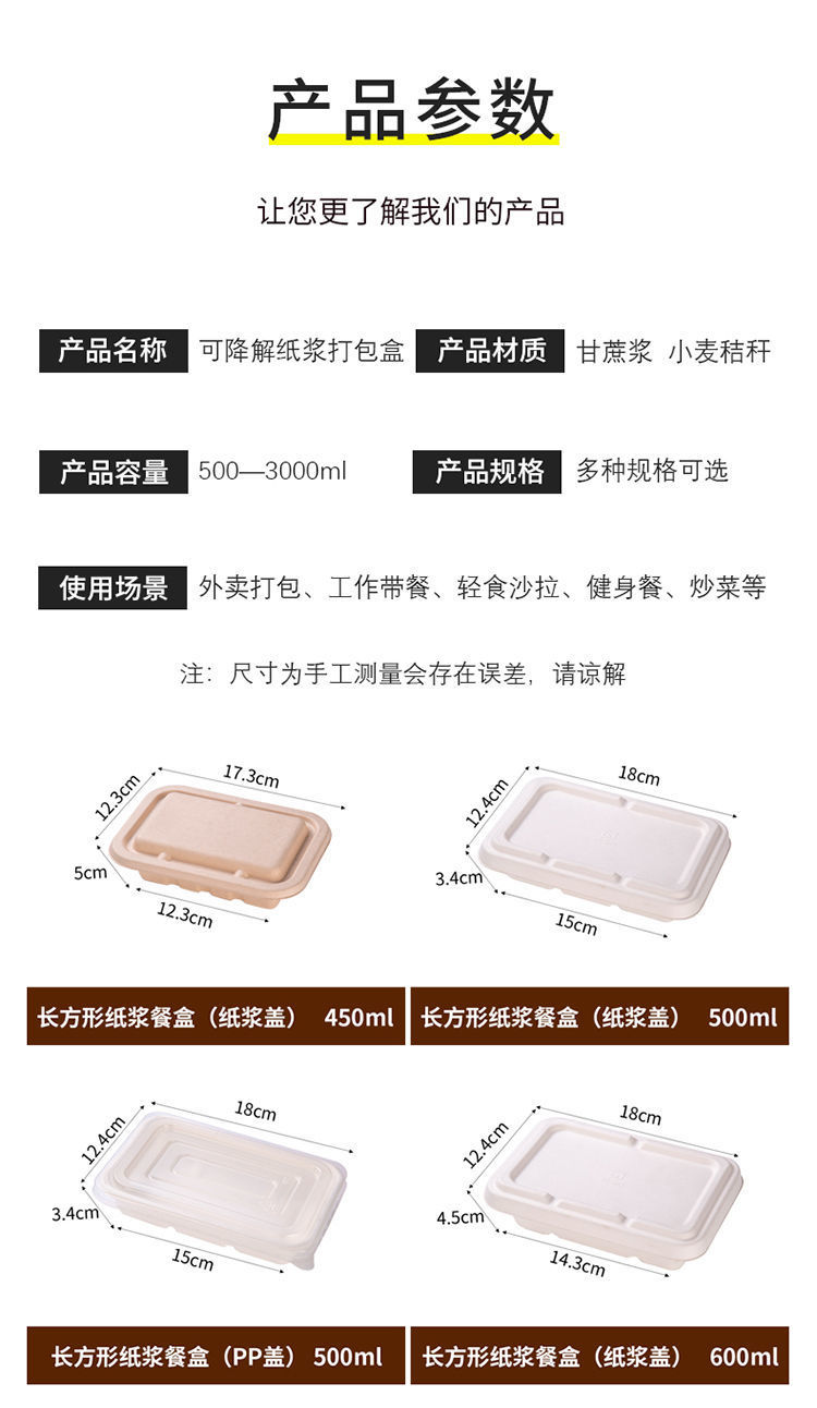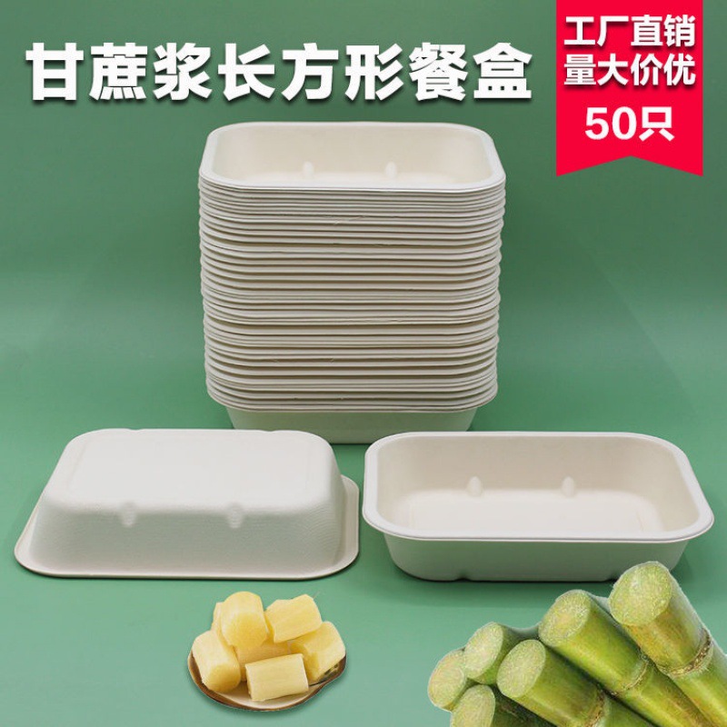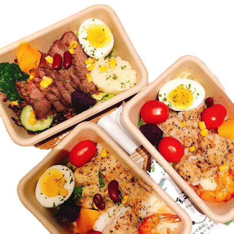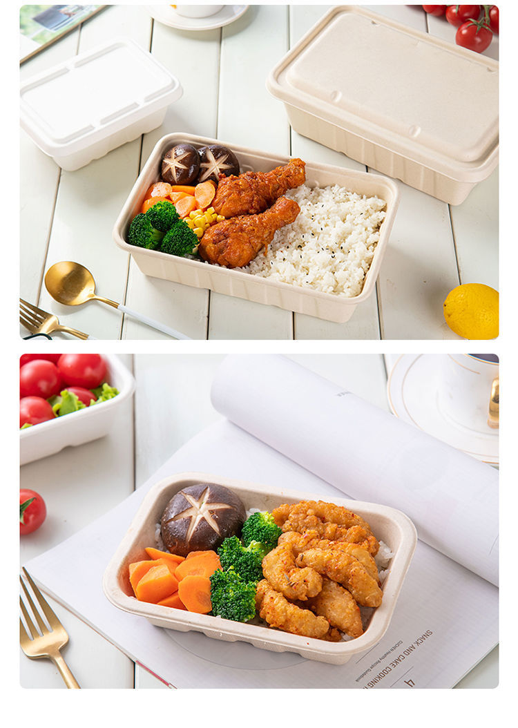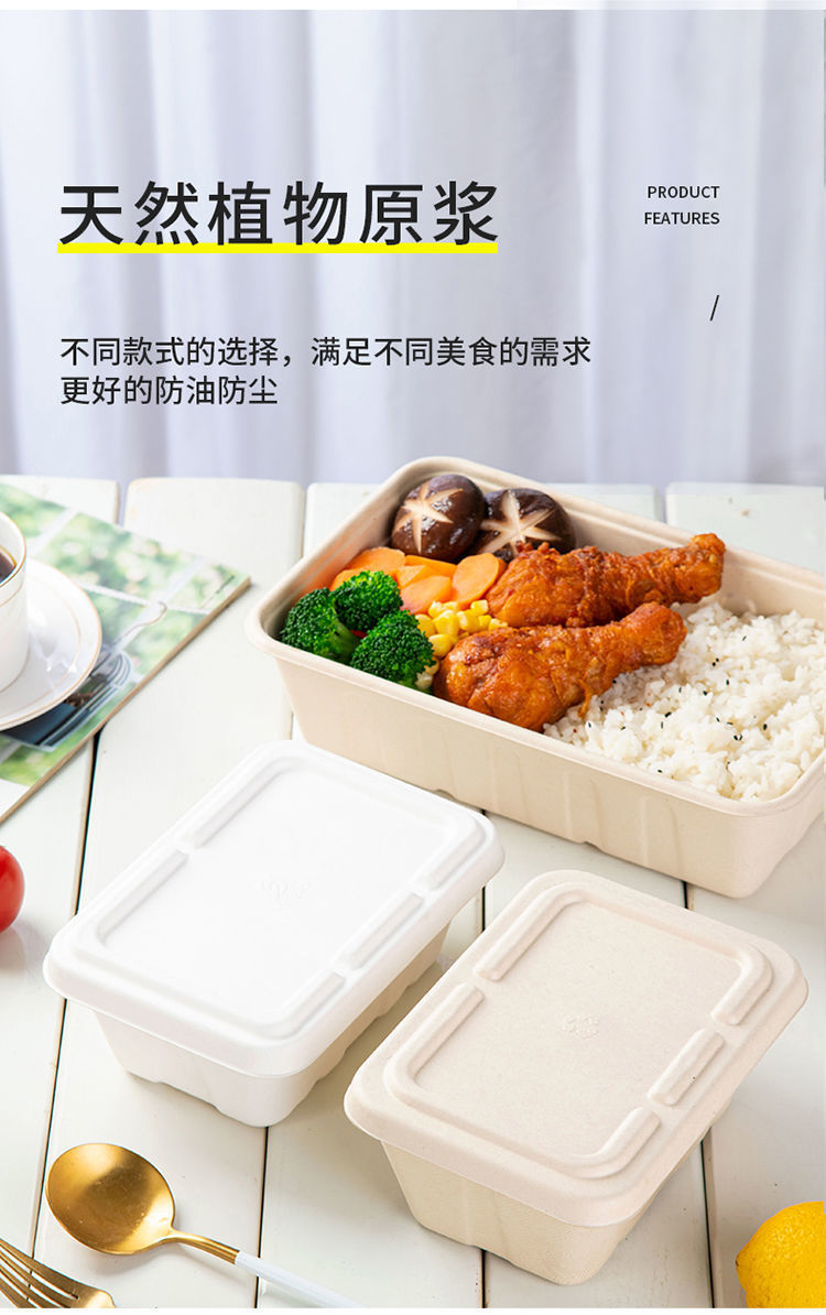 外卖餐盒 环保纸浆可降解材料长方形打包商用一次性西饭托盘代发