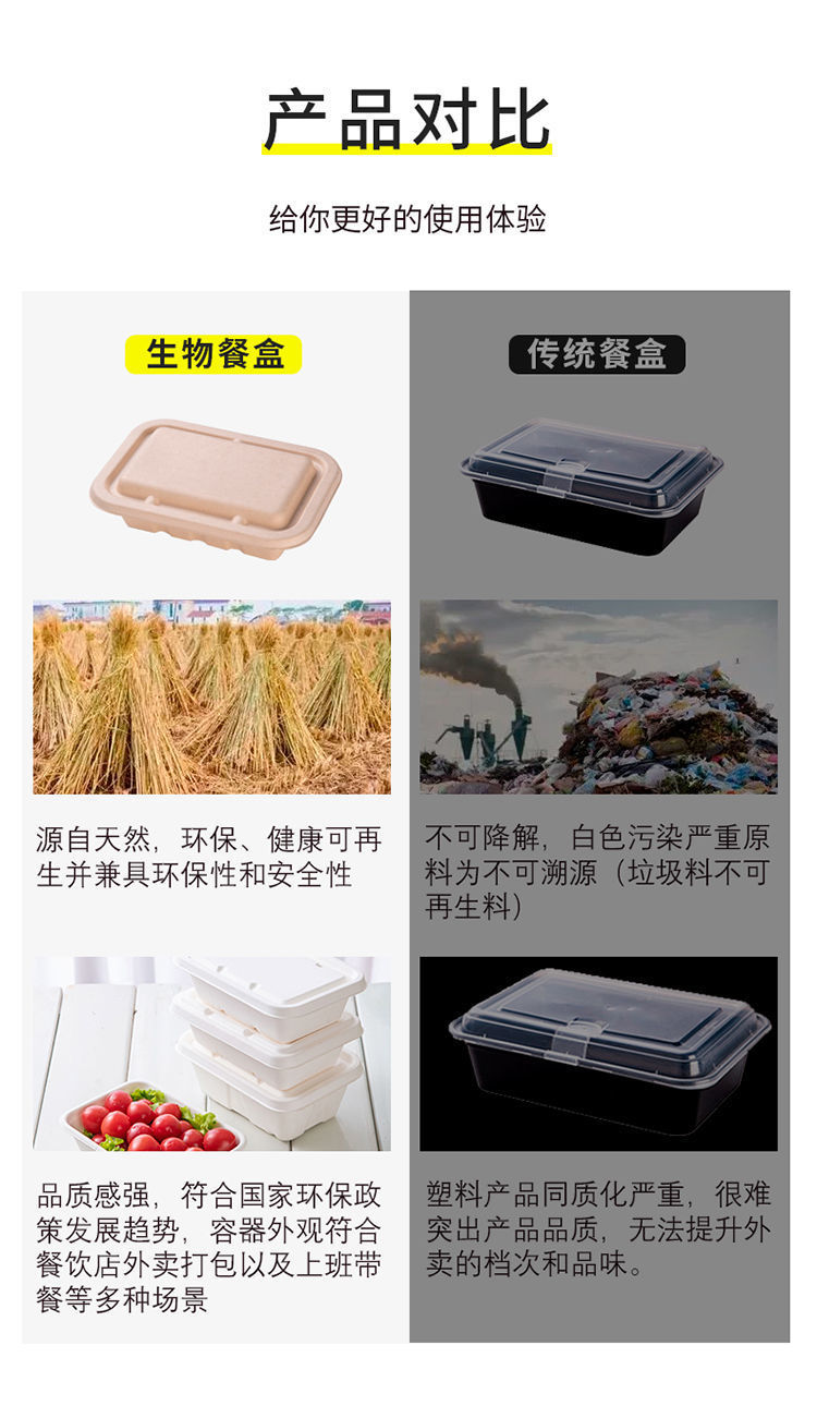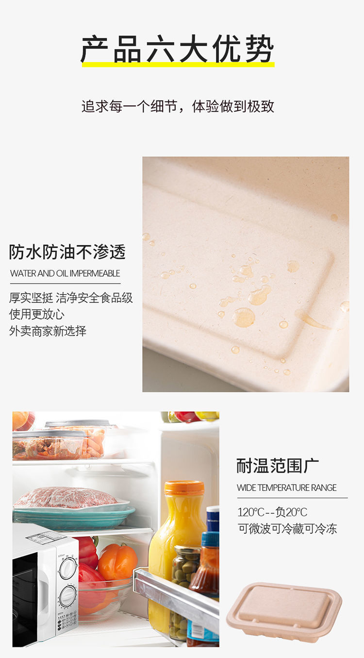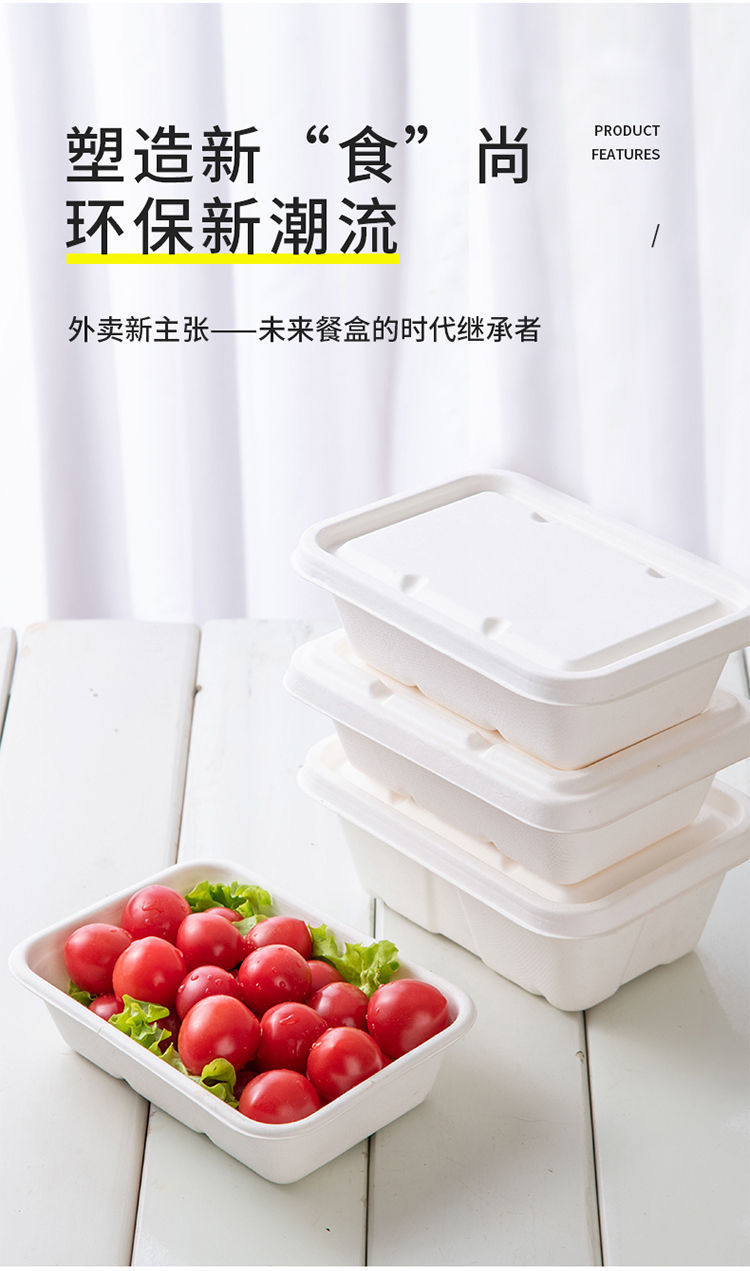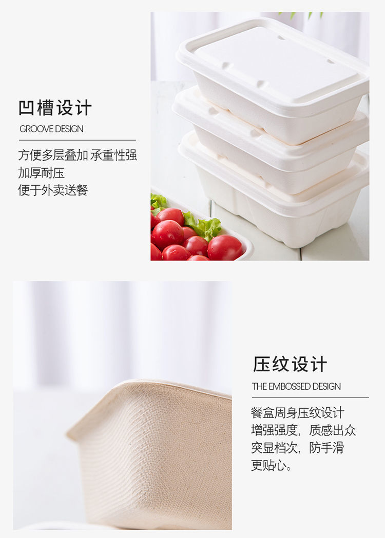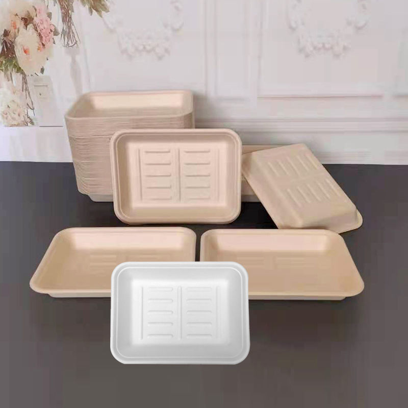 外卖餐盒 环保纸浆可降解材料长方形打包商用一次性西饭托盘代发