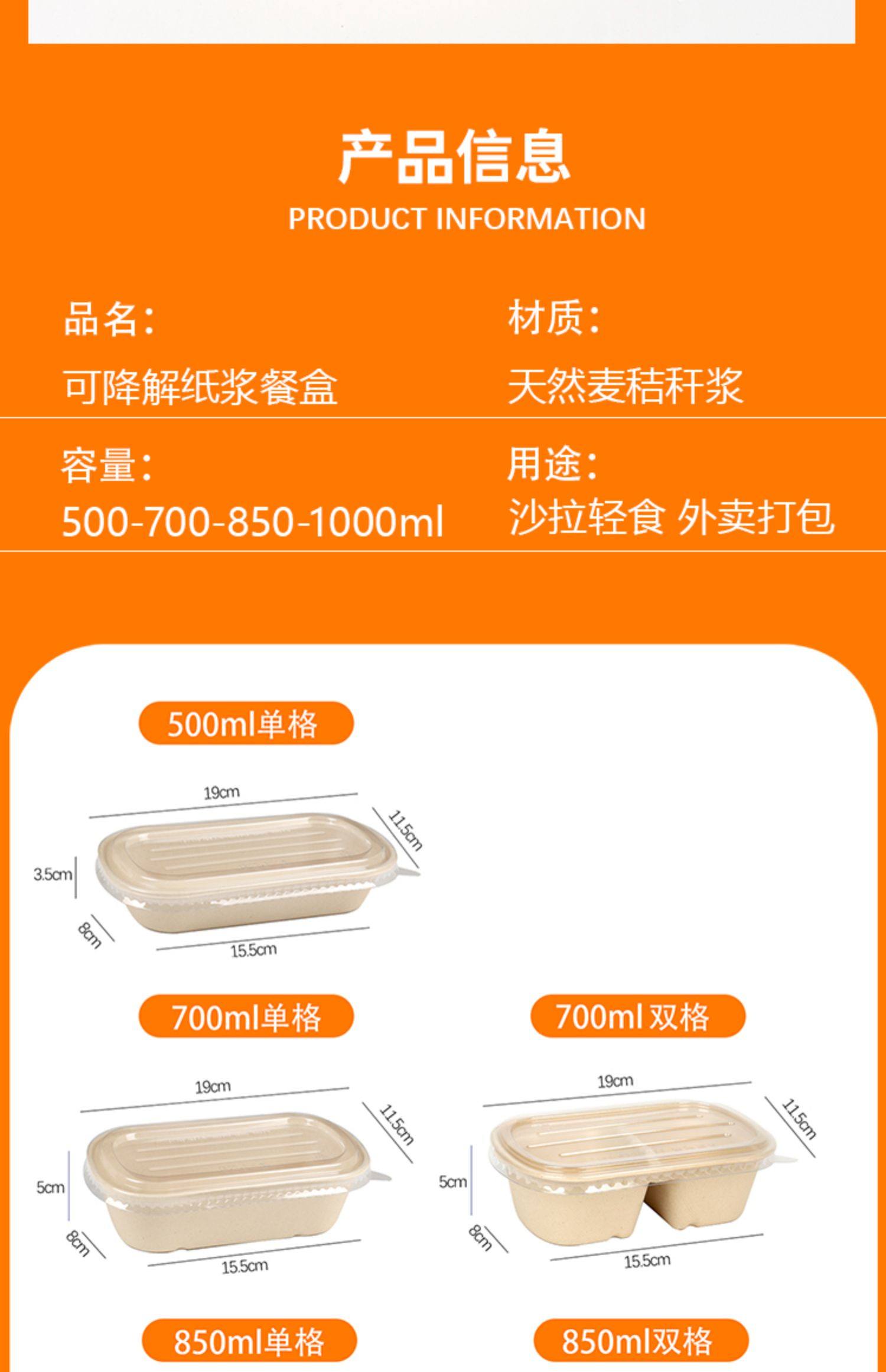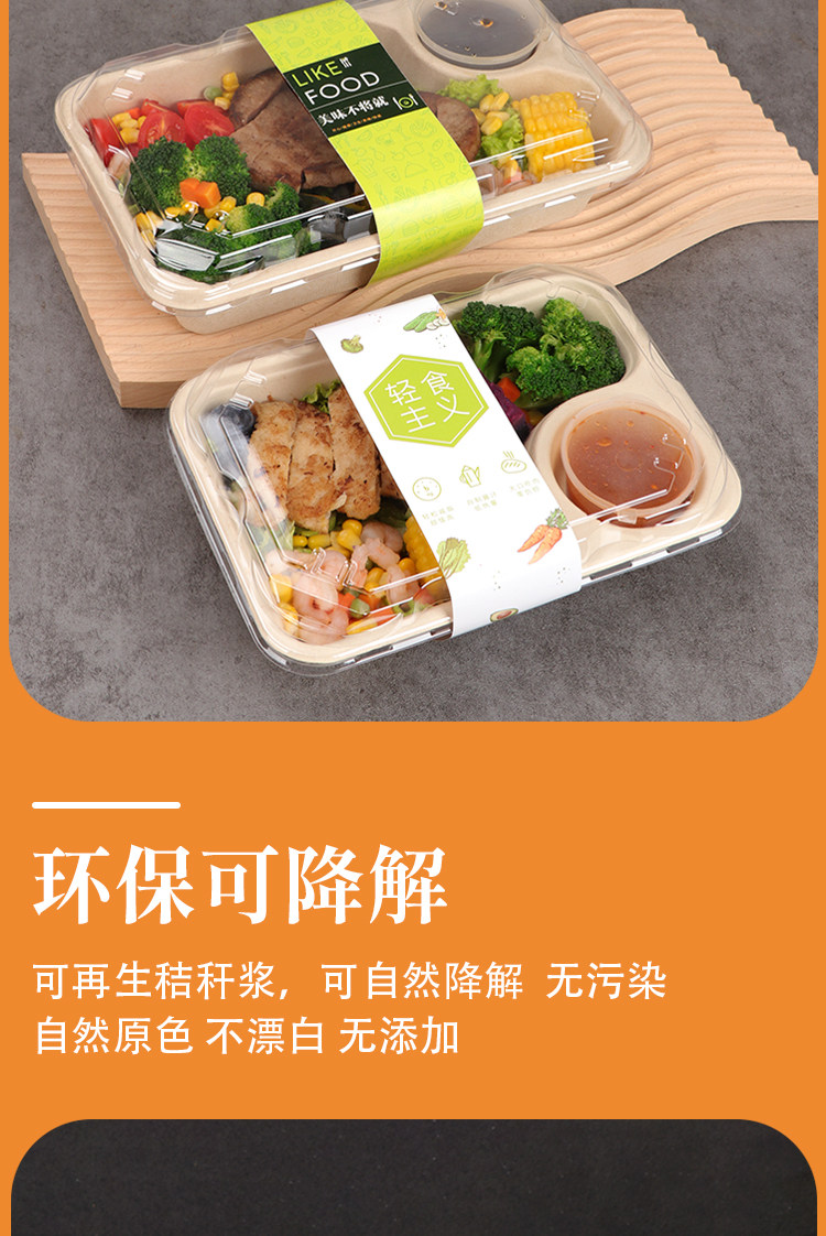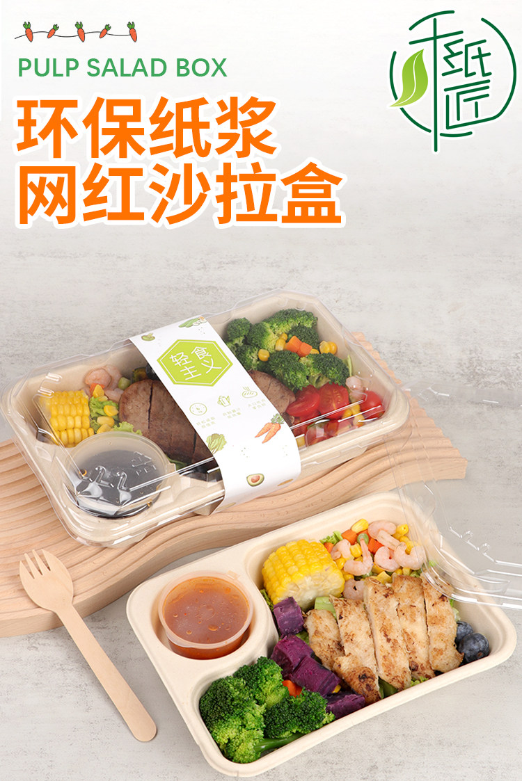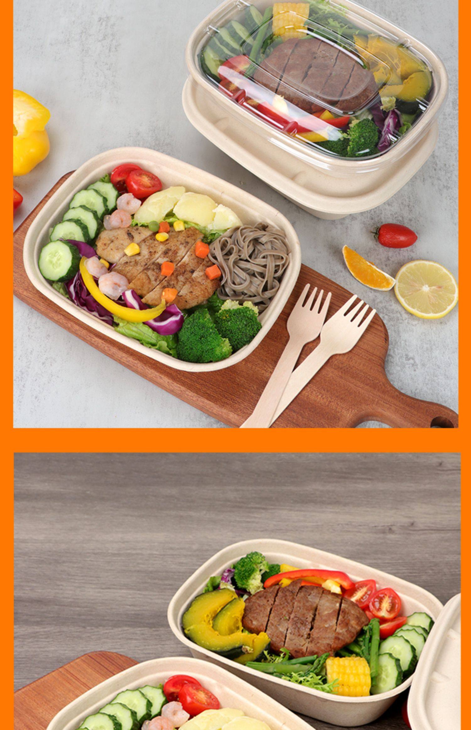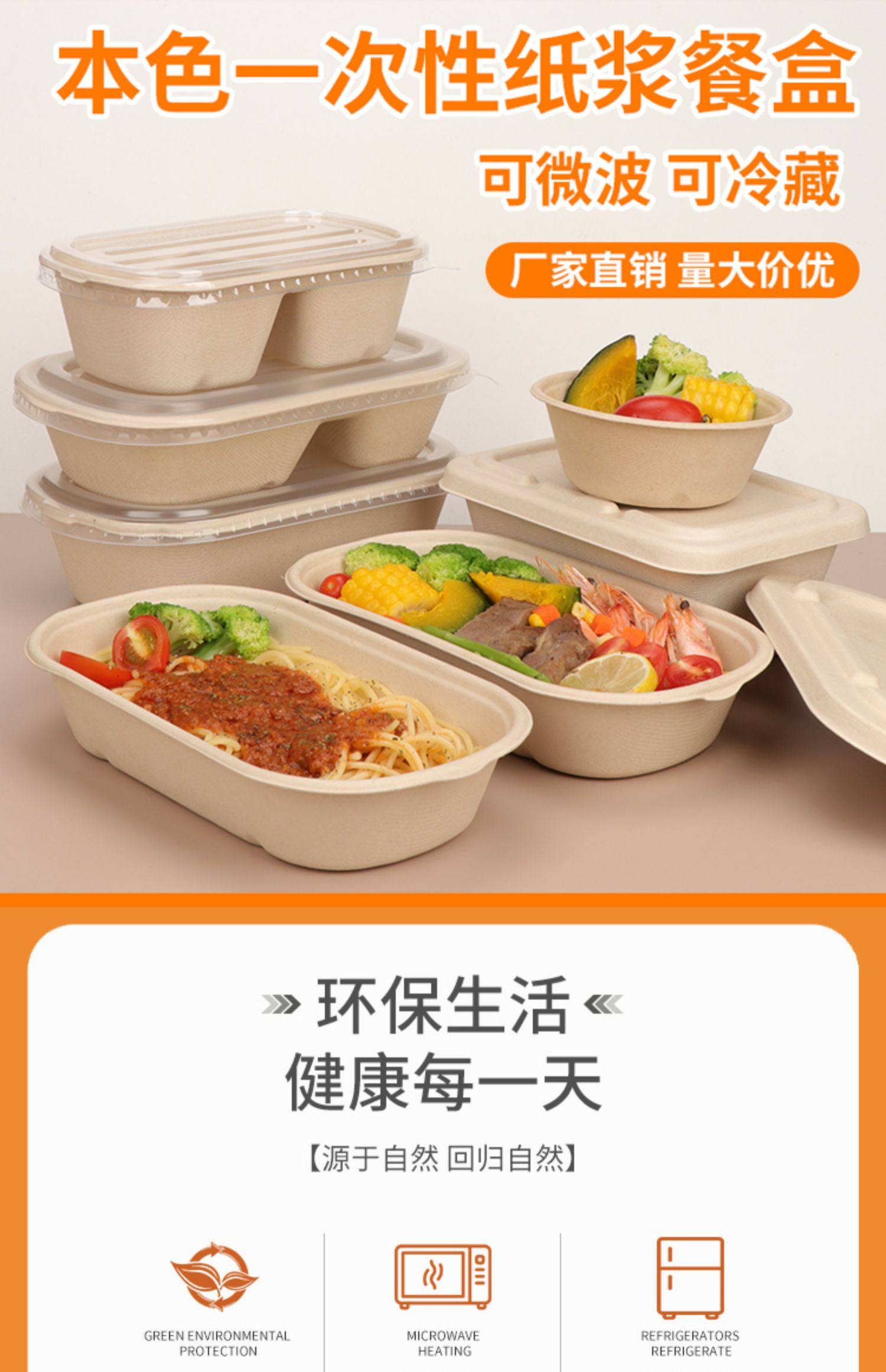 可降解一次性纸浆餐盒沙拉盒轻食打包盒长方形饭盒环保外卖便当盒