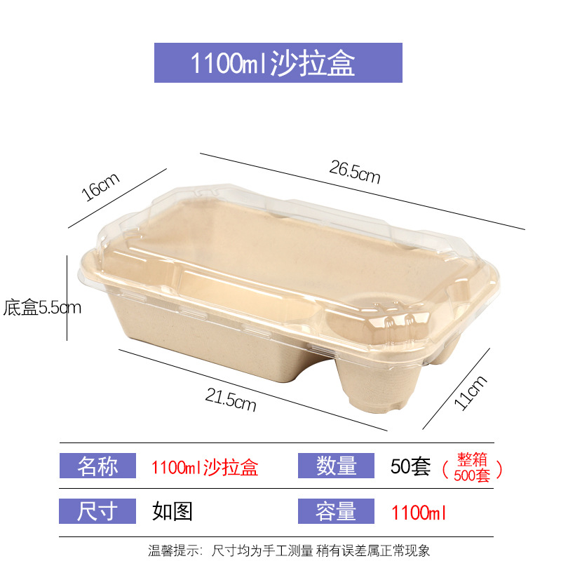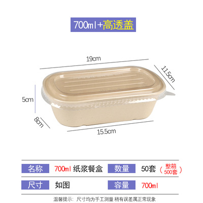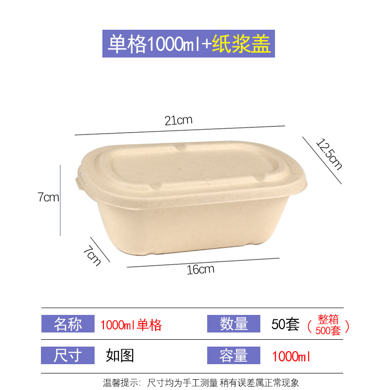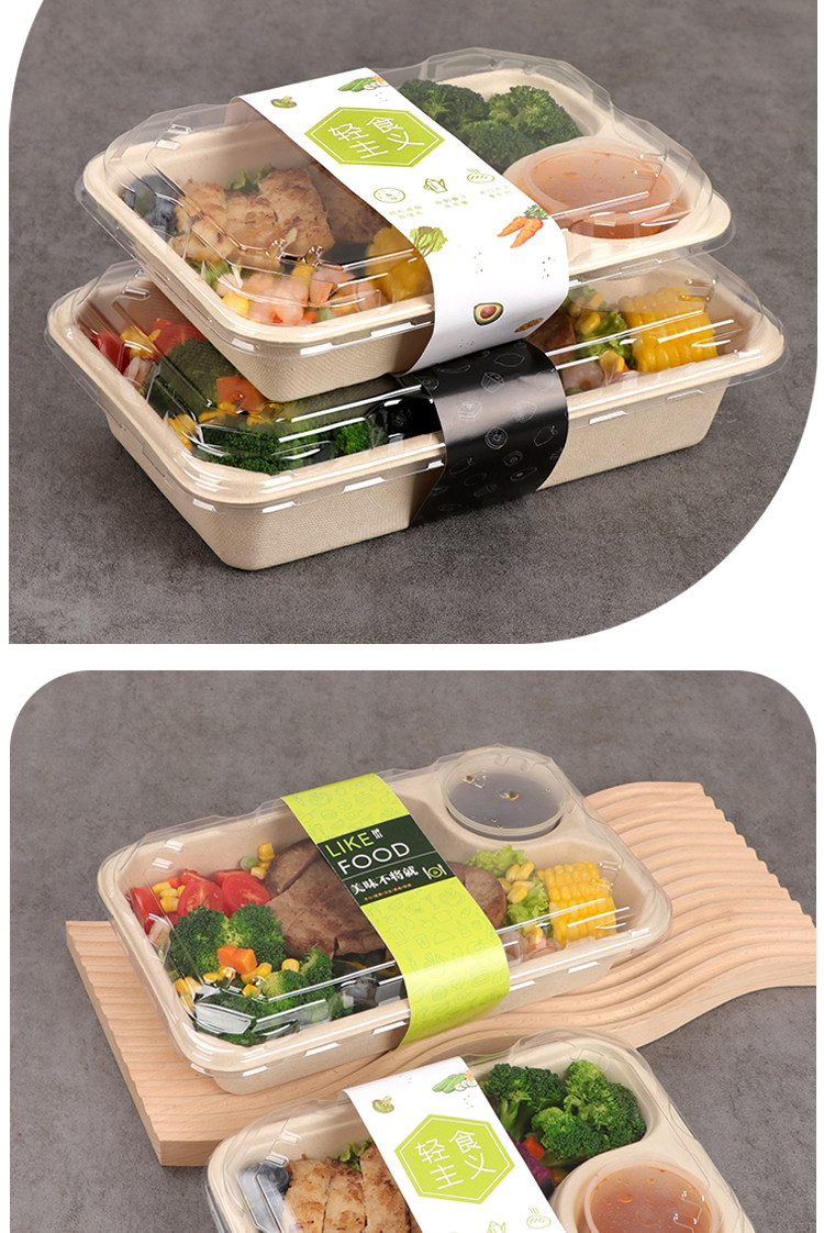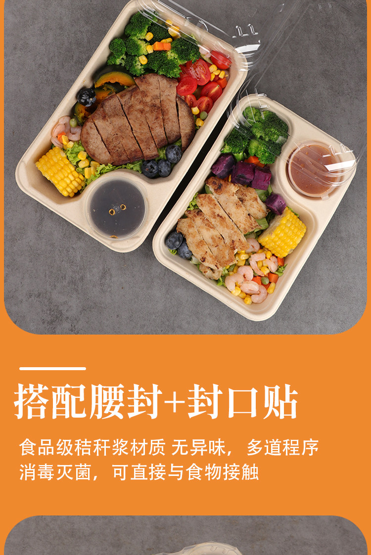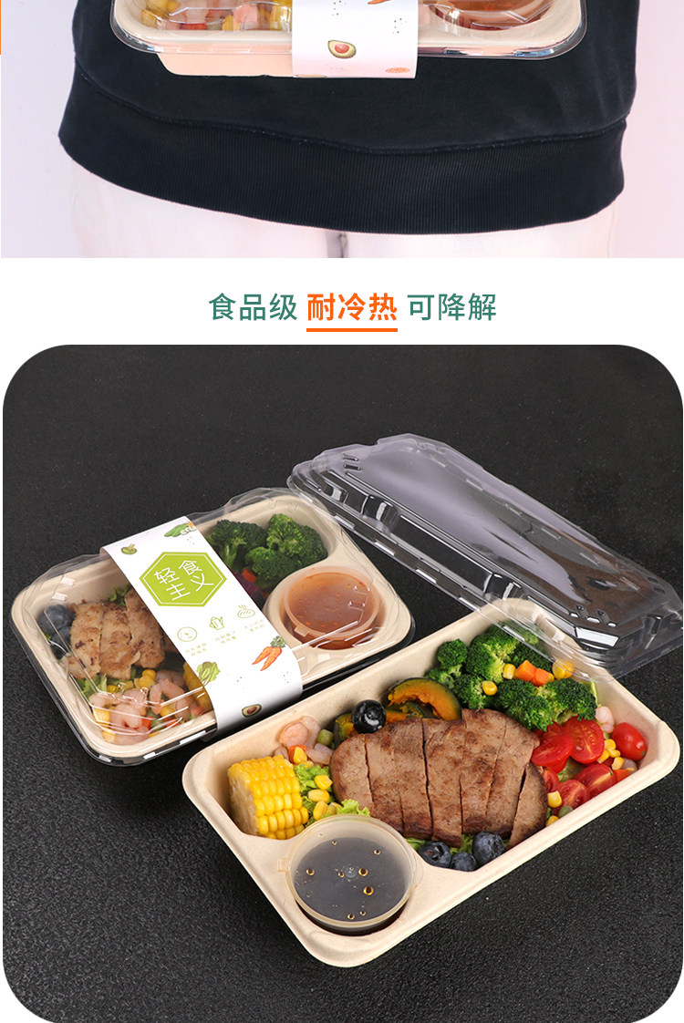 可降解一次性纸浆餐盒沙拉盒轻食打包盒长方形饭盒环保外卖便当盒