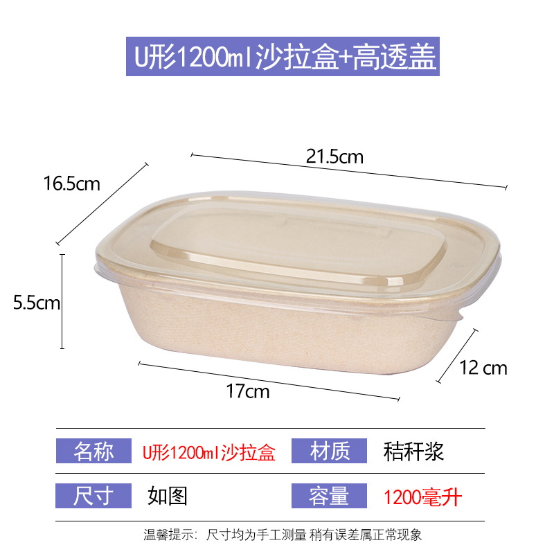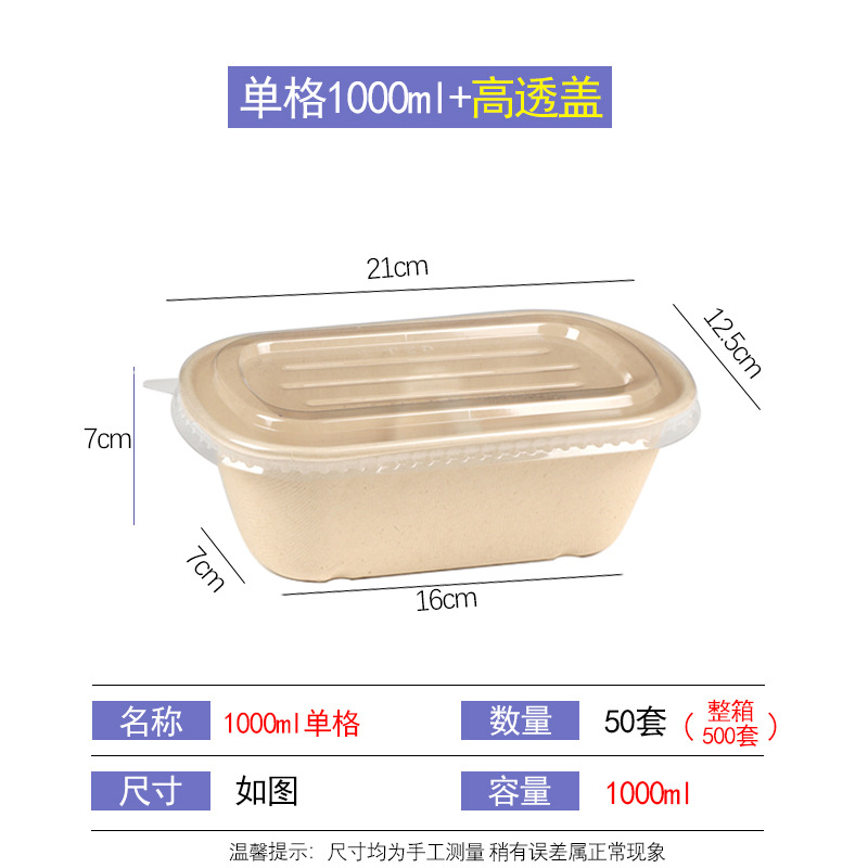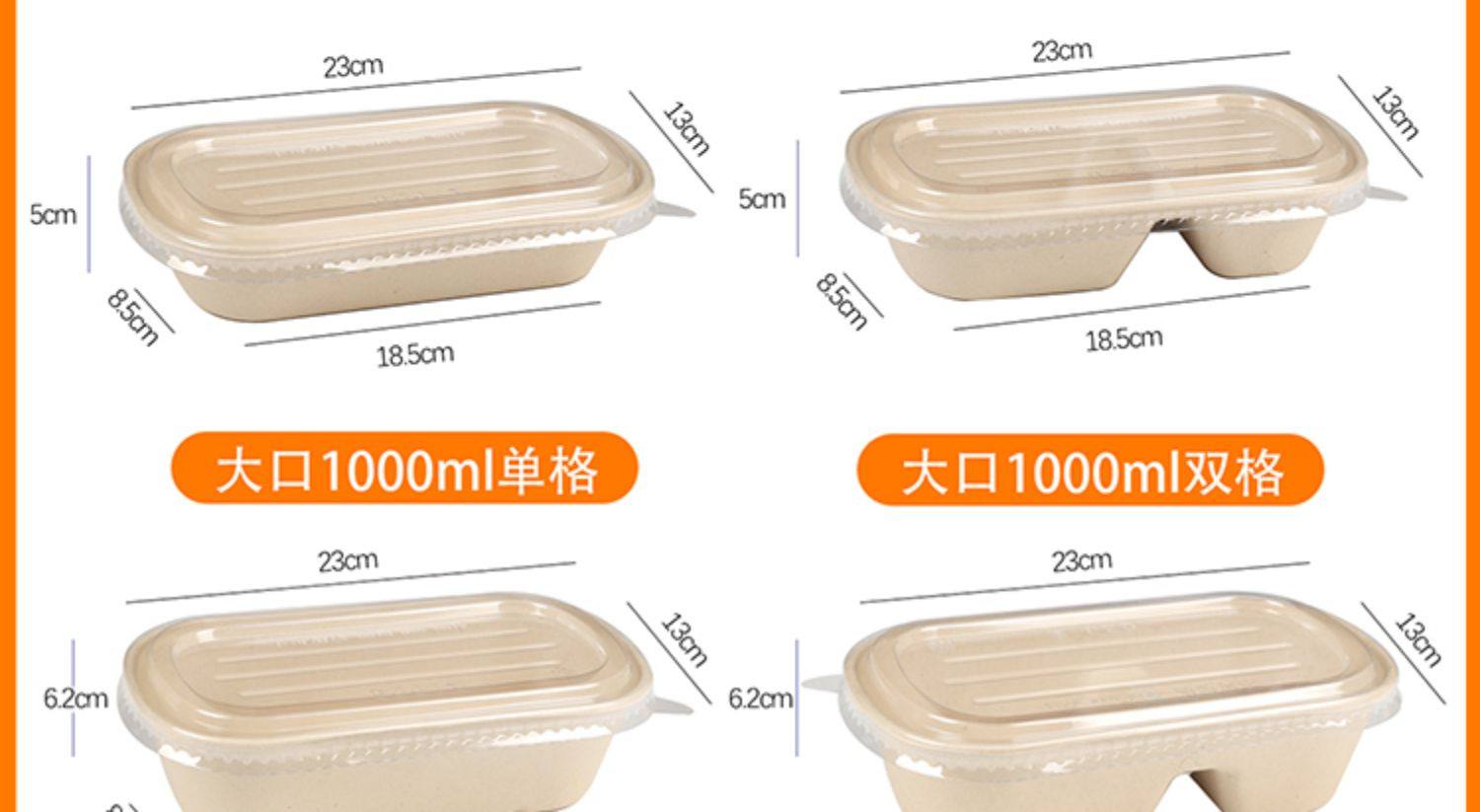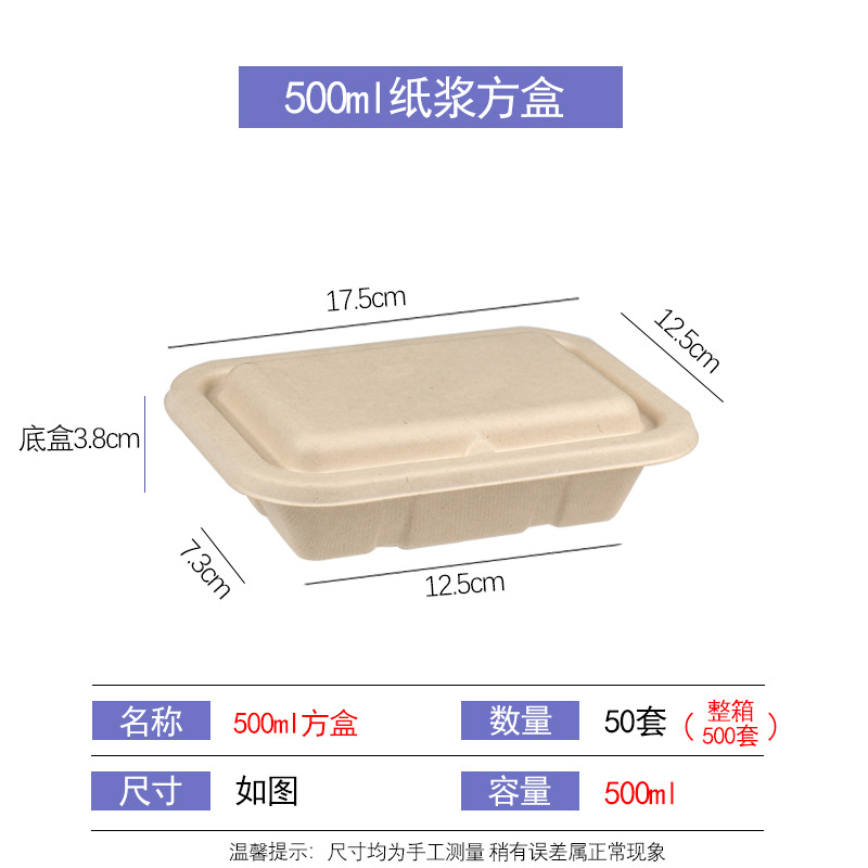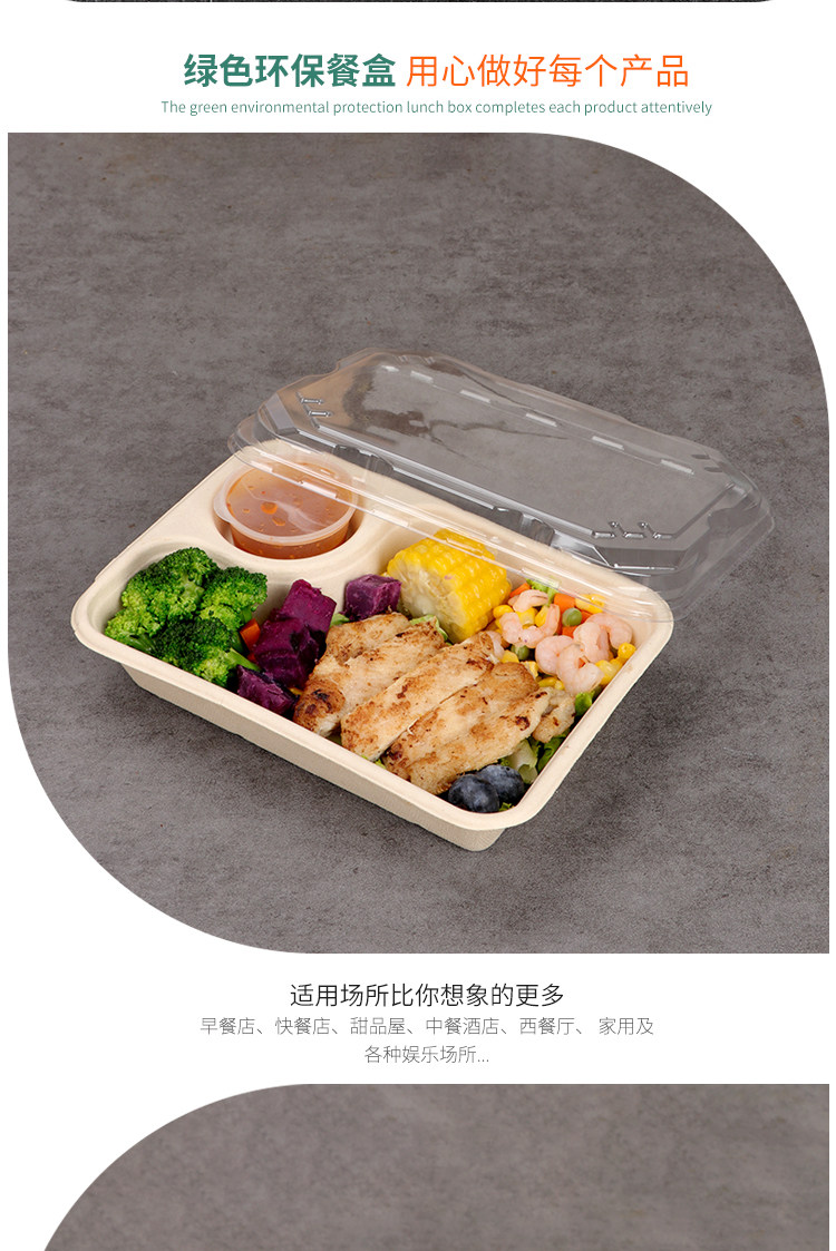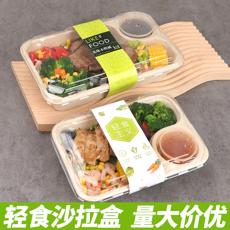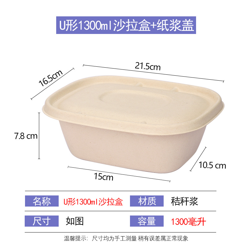 可降解一次性纸浆餐盒沙拉盒轻食打包盒长方形饭盒环保外卖便当盒