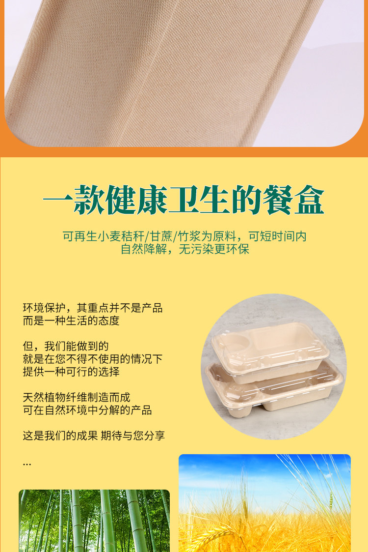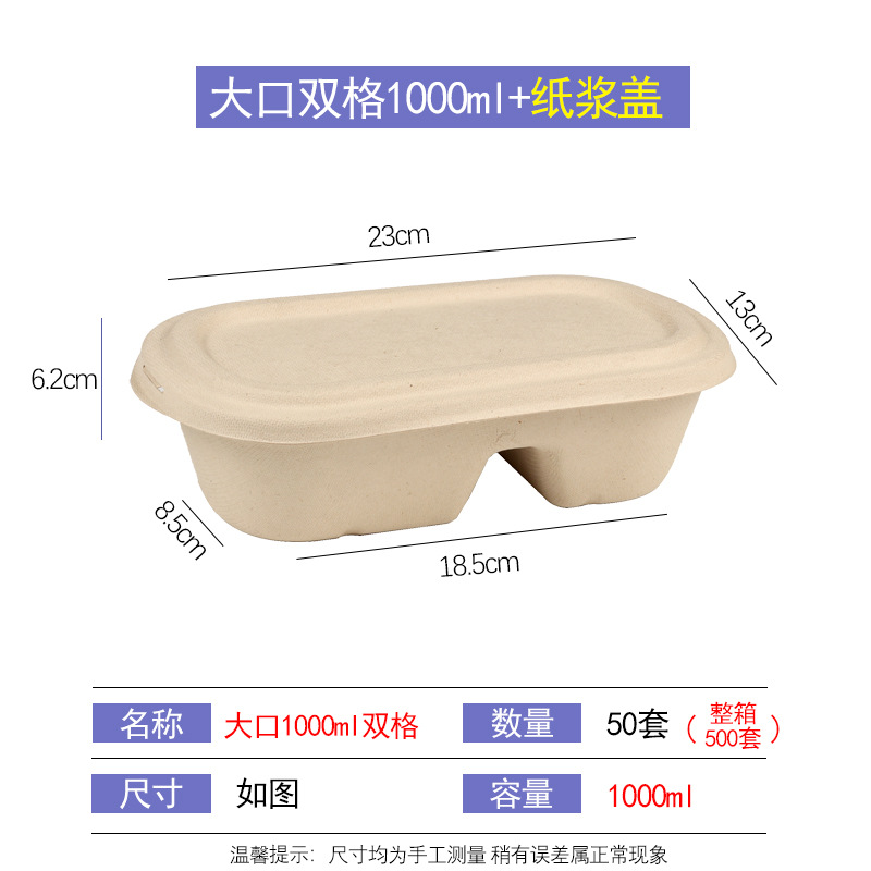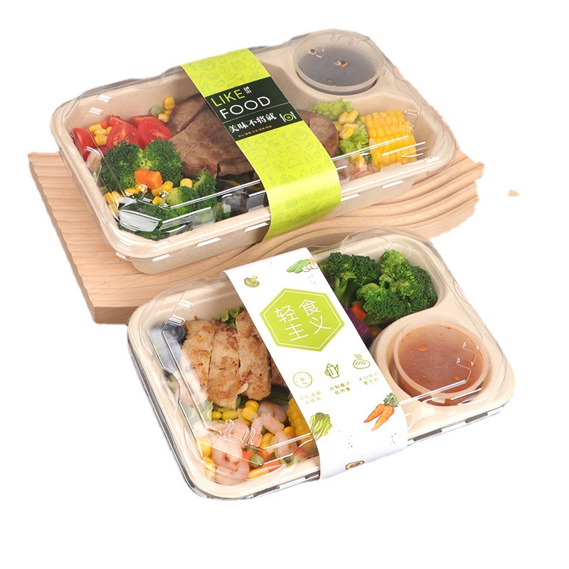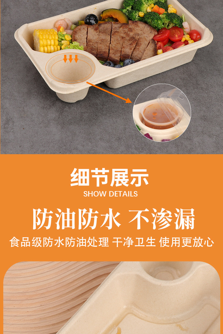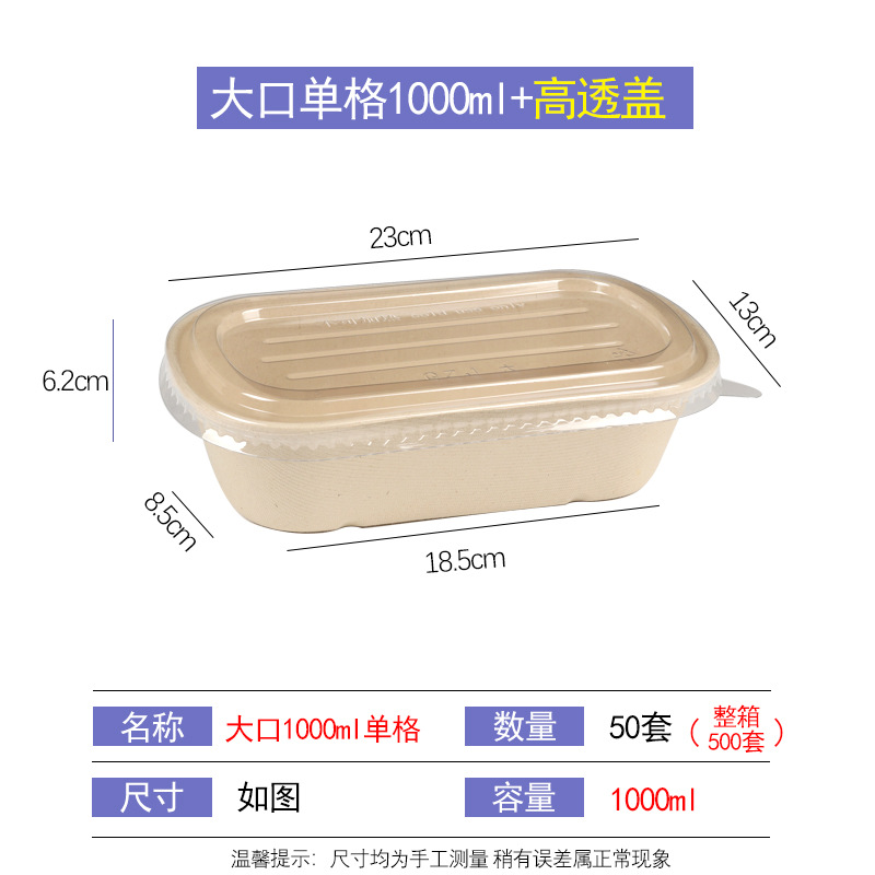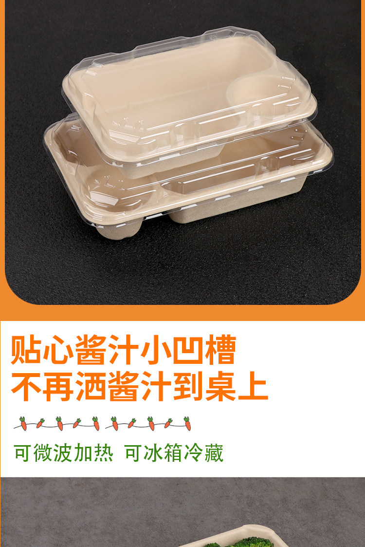 可降解一次性纸浆餐盒沙拉盒轻食打包盒长方形饭盒环保外卖便当盒