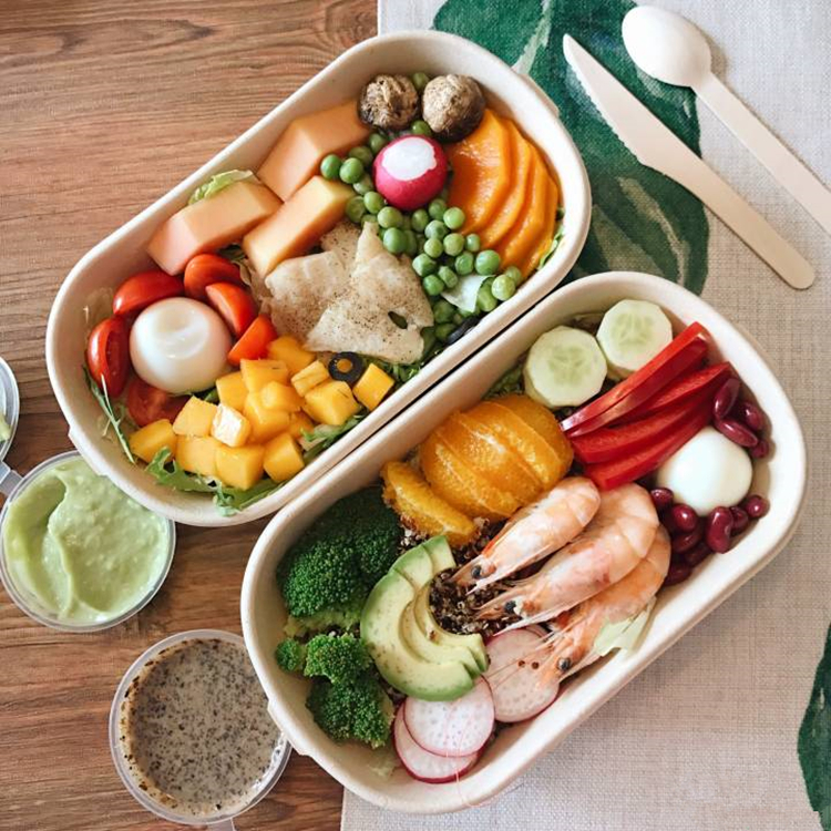一次性纸浆餐盒沙拉盒子环保可降解饭盒寿司盒轻食健身外卖打包盒