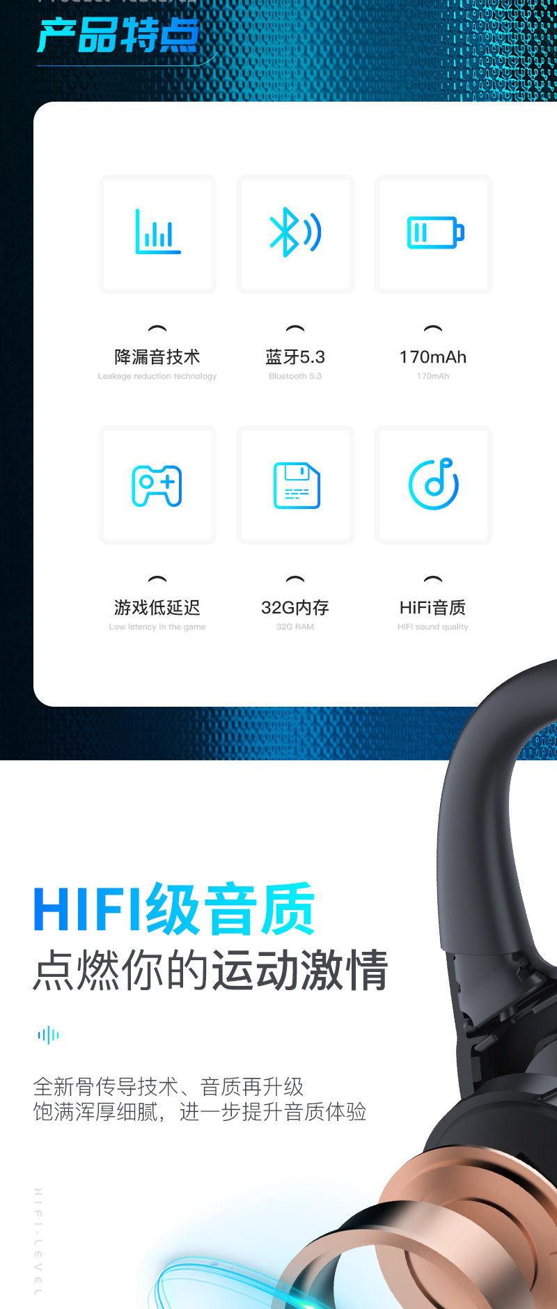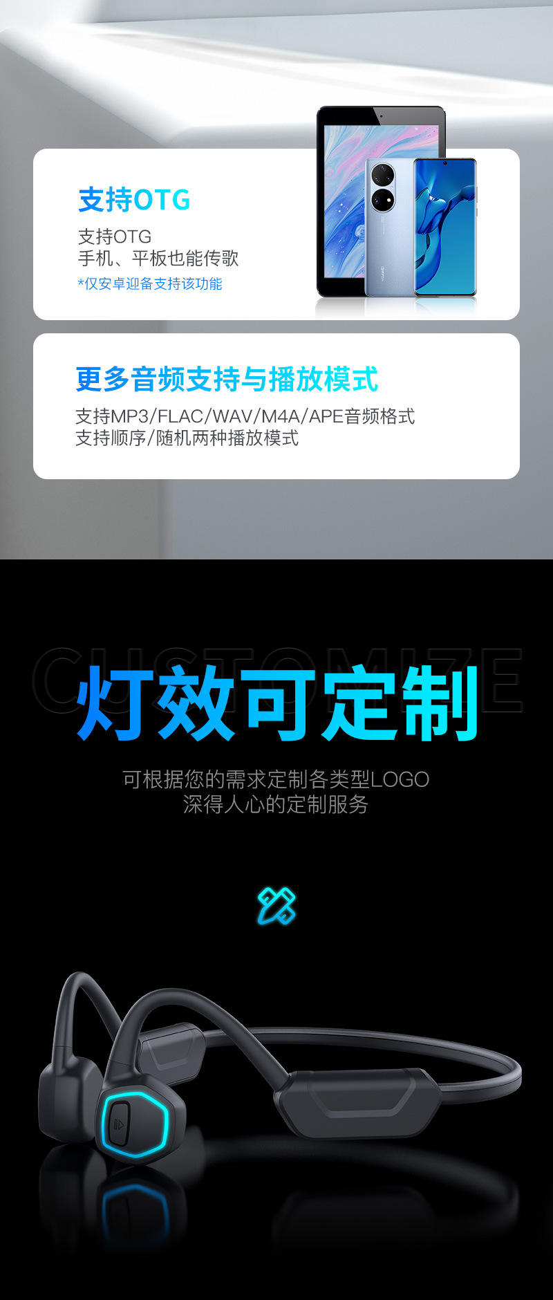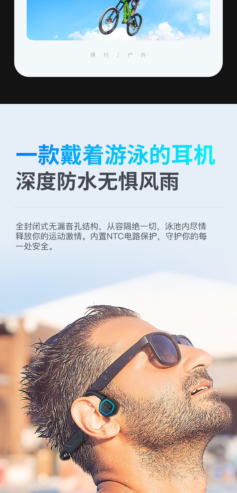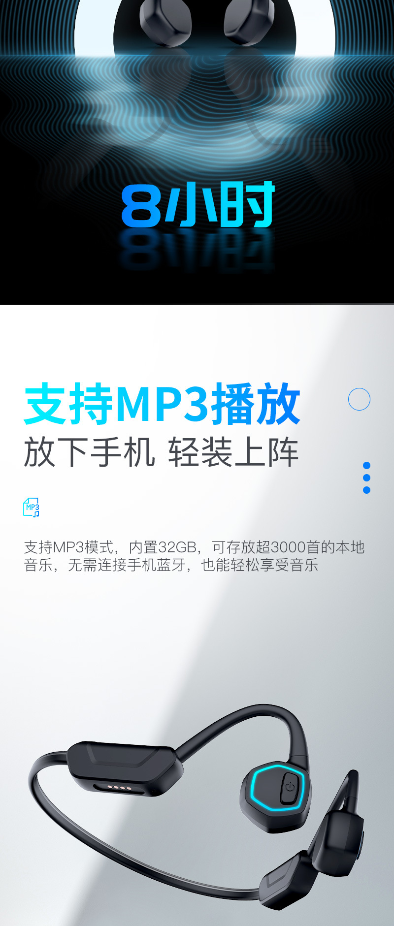 新款骨传导耳机无线蓝牙运动跑步游泳IPX8级防水带32G内存不入耳