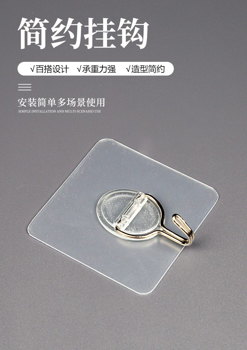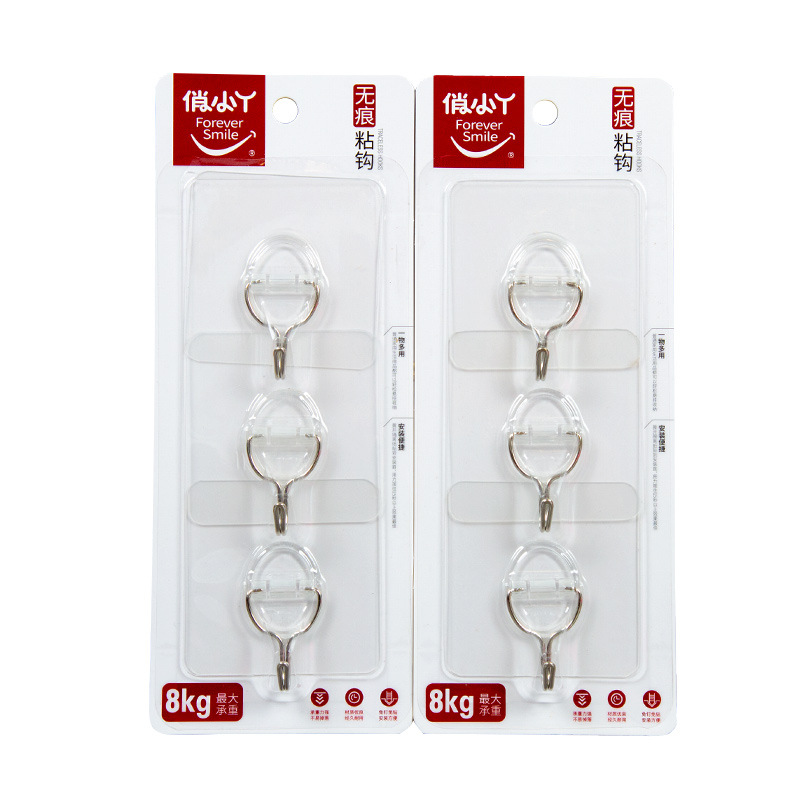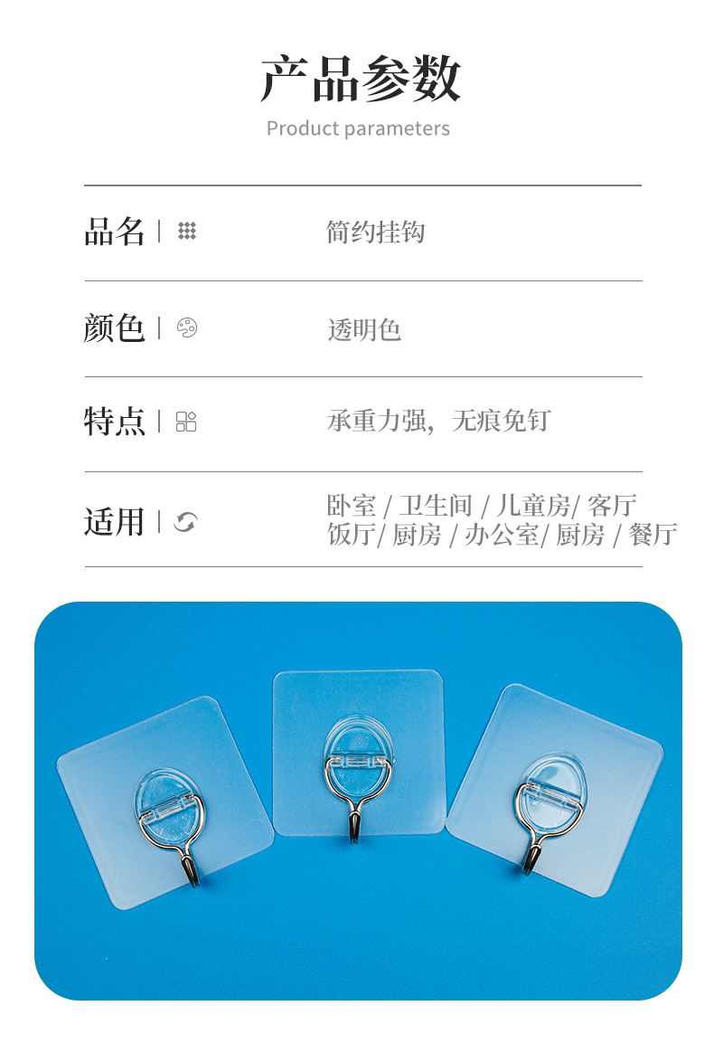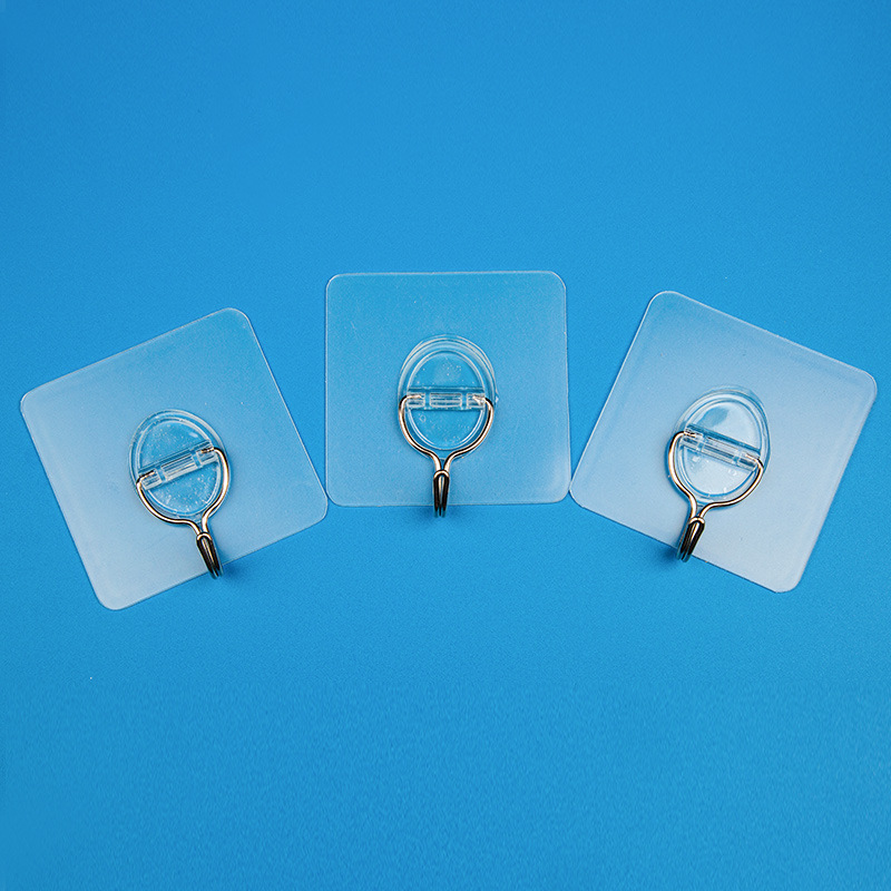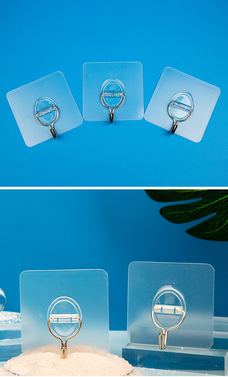 俏小丫新款简约三个装无痕挂钩透明浴室小粘钩免打孔挂钩批发