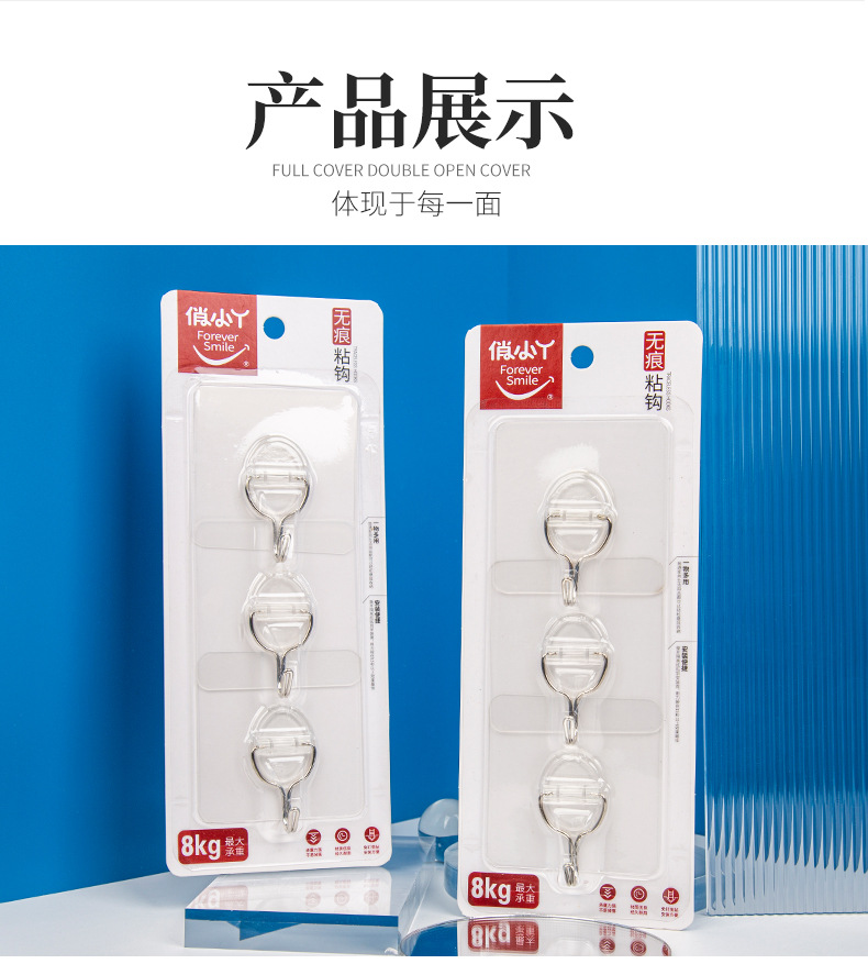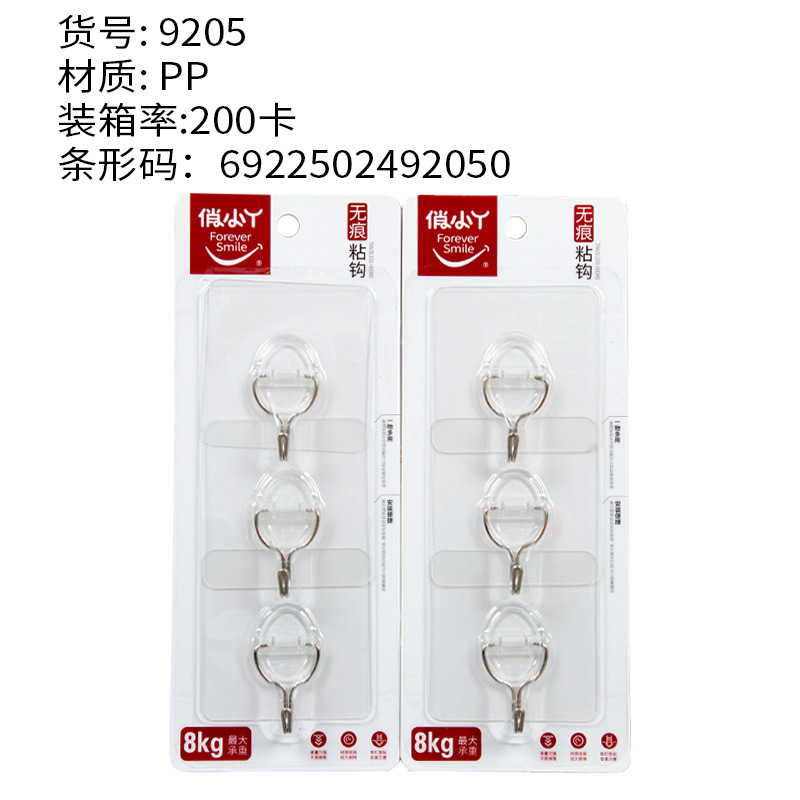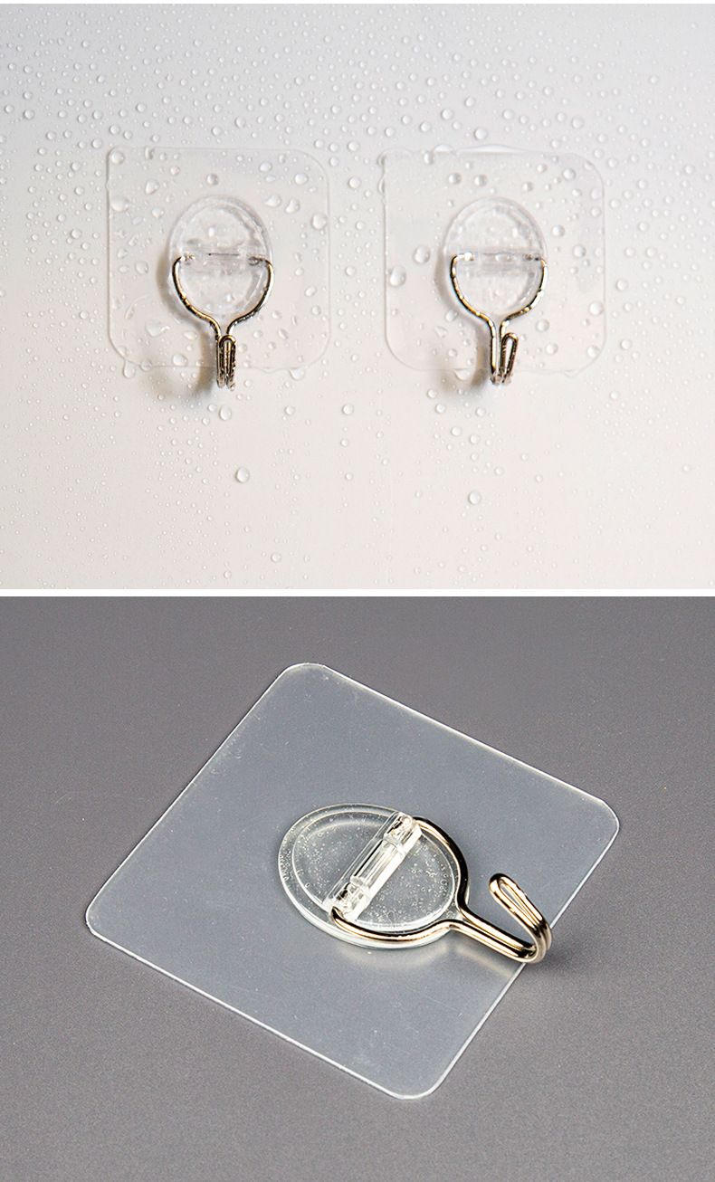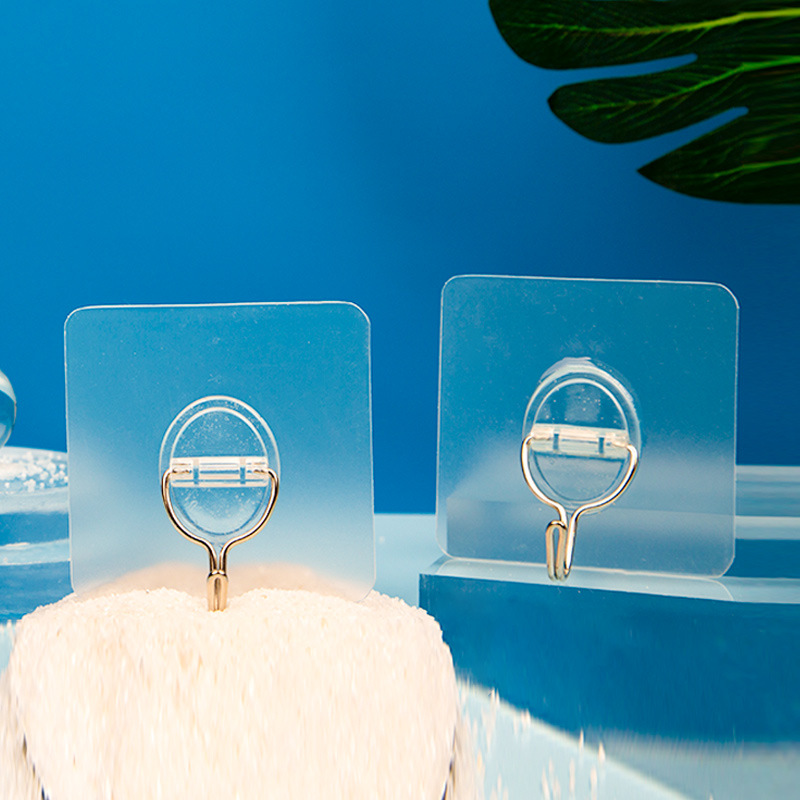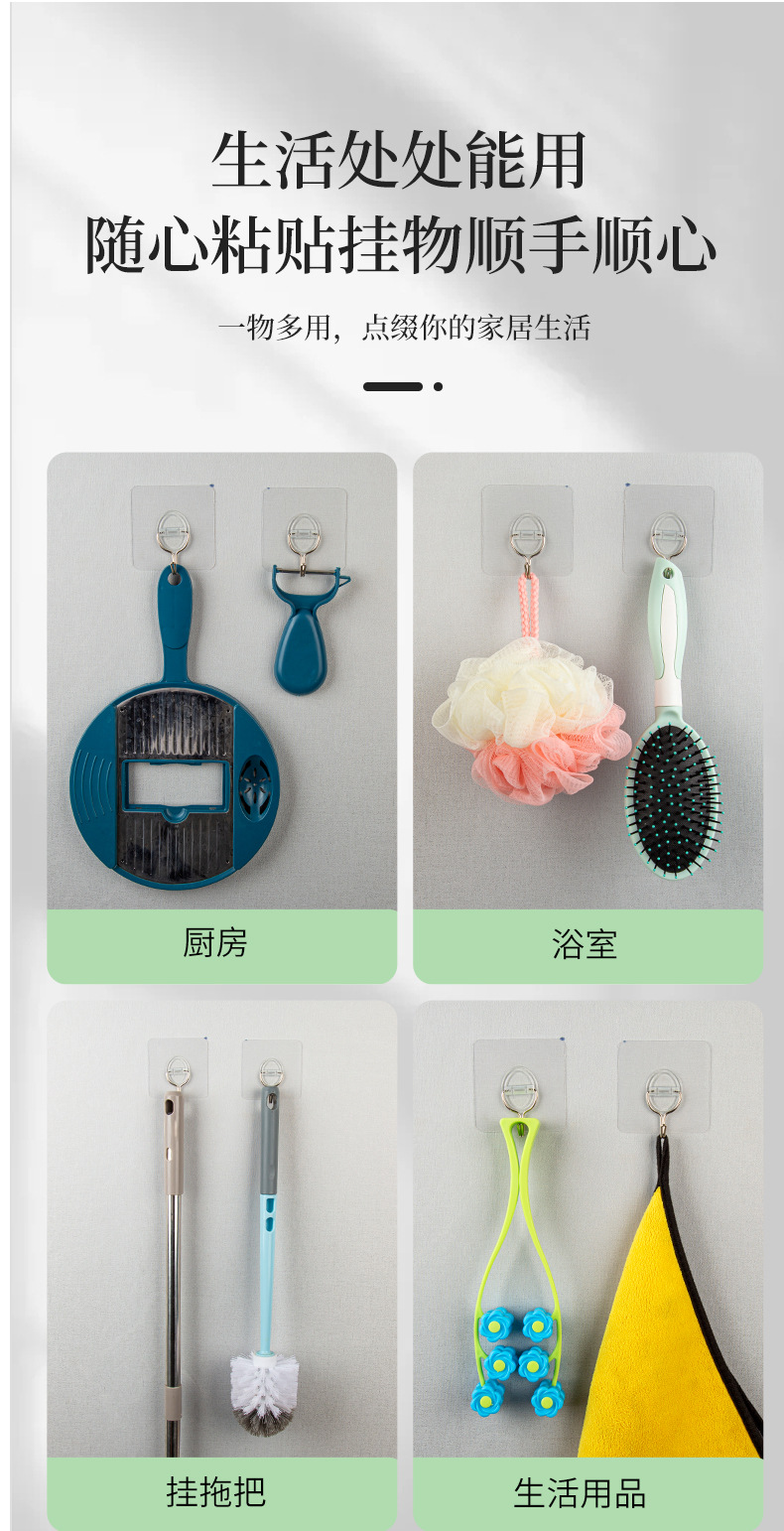 俏小丫新款简约三个装无痕挂钩透明浴室小粘钩免打孔挂钩批发